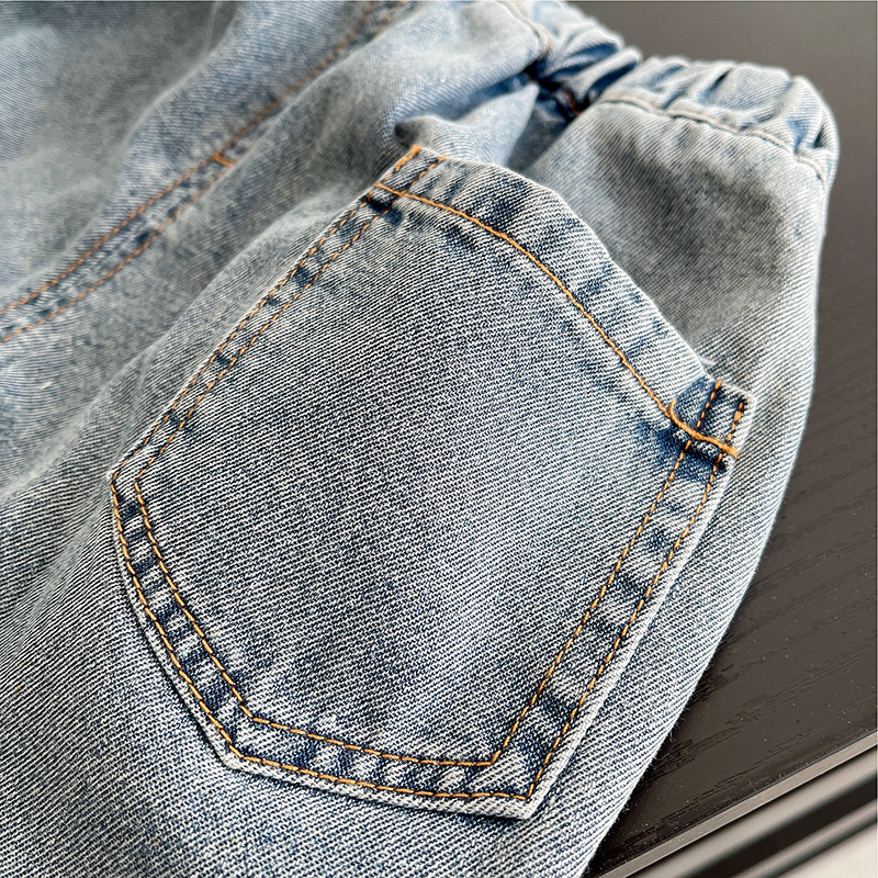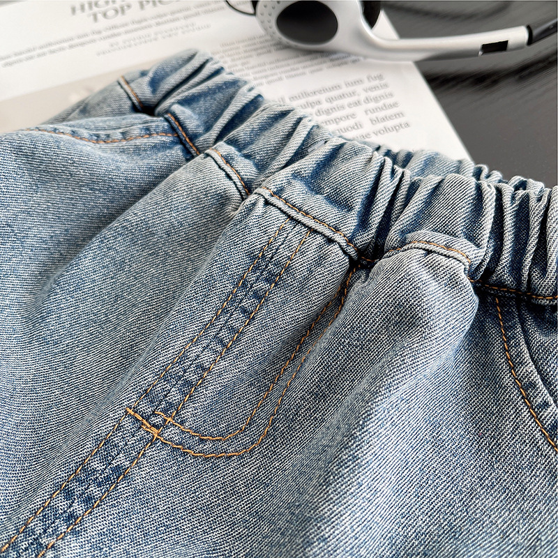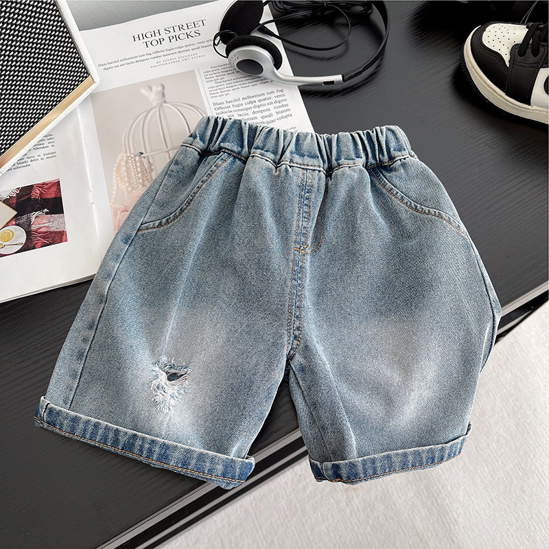소년 여름 데님 반바지 2025 여름 느슨한 버전 젊은 소년을위한 얇은 유행 반팔 티셔츠 투피스 세트스토어 가기