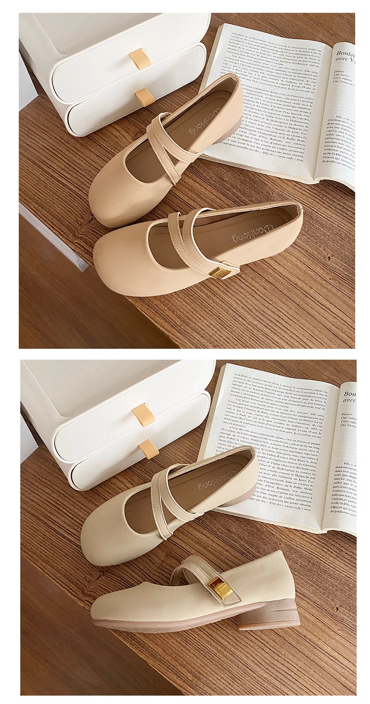 정품 가죽 청키 힐 다목적 요정 원피스 싱글 레이어 신발 여성 신발 2025 봄과 여름 새로운 프랑스 메리 제인 작은 가죽 신발스토어 가기