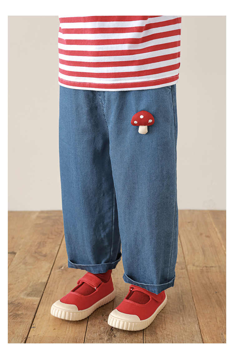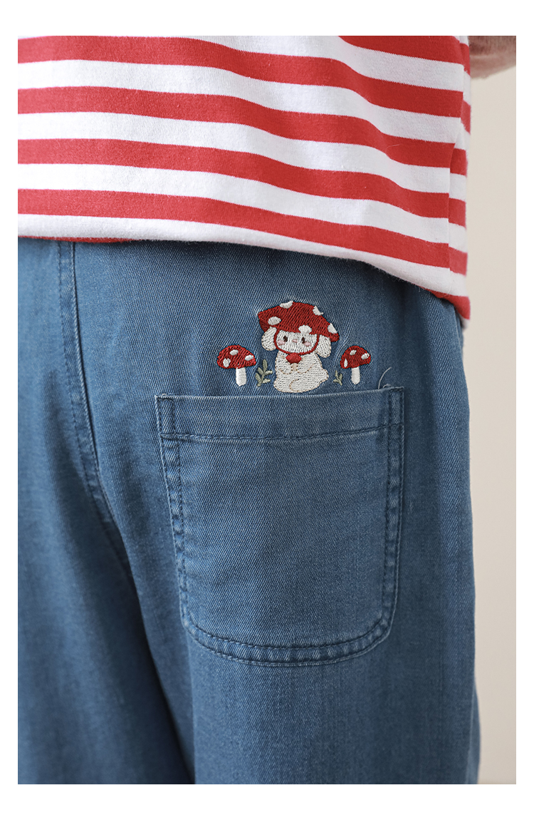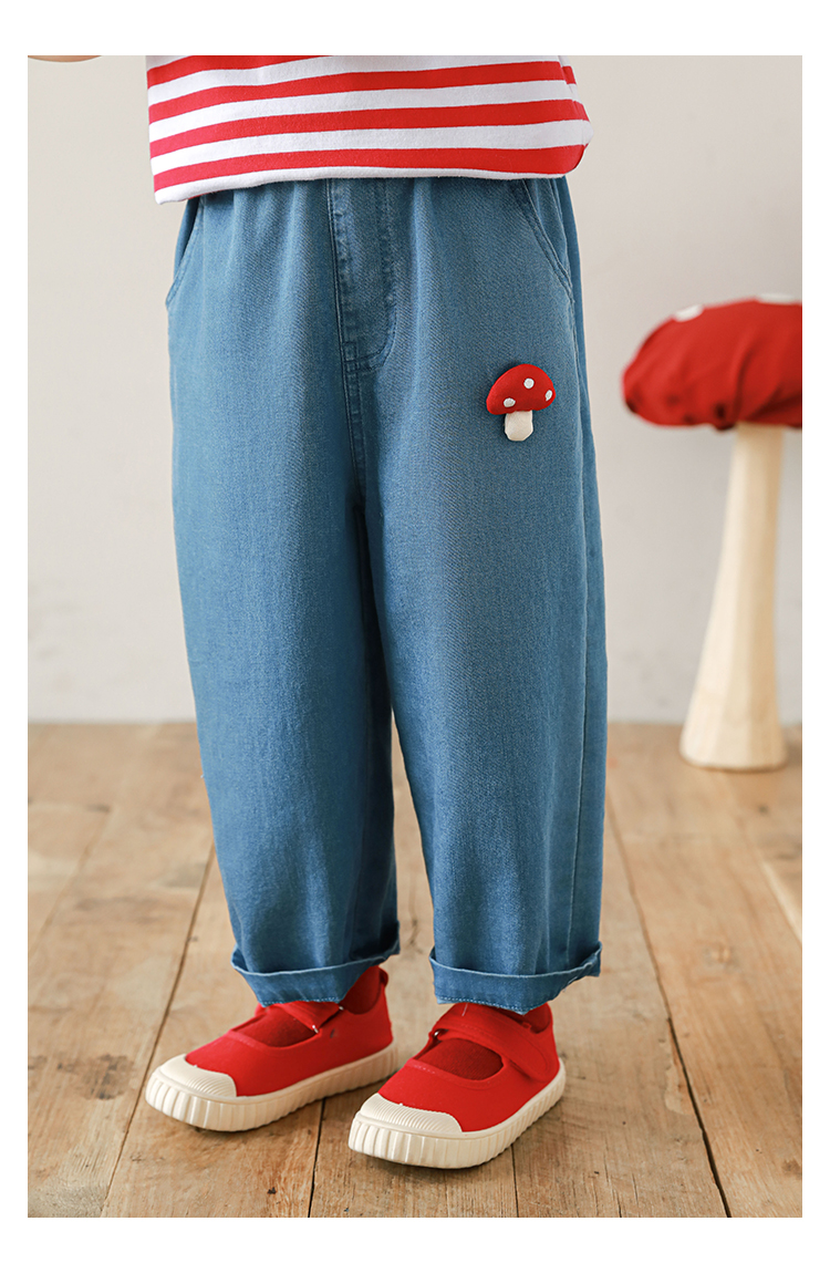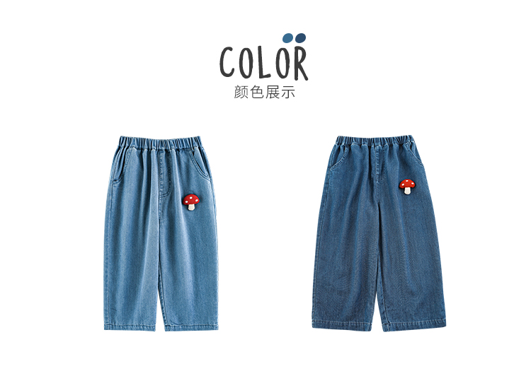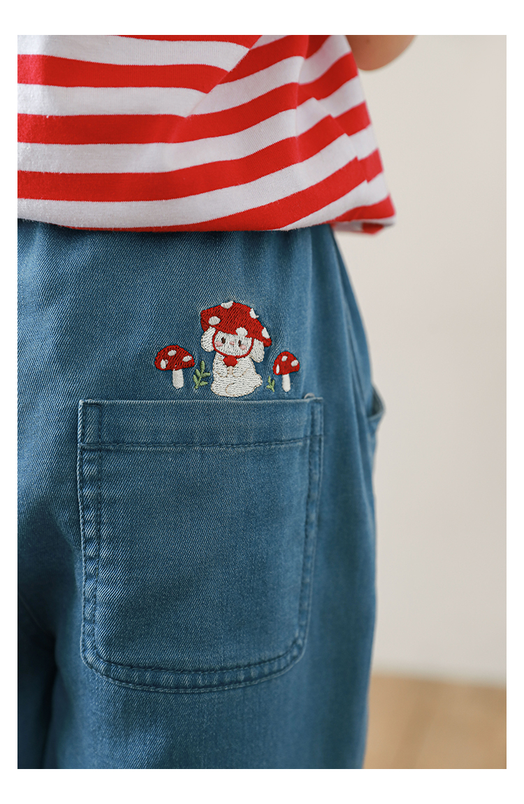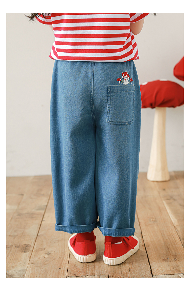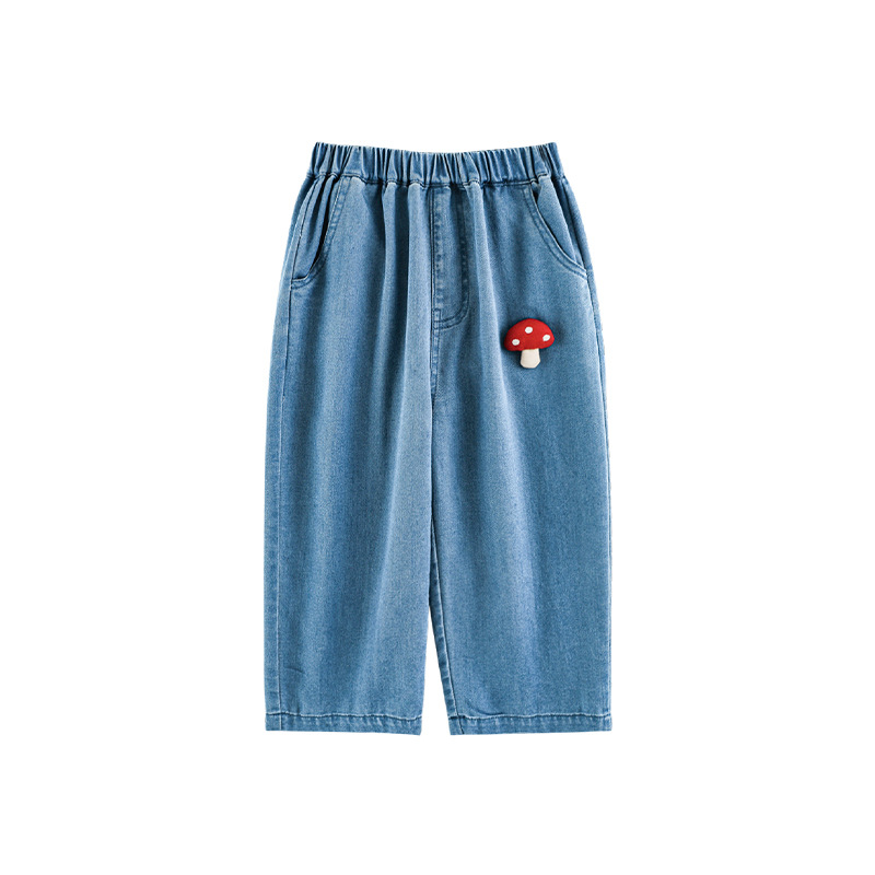 Wulibuyi 소녀의 귀여운 버섯 인형 자수 청바지 여름 어린이 스타일 다목적 루즈 캐주얼 바지