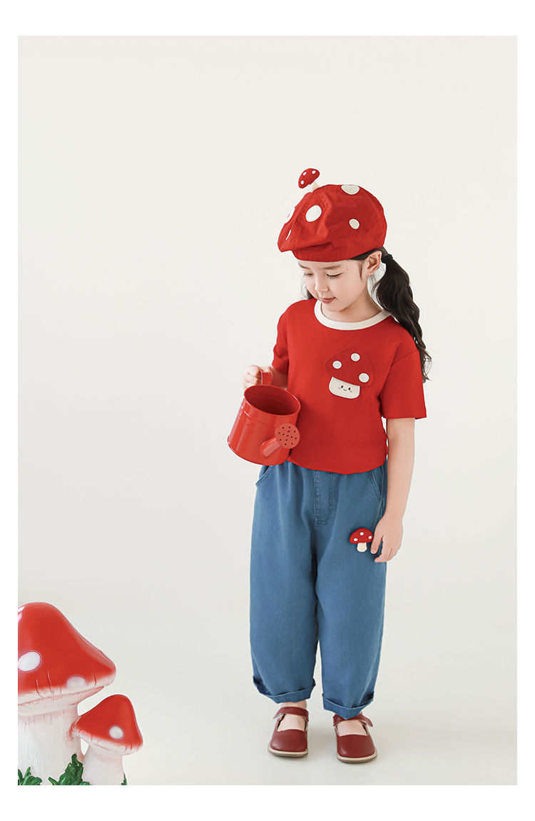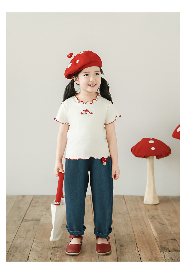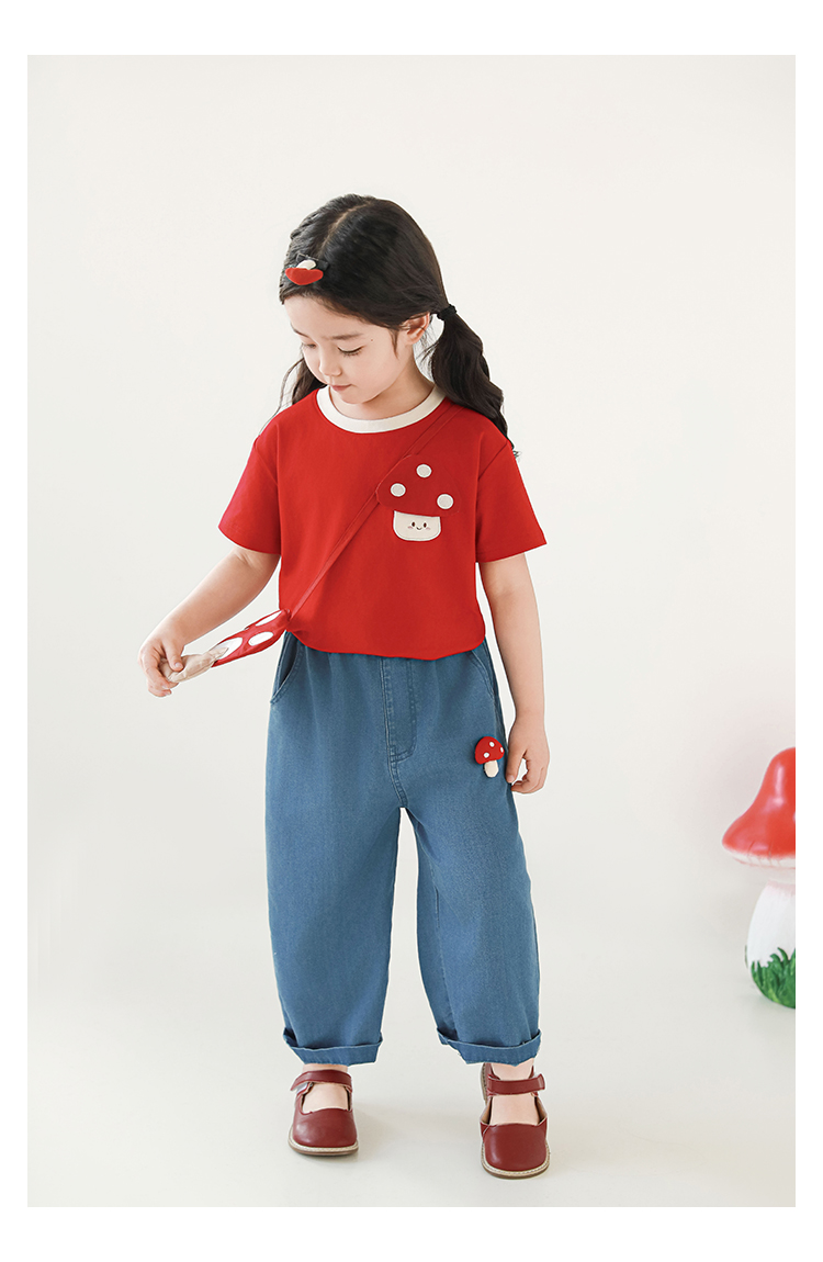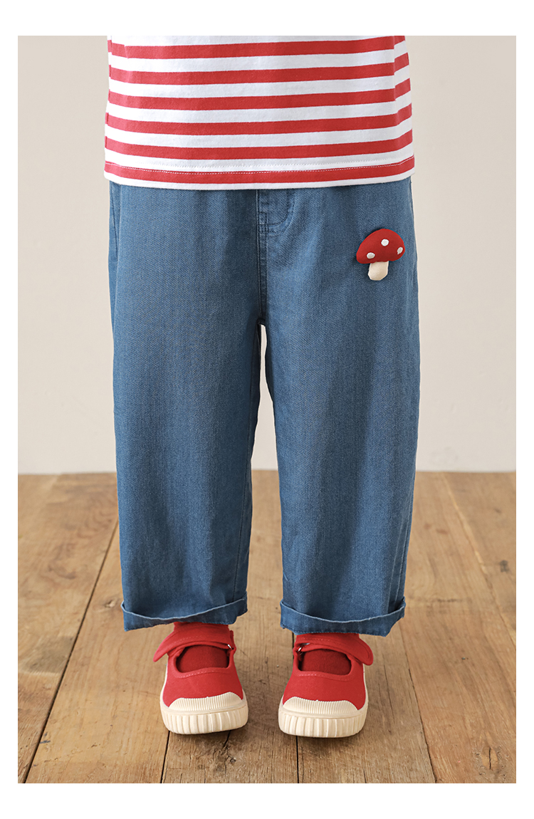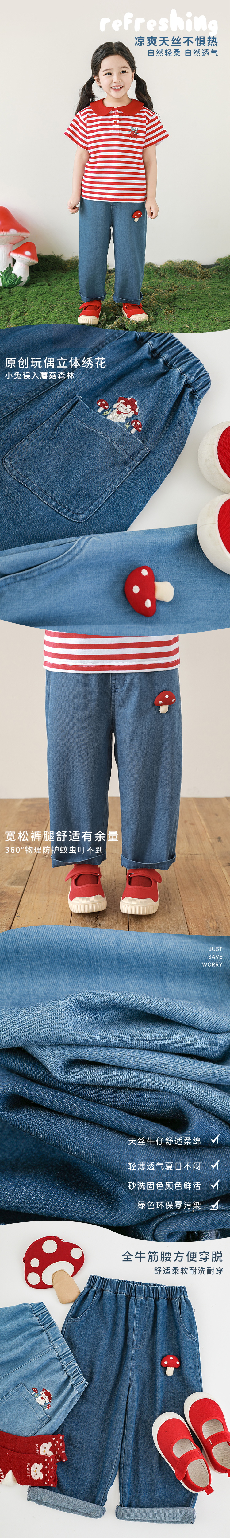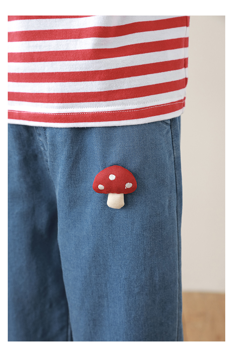 Wulibuyi 소녀의 귀여운 버섯 인형 자수 청바지 여름 어린이 스타일 다목적 루즈 캐주얼 바지