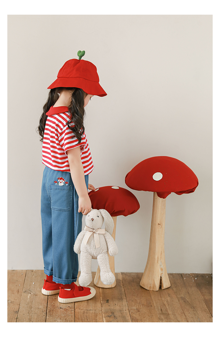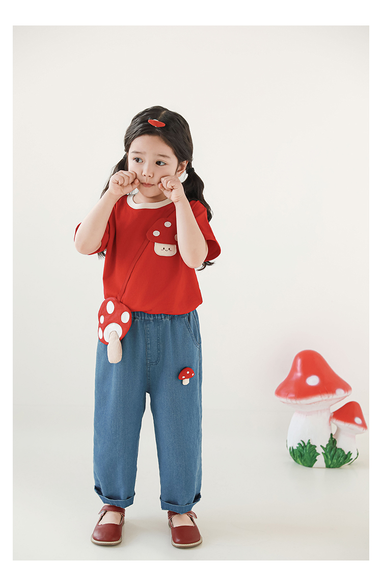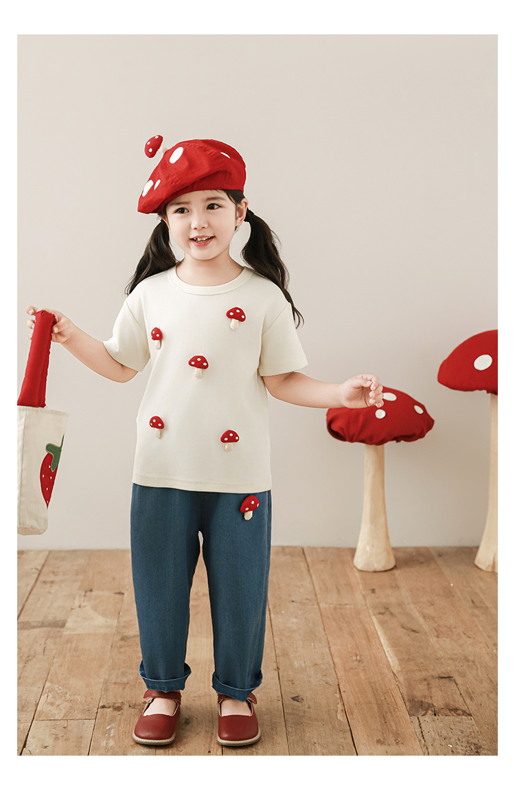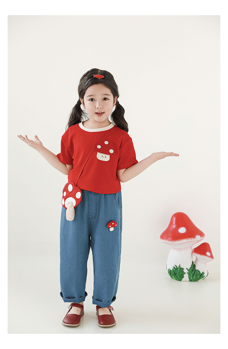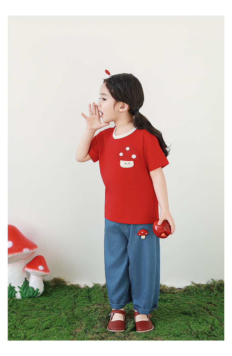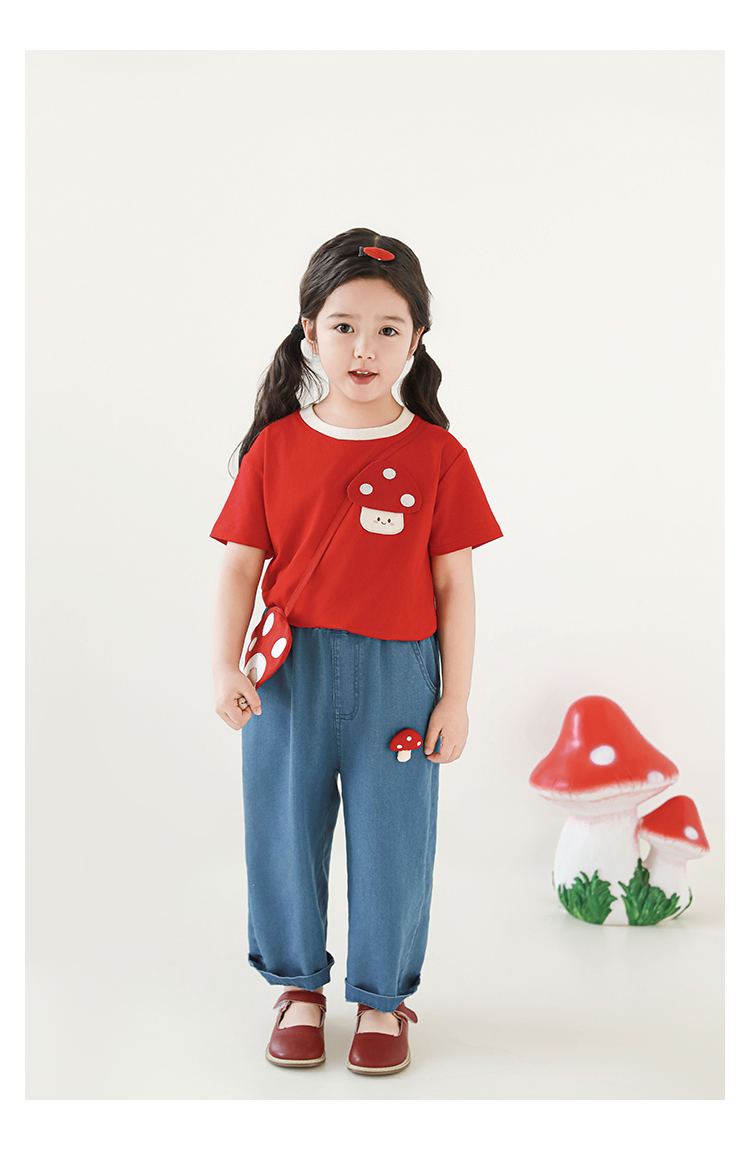 Wulibuyi 소녀의 귀여운 버섯 인형 자수 청바지 여름 어린이 스타일 다목적 루즈 캐주얼 바지