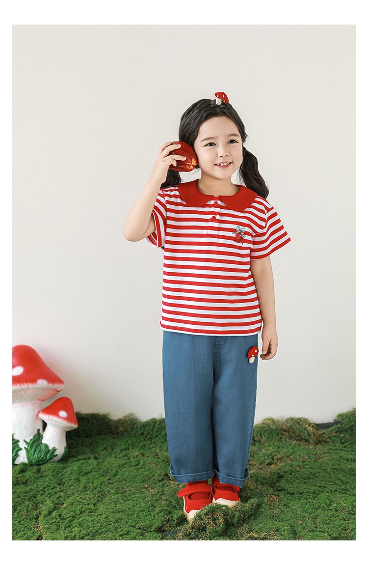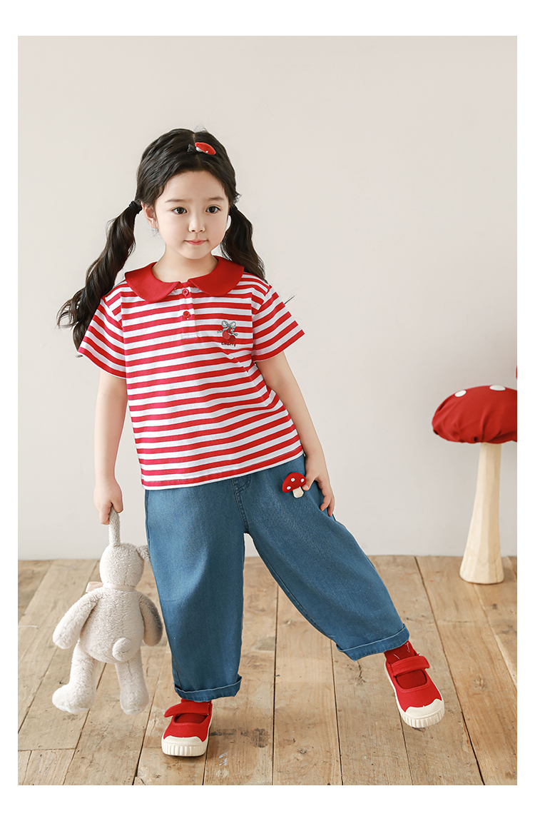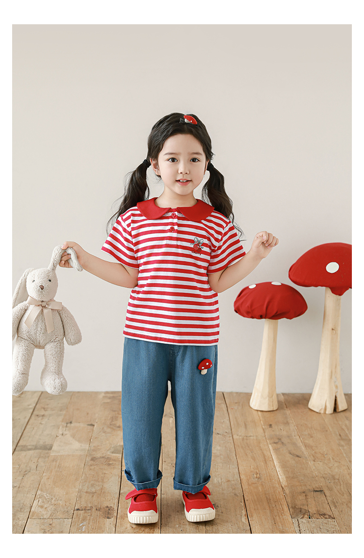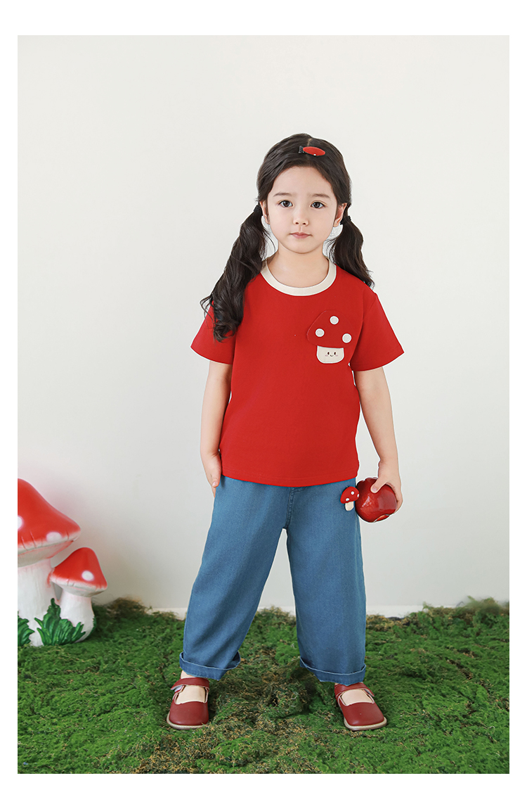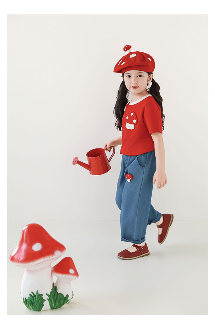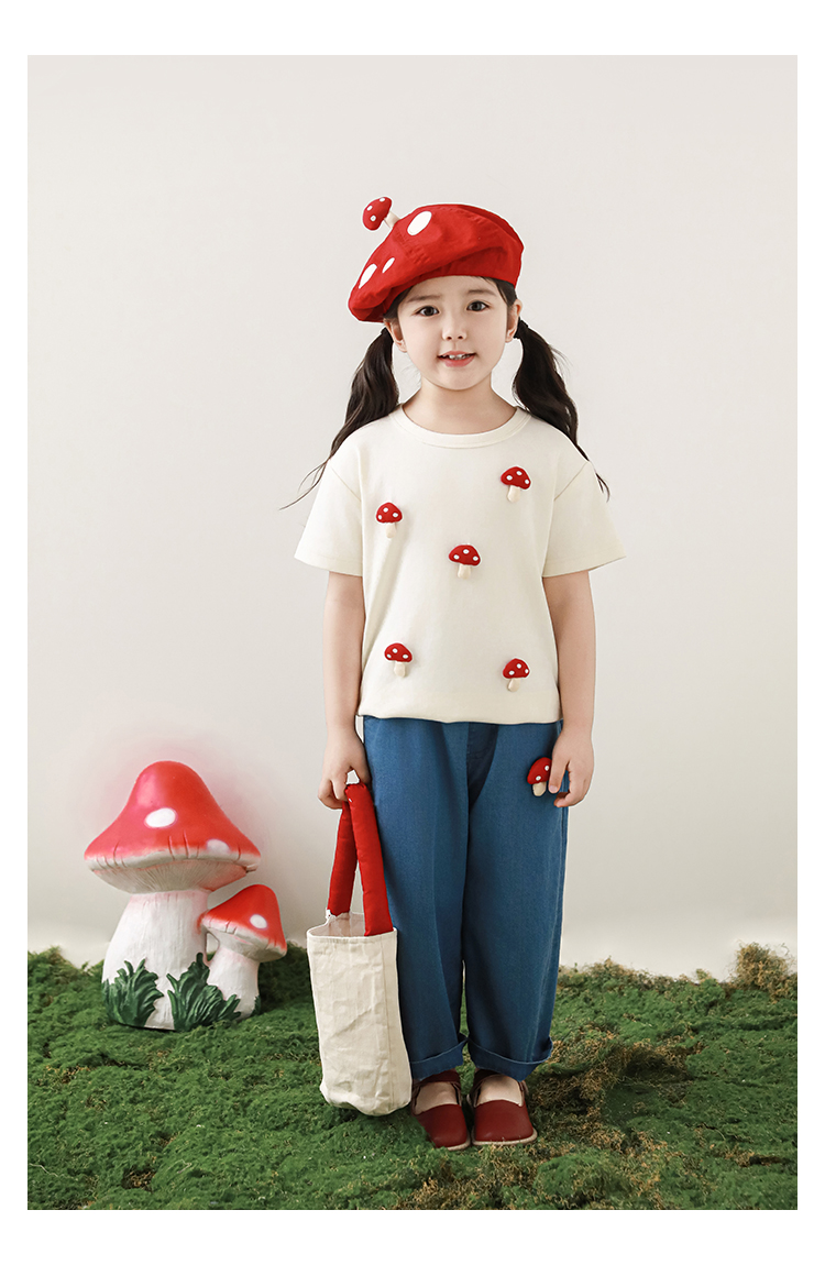 Wulibuyi 소녀의 귀여운 버섯 인형 자수 청바지 여름 어린이 스타일 다목적 루즈 캐주얼 바지