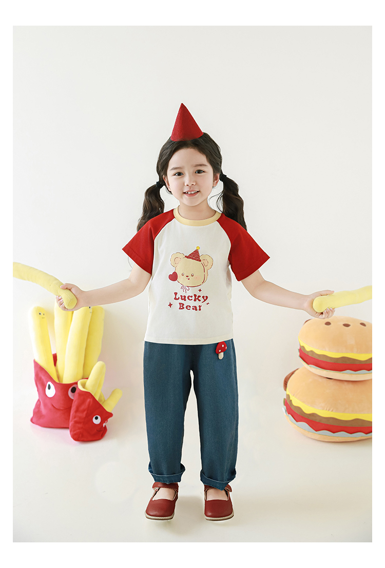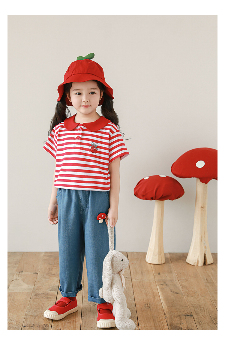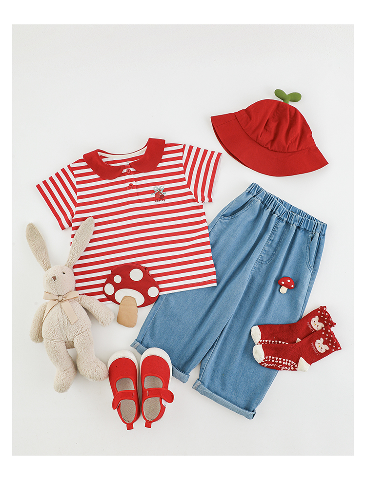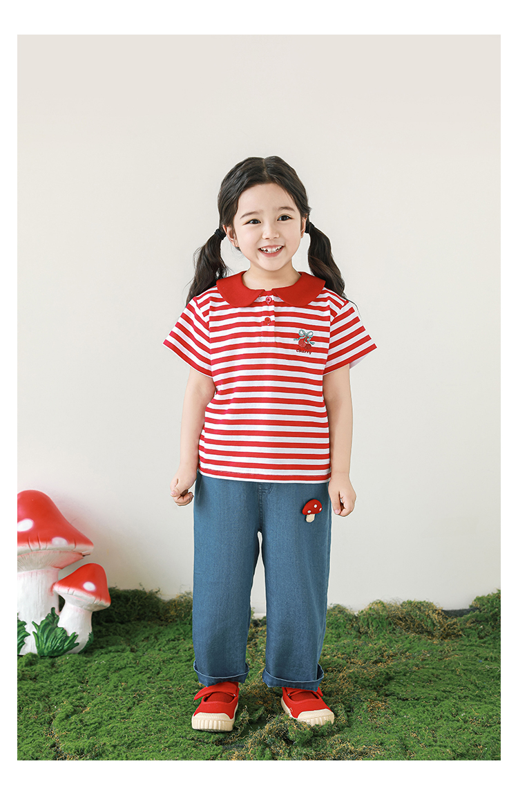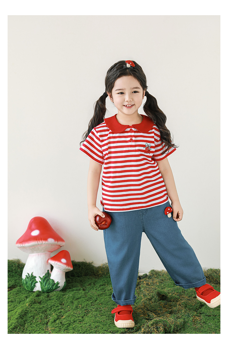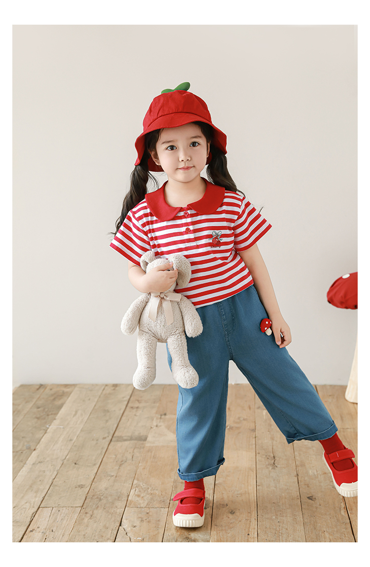 Wulibuyi 소녀의 귀여운 버섯 인형 자수 청바지 여름 어린이 스타일 다목적 루즈 캐주얼 바지