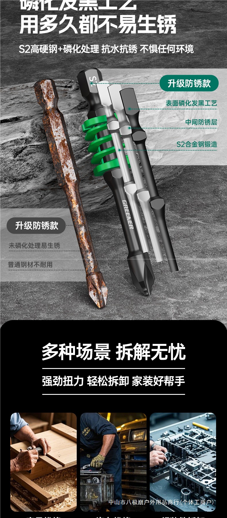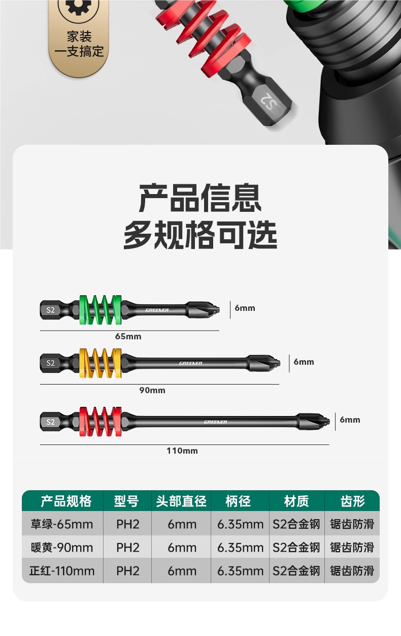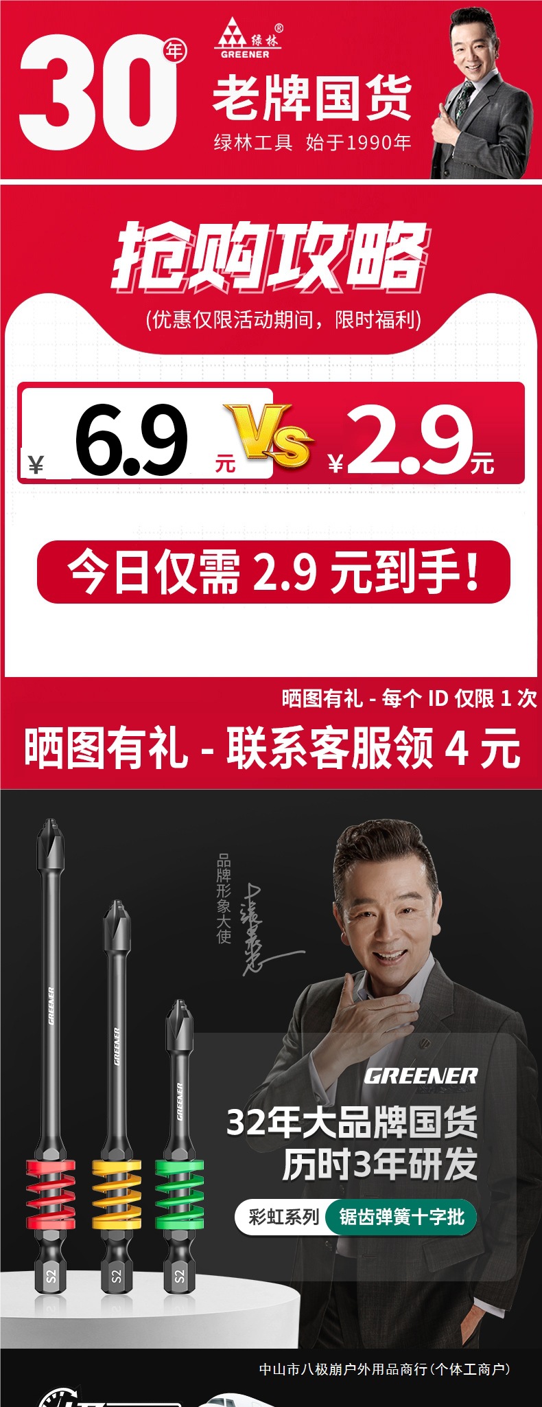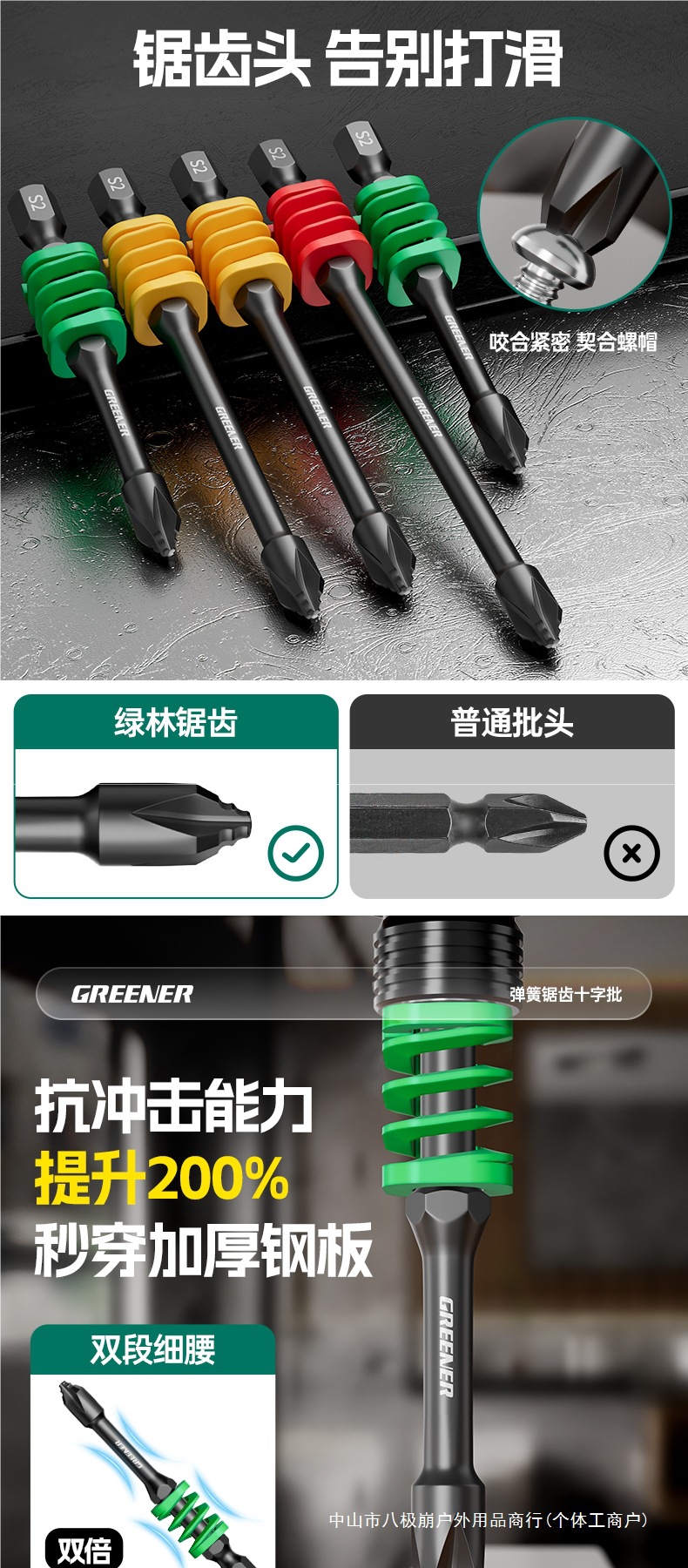 그린 포레스트 크로스 비트 강력한 자기 무지개 스프링 초경질 충격 미끄럼 방지 전기 드라이버 핸드 드릴 드라이버 8극스토어 가기