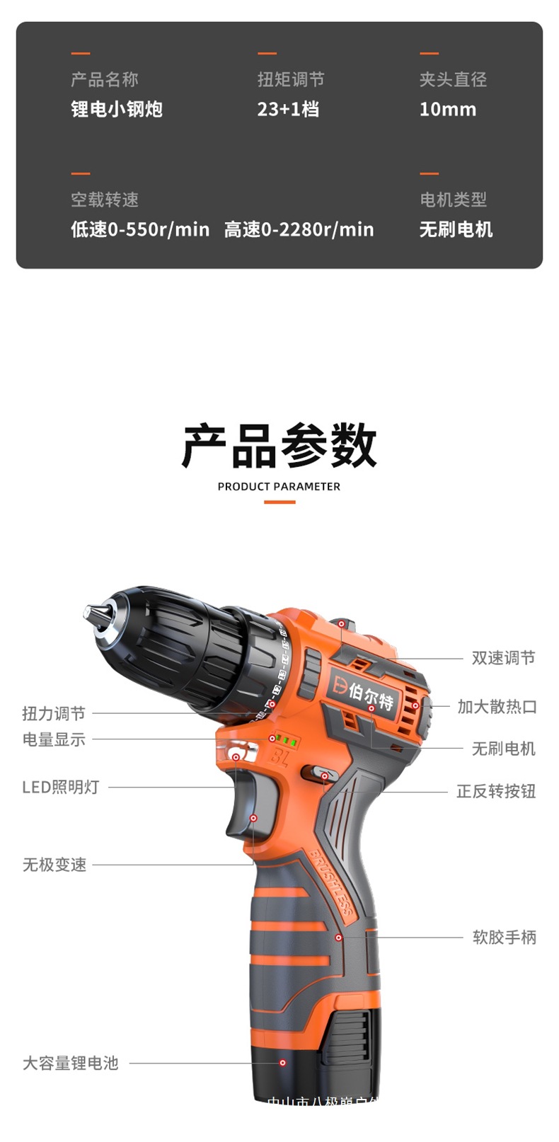 Bert 브러시리스 충전식 드릴 소형 강철 총 리튬 배터리 대형 토크 임팩트 핸드 드릴 드라이버 전기 나사 8극