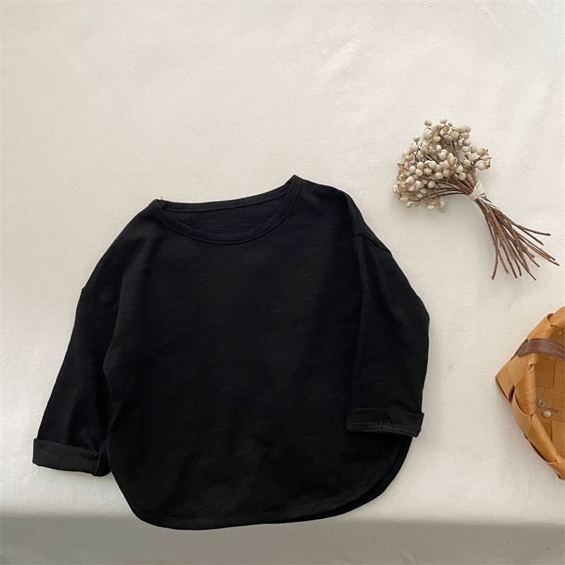 어린이 봄, 가을 새로운 메일라드 컬러 대나무 면 셔츠 소년과 소녀를위한 느슨한 지구 색상 바닥 셔츠 베이비 트렌드 1