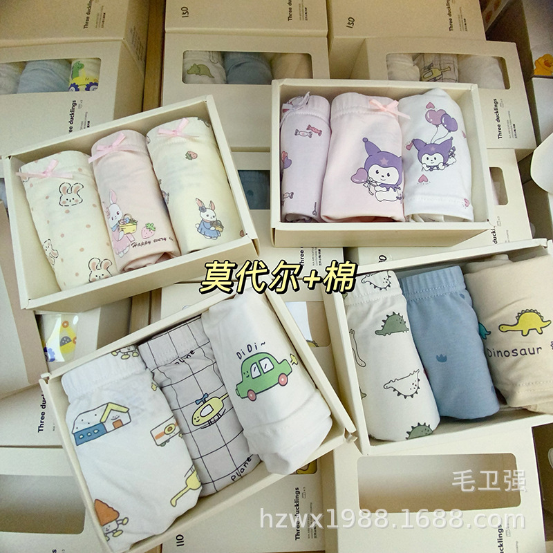 오리 25 년 새 컬러 어린이 속옷 Lanjing Modal 코튼 Boyhood 반바지 소년 소녀를위한 얇은 복서 바지스토어 가기