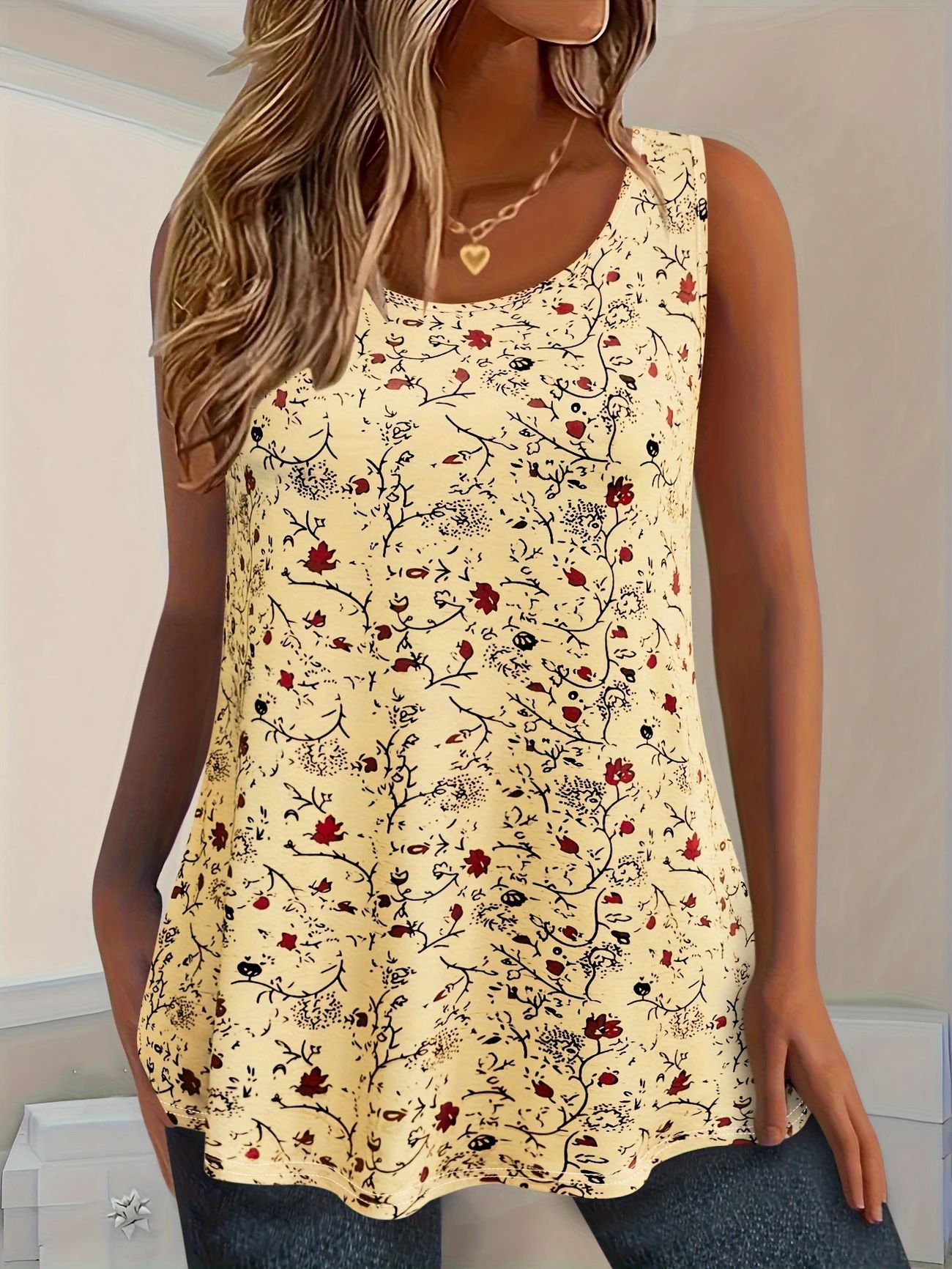 2025 년 봄과 여름 유럽과 미국의 국경 아마존 새로운 여성 둥근 목 프린트 민소매 조끼 티셔츠