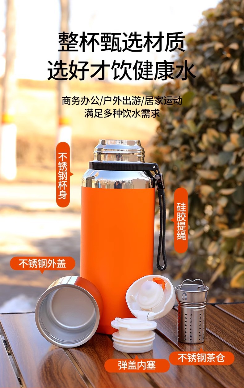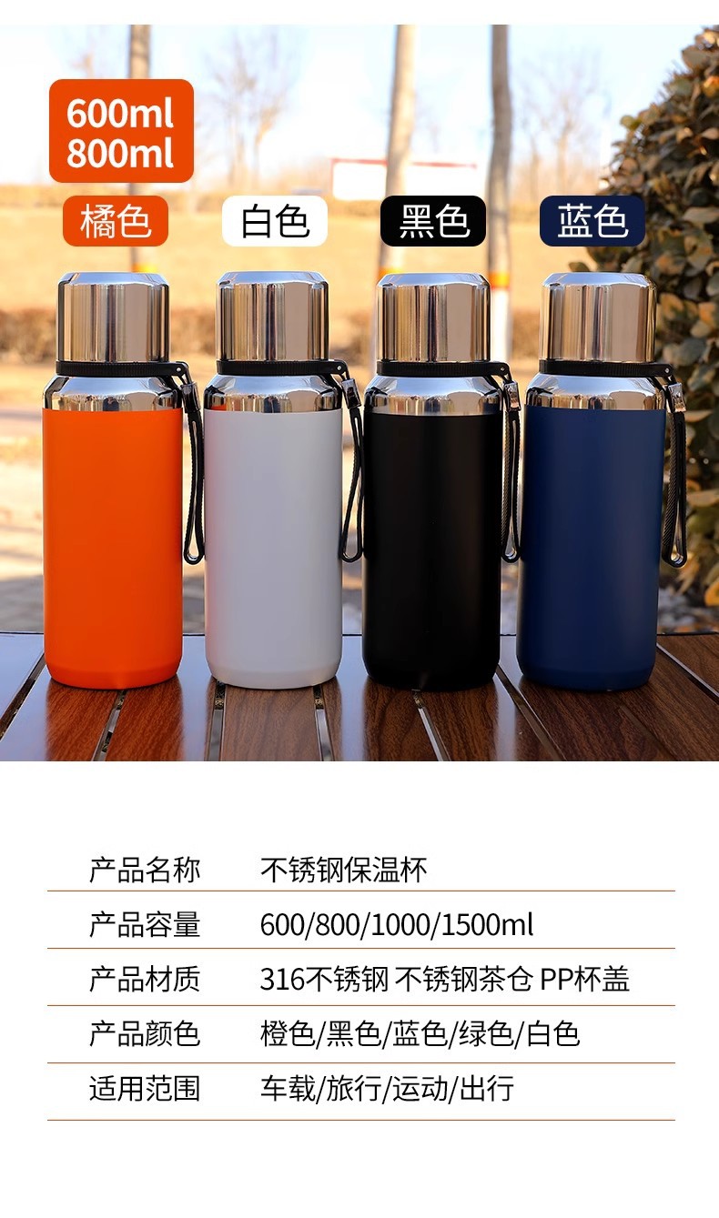 고급스러운 316 스테인레스 스틸 보온병 컵, 끈이 달린 야외 여행, 대용량 등산 물병, 맞춤형 물컵