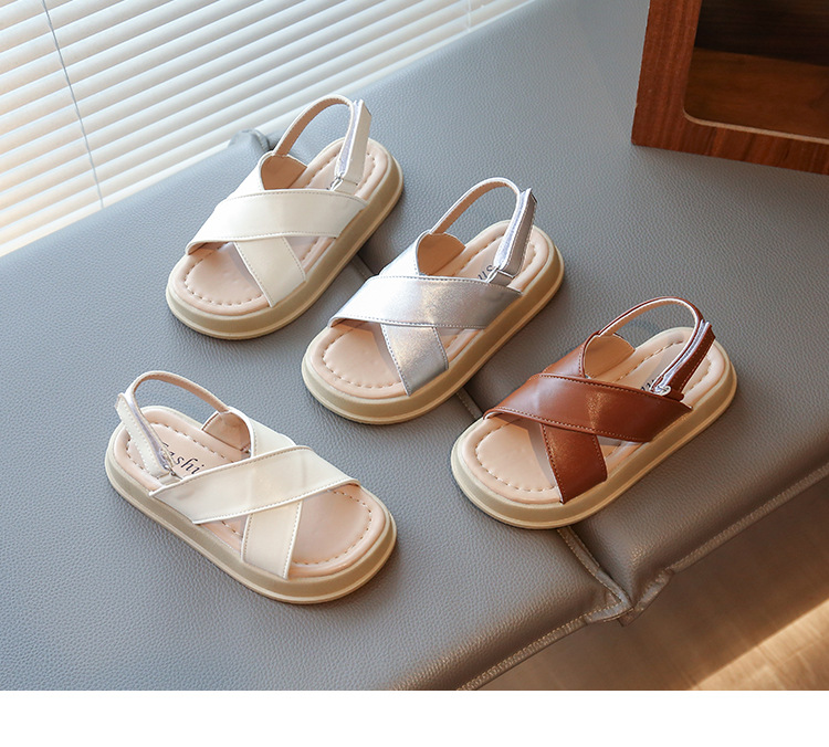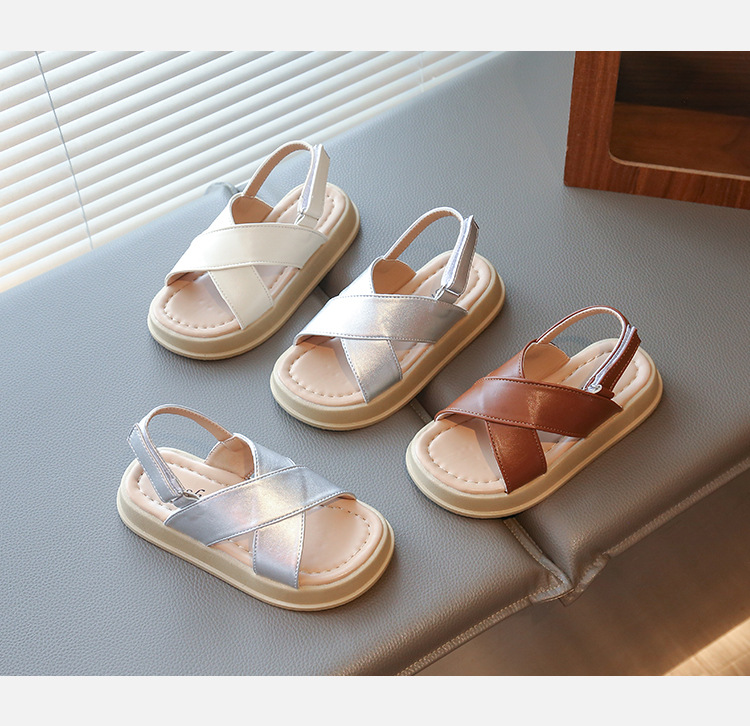 2025 여름 새로운 샌들 소녀 단색 아기 신발 소년 패션 비치 신발 캐주얼 크로스 샌들 도매