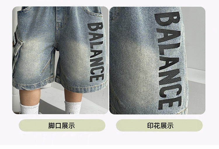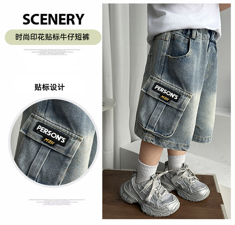 국경 간 아동 의류 유행 아기 소년 인쇄 라벨 데님 반바지 2025 여름 새로운 작은 소년 바지 여름스토어 가기