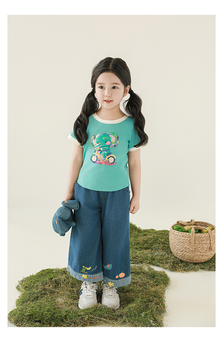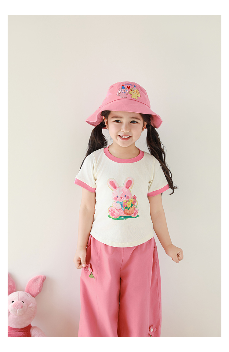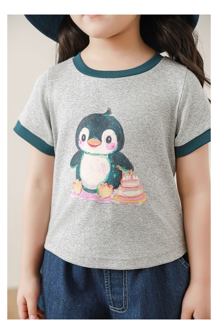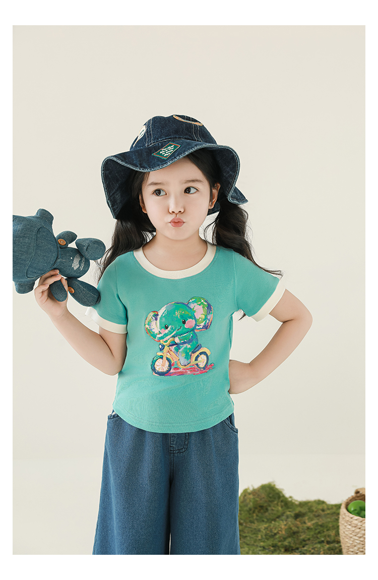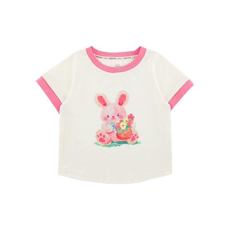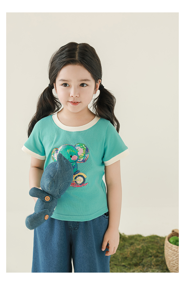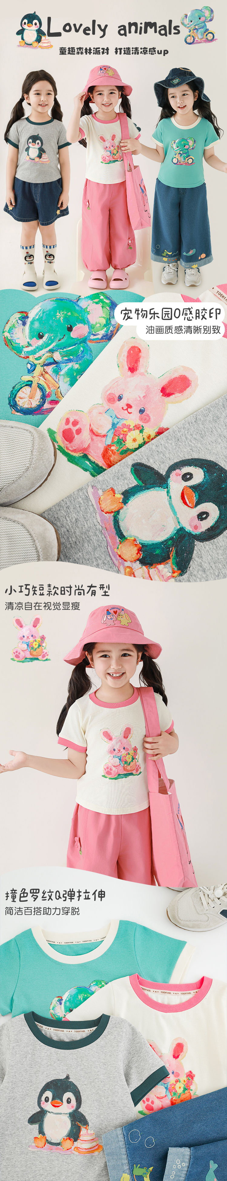 Wuri Boo Girl's Pet 프린트 반팔 티셔츠 여름 어린이 쿨 콘트라스트 리브 올 매치 쇼트 티셔츠