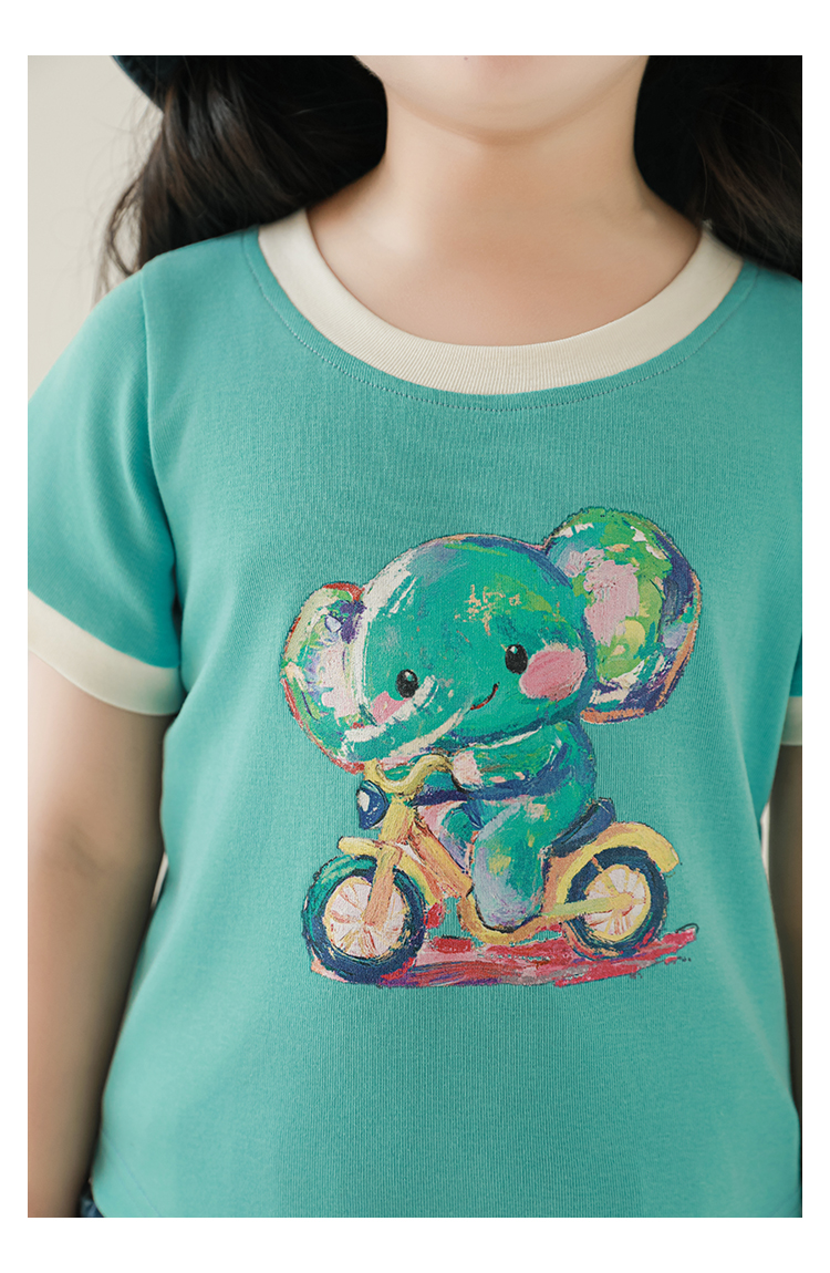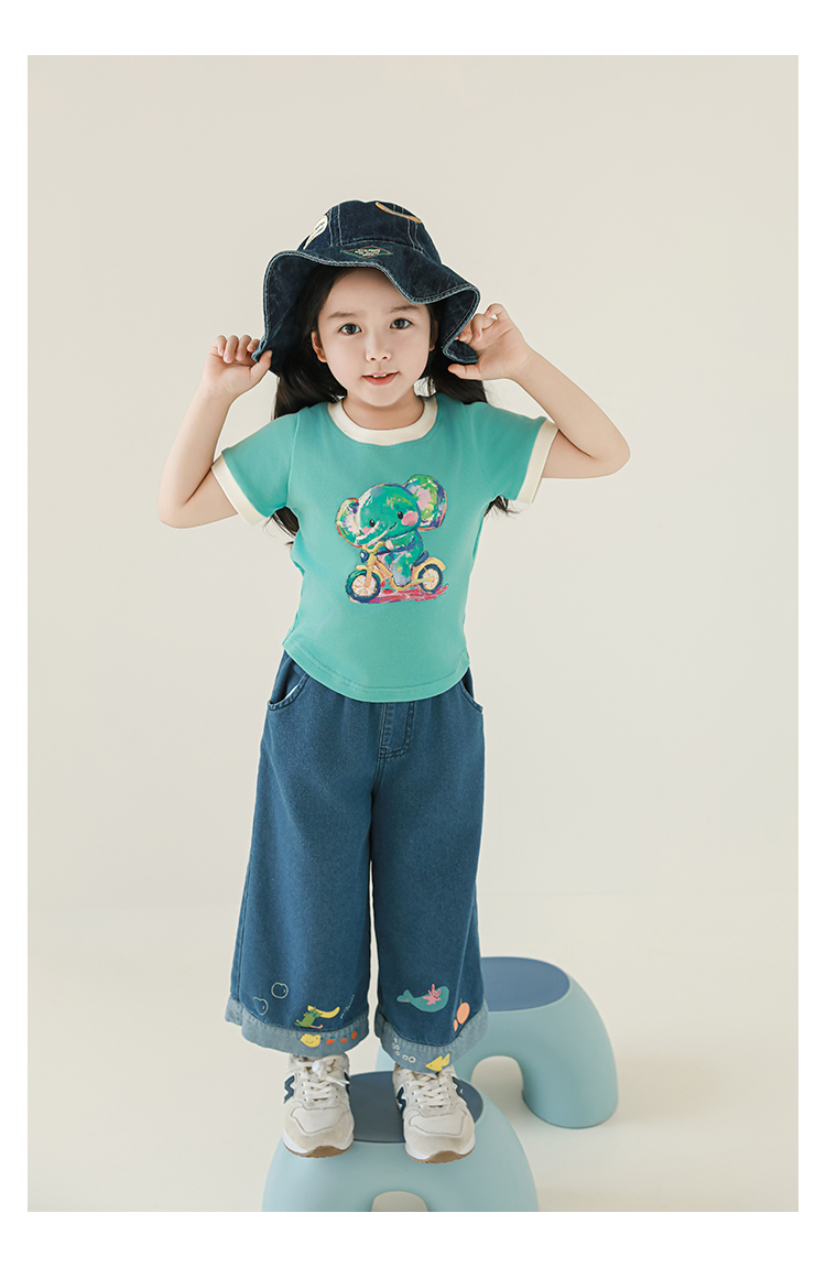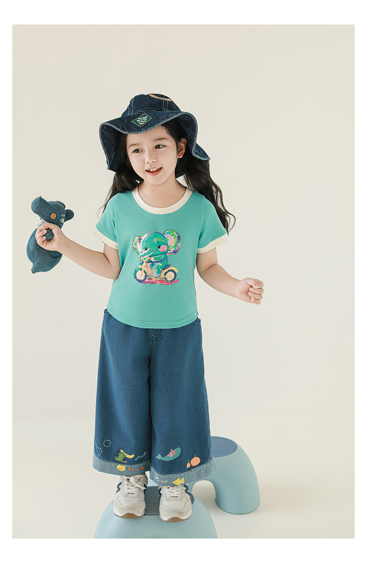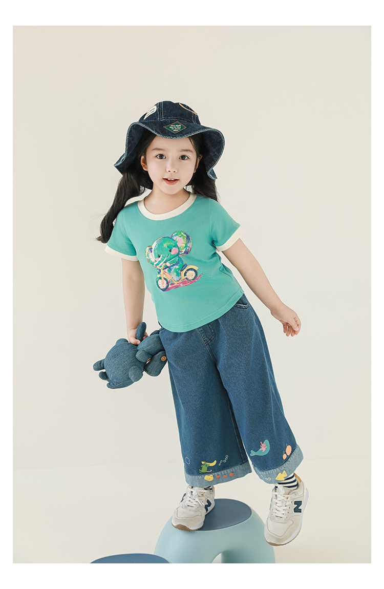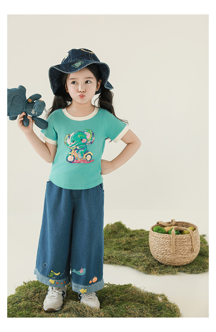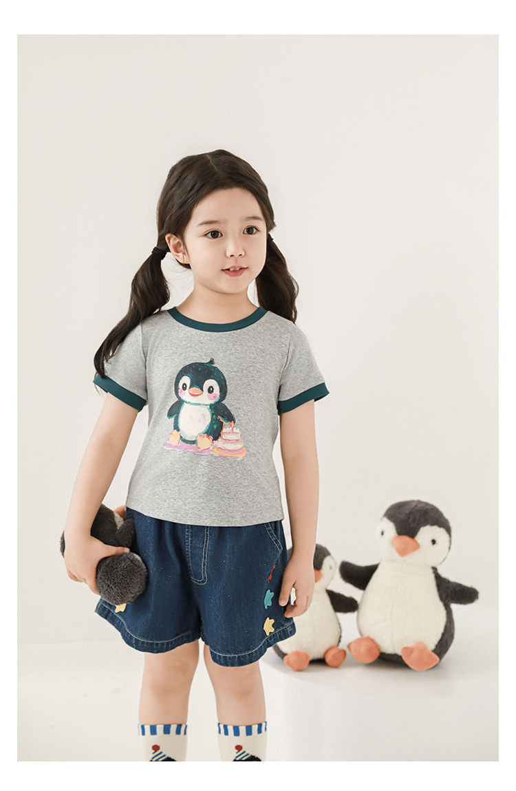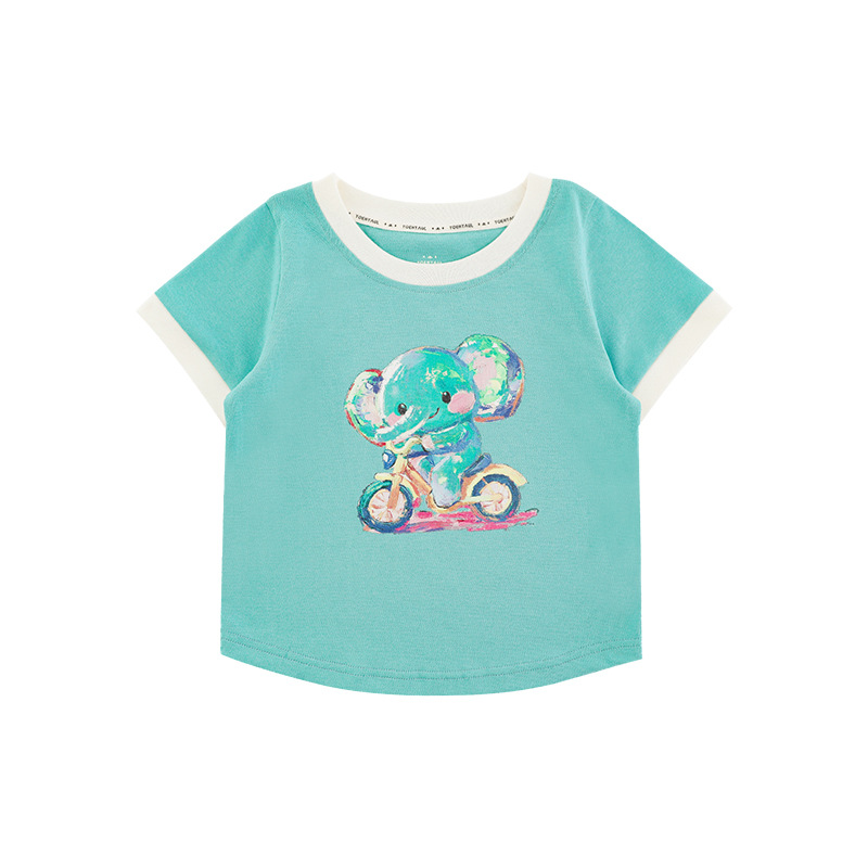 Wuri Boo Girl's Pet 프린트 반팔 티셔츠 여름 어린이 쿨 콘트라스트 리브 올 매치 쇼트 티셔츠