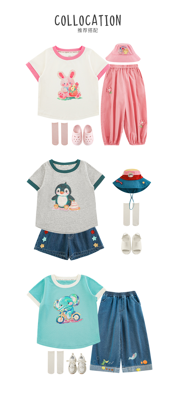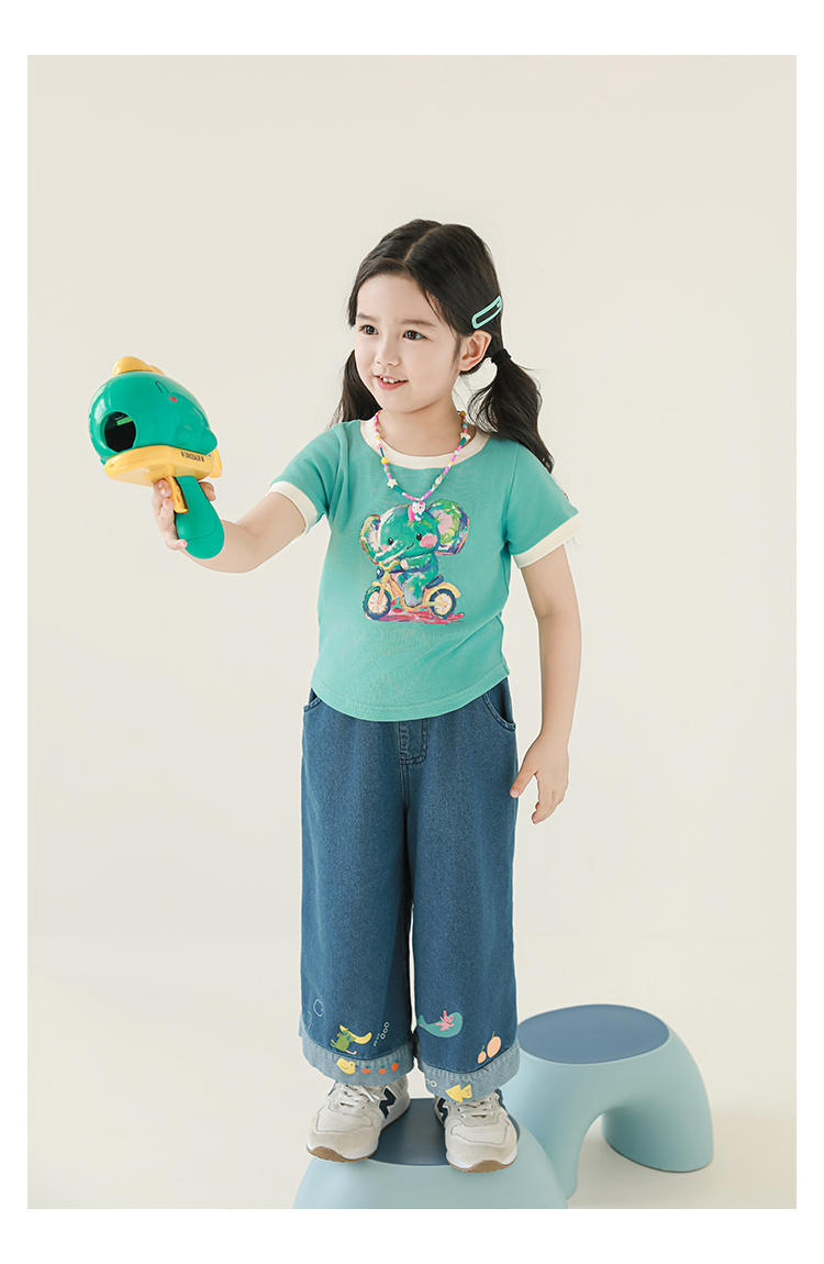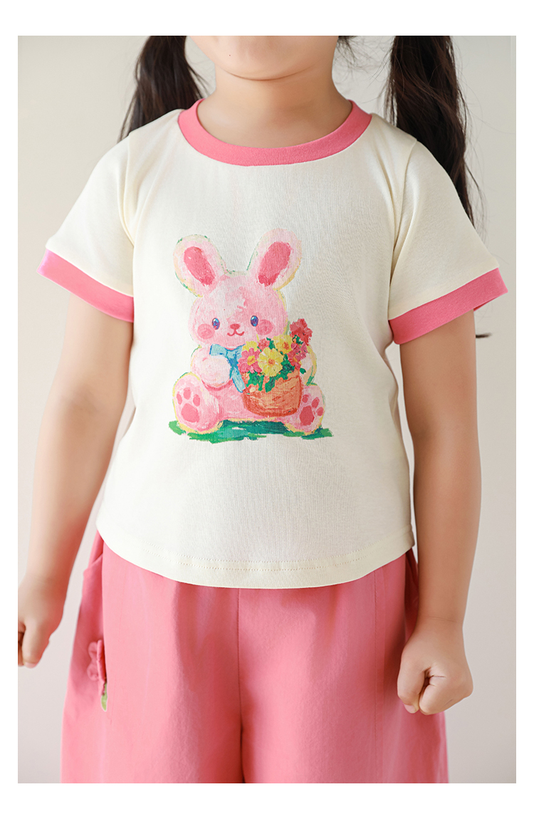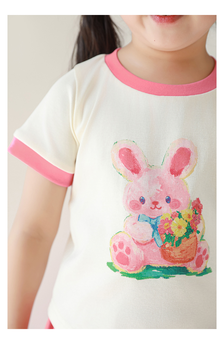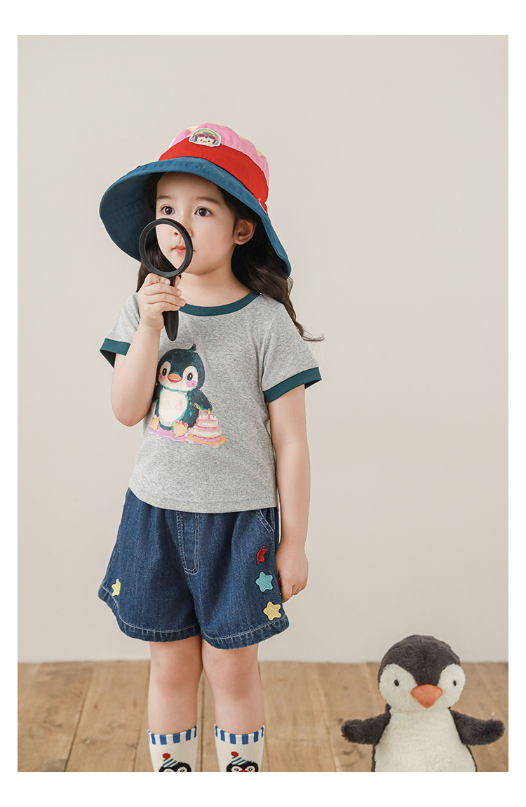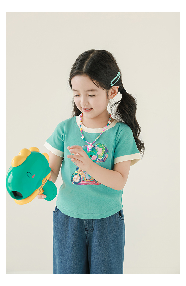Wuri Boo Girl's Pet 프린트 반팔 티셔츠 여름 어린이 쿨 콘트라스트 리브 올 매치 쇼트 티셔츠