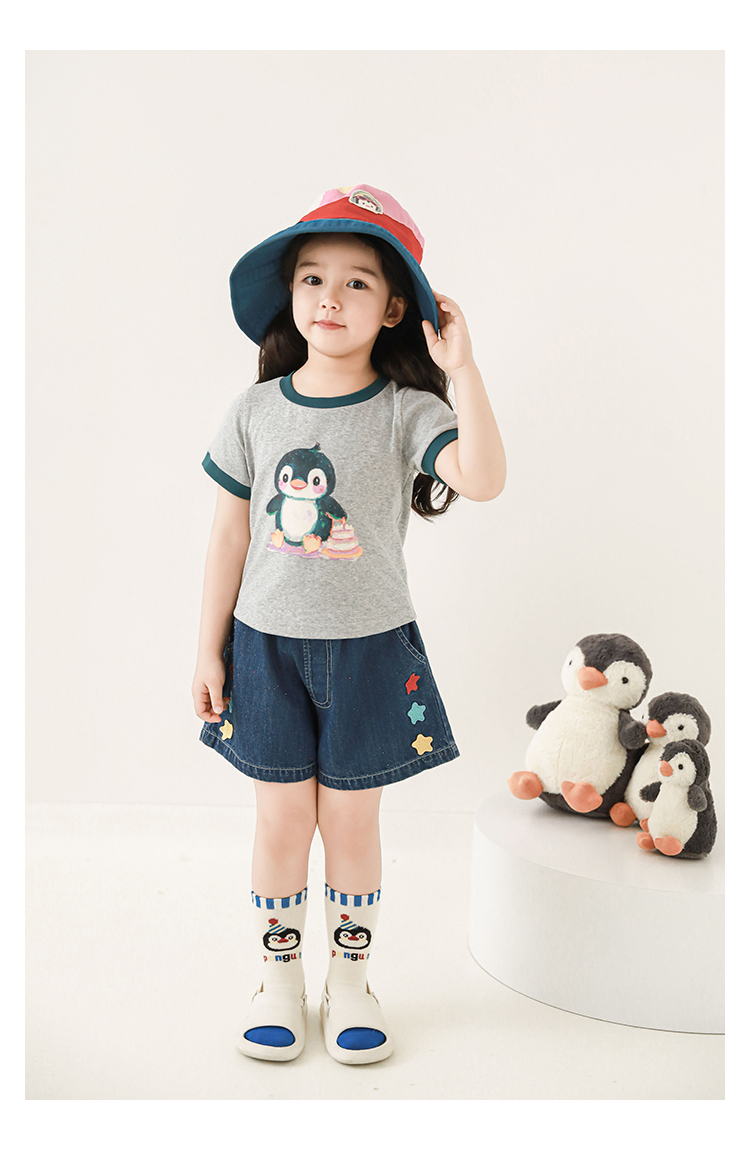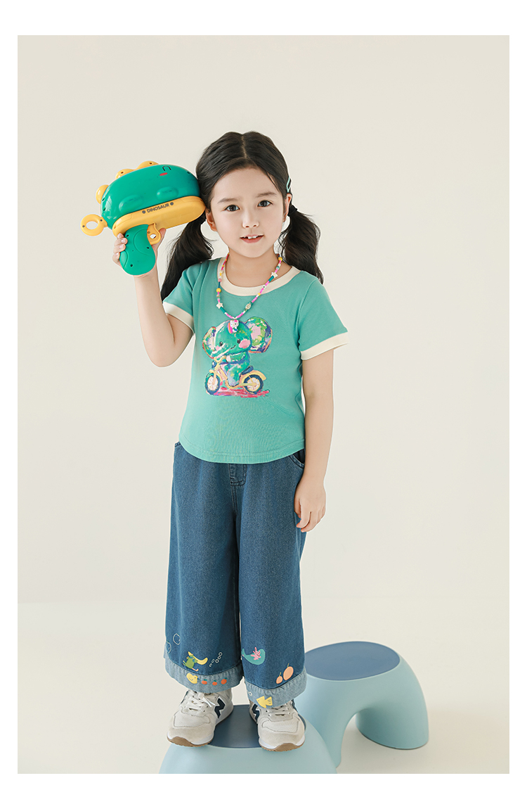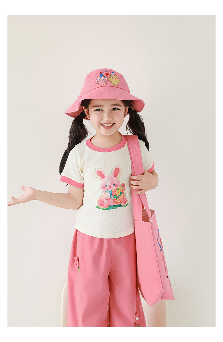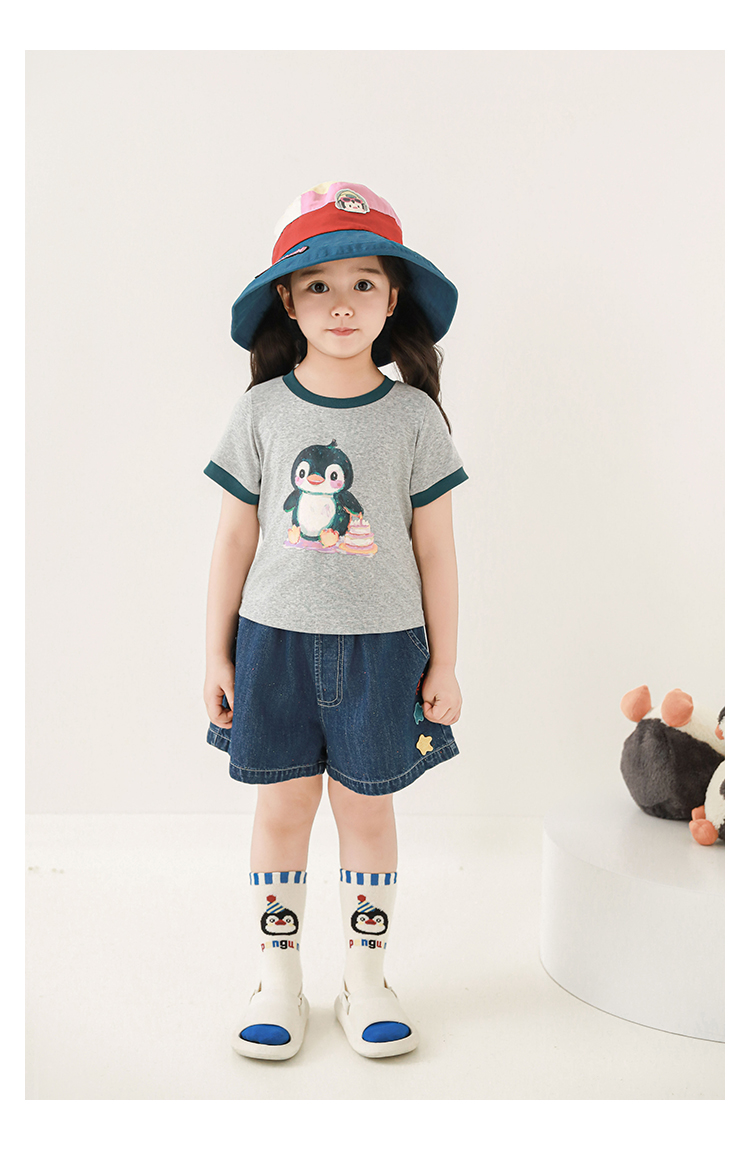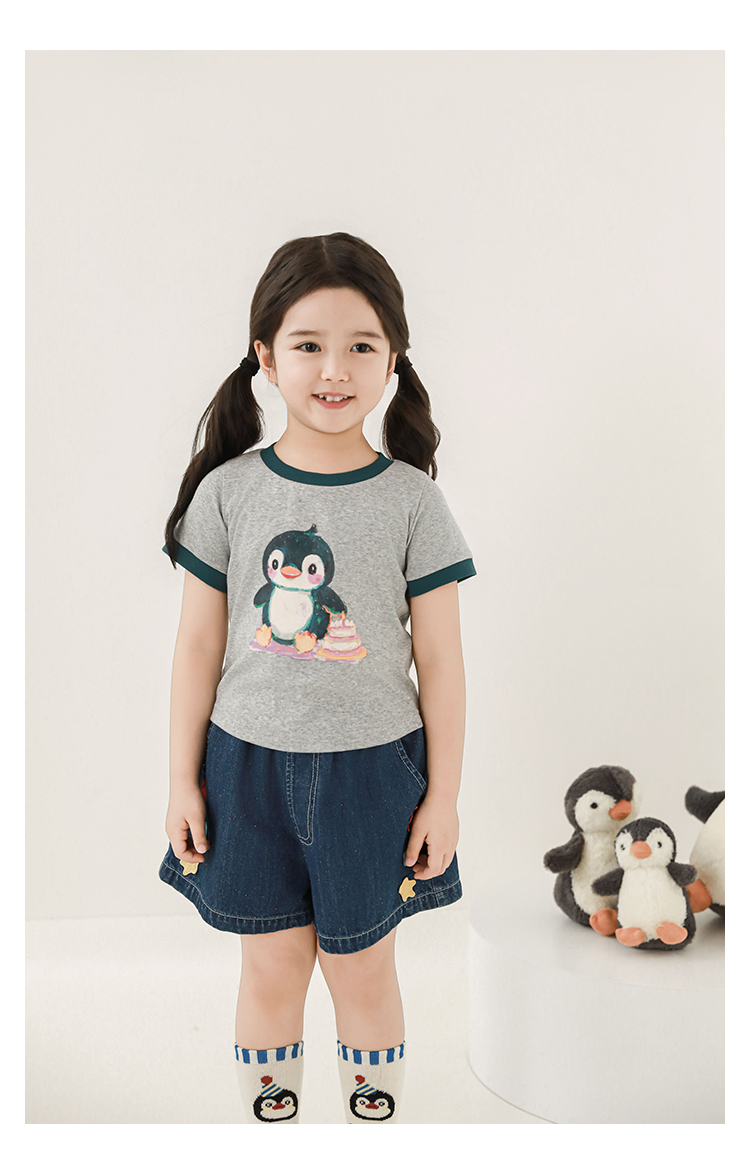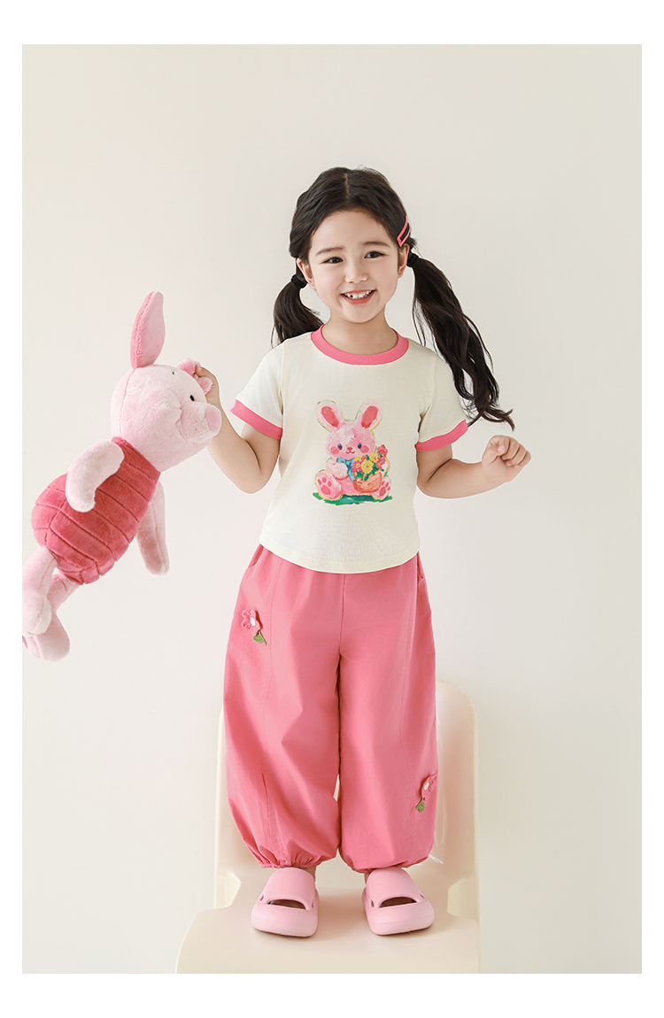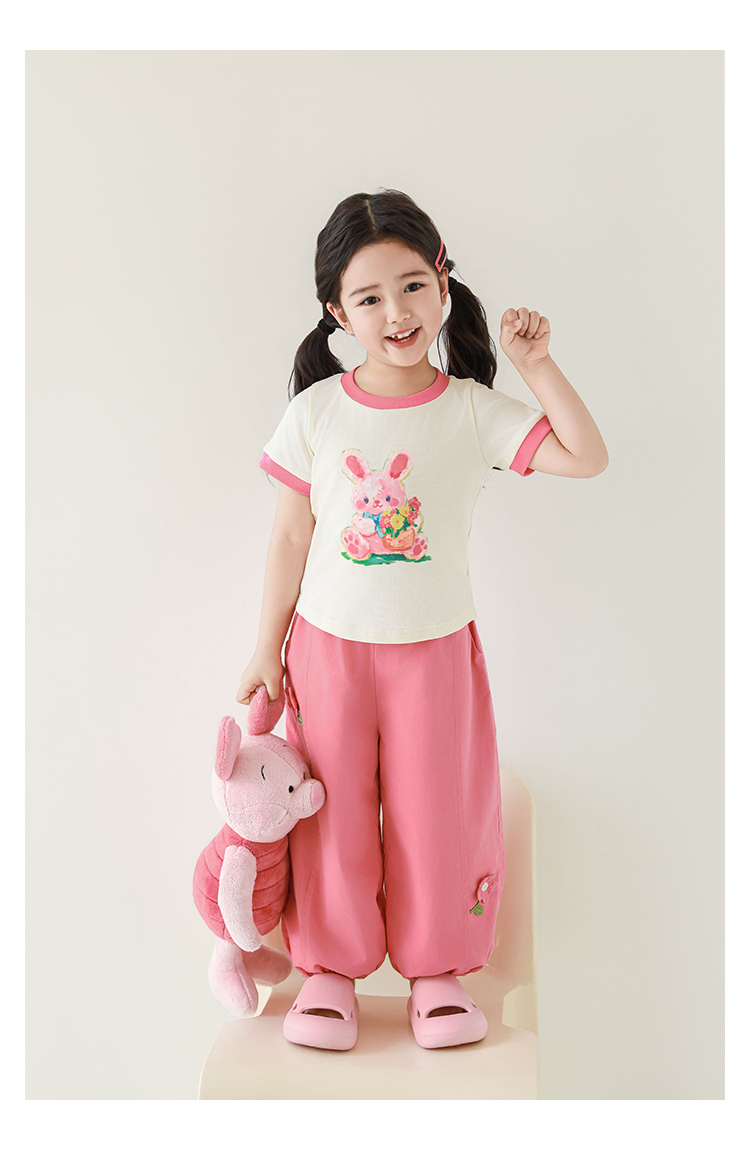 Wuri Boo Girl's Pet 프린트 반팔 티셔츠 여름 어린이 쿨 콘트라스트 리브 올 매치 쇼트 티셔츠