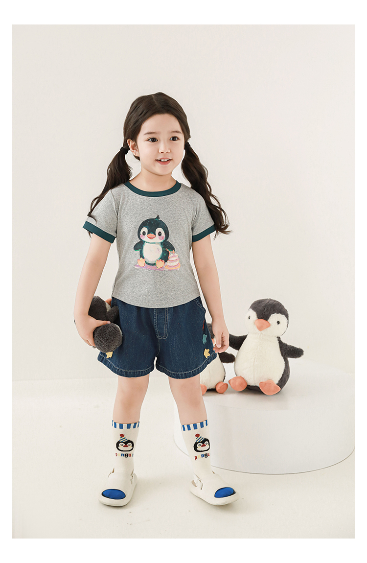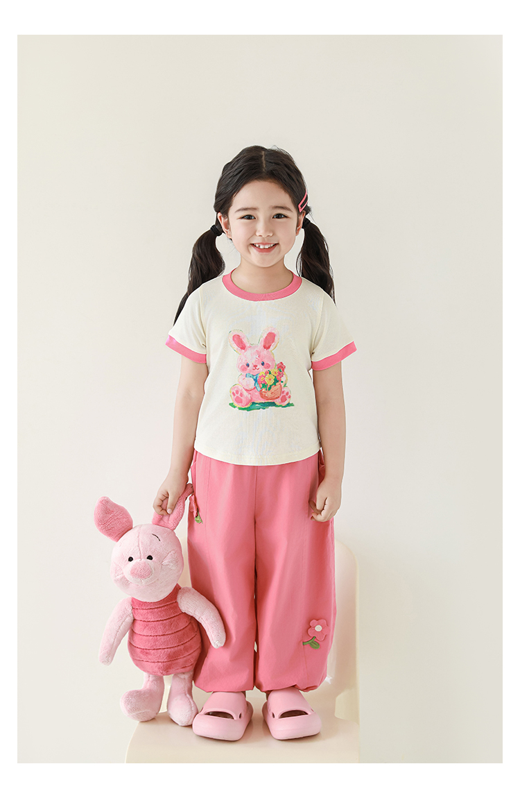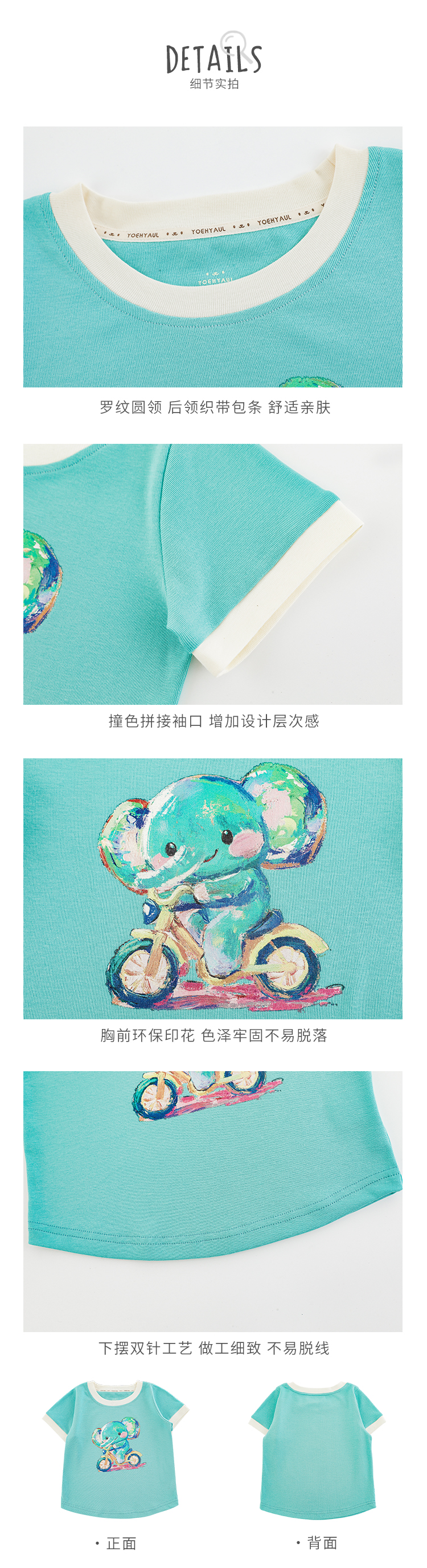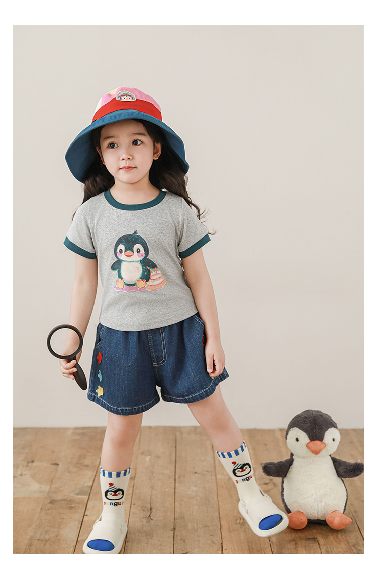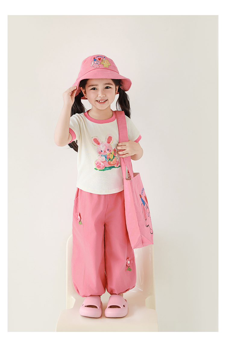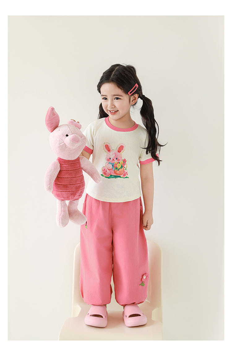 Wuri Boo Girl's Pet 프린트 반팔 티셔츠 여름 어린이 쿨 콘트라스트 리브 올 매치 쇼트 티셔츠
