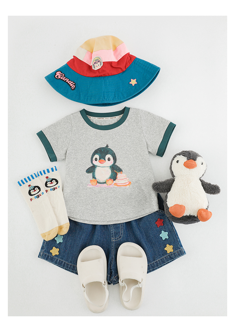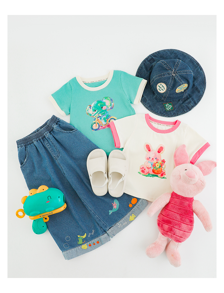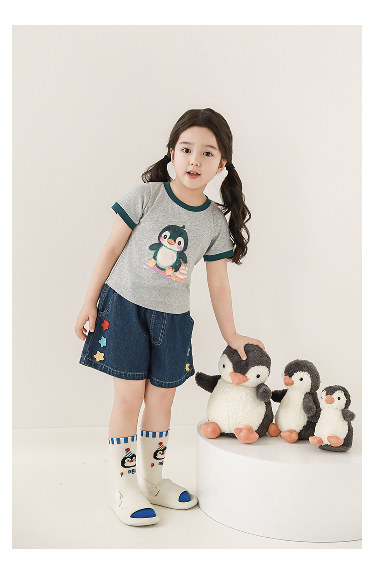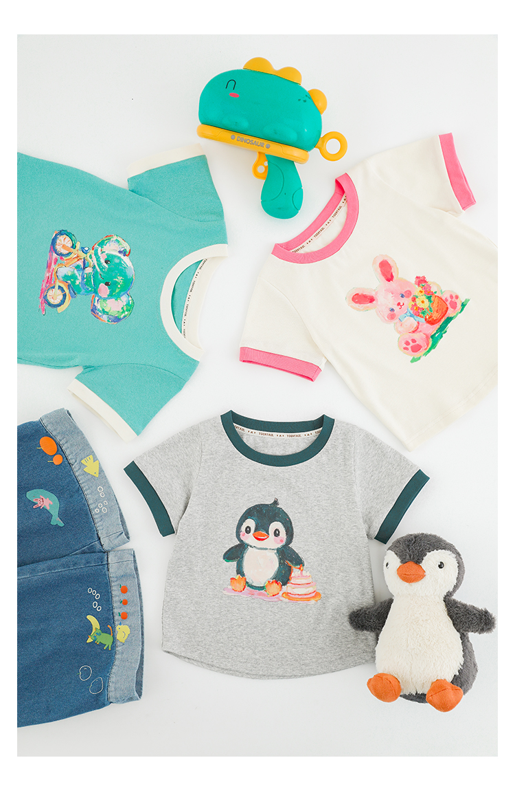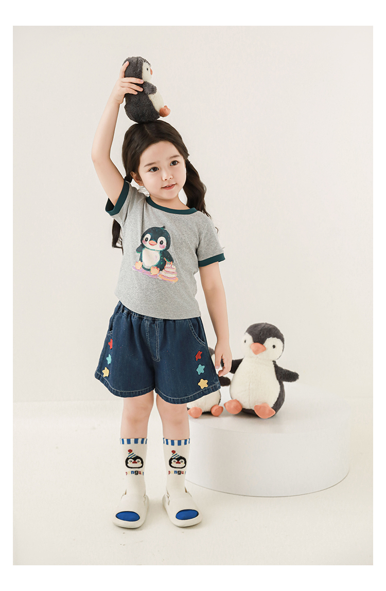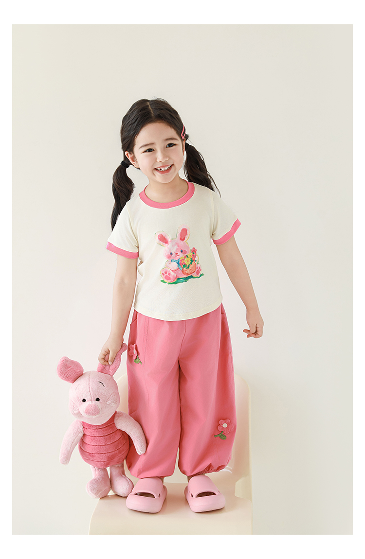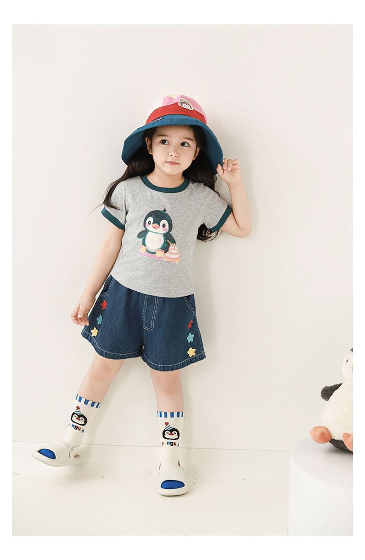 Wuri Boo Girl's Pet 프린트 반팔 티셔츠 여름 어린이 쿨 콘트라스트 리브 올 매치 쇼트 티셔츠