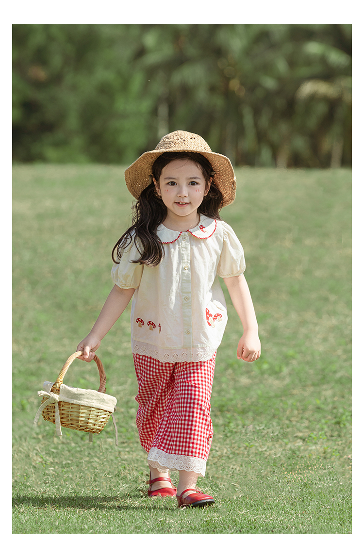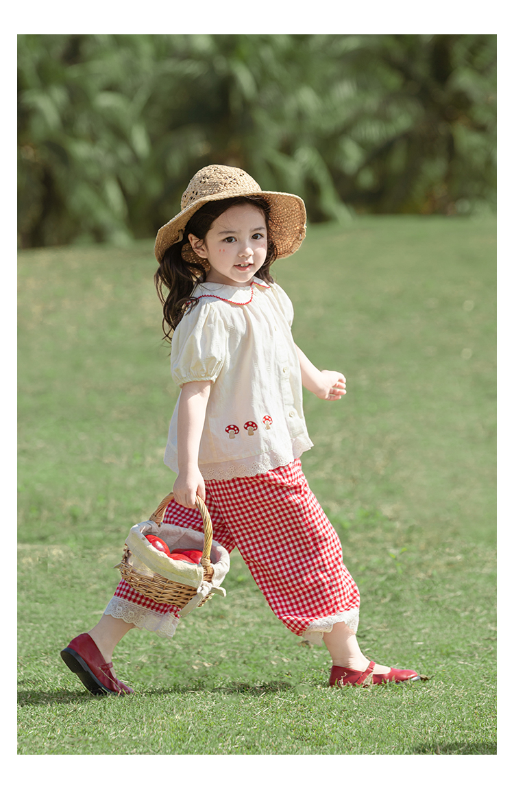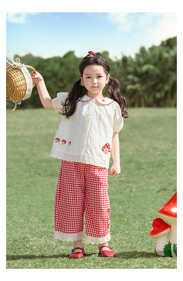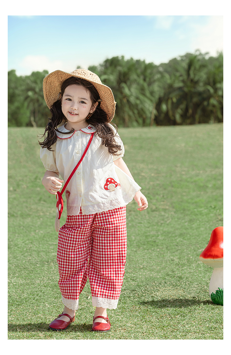 소녀의 여름 세트 장난스러운 원피스 대조 컬러 말굽 칼라 셔츠 느슨한 스트레이트 바지스토어 가기