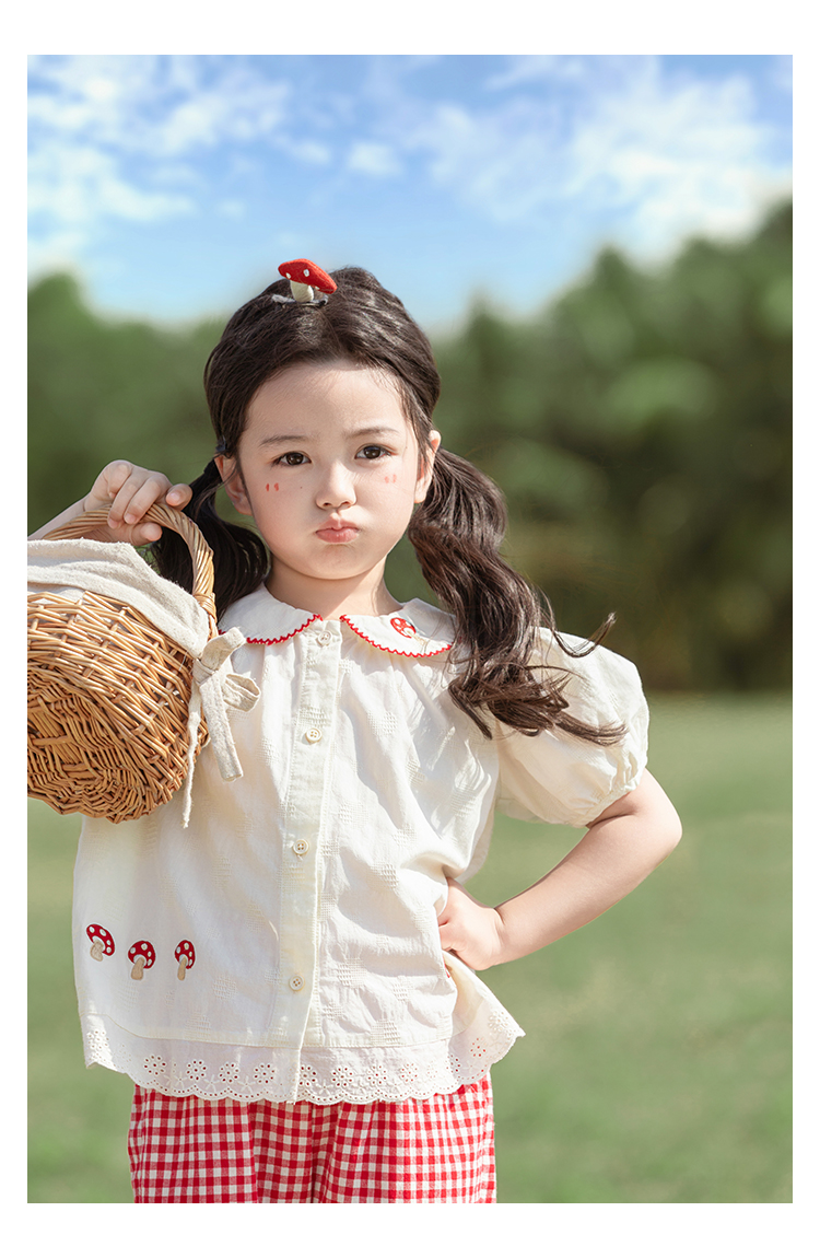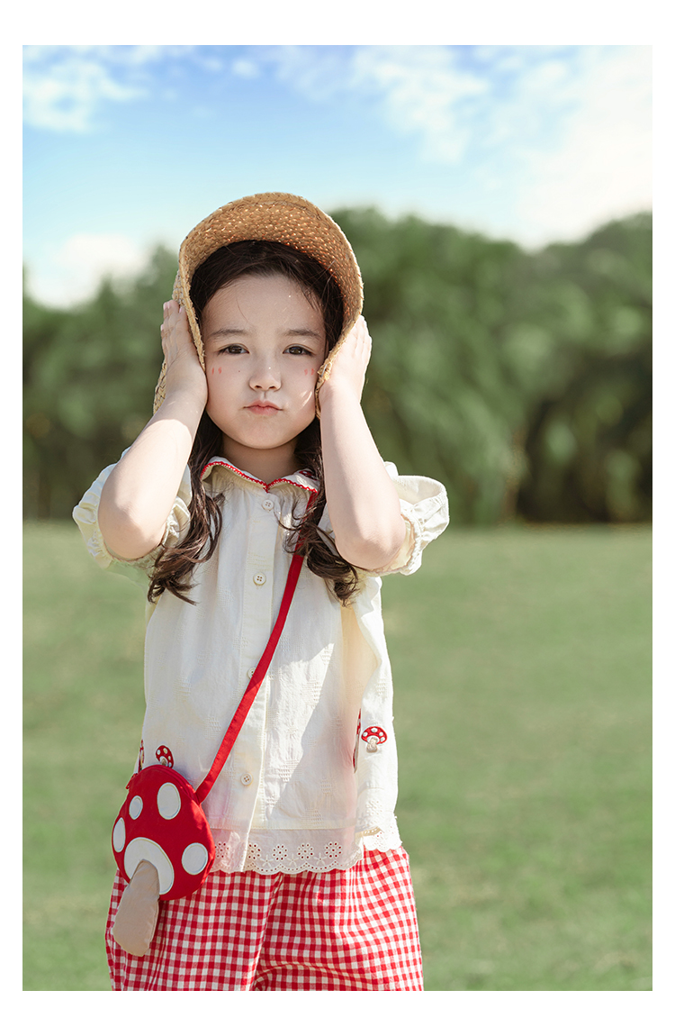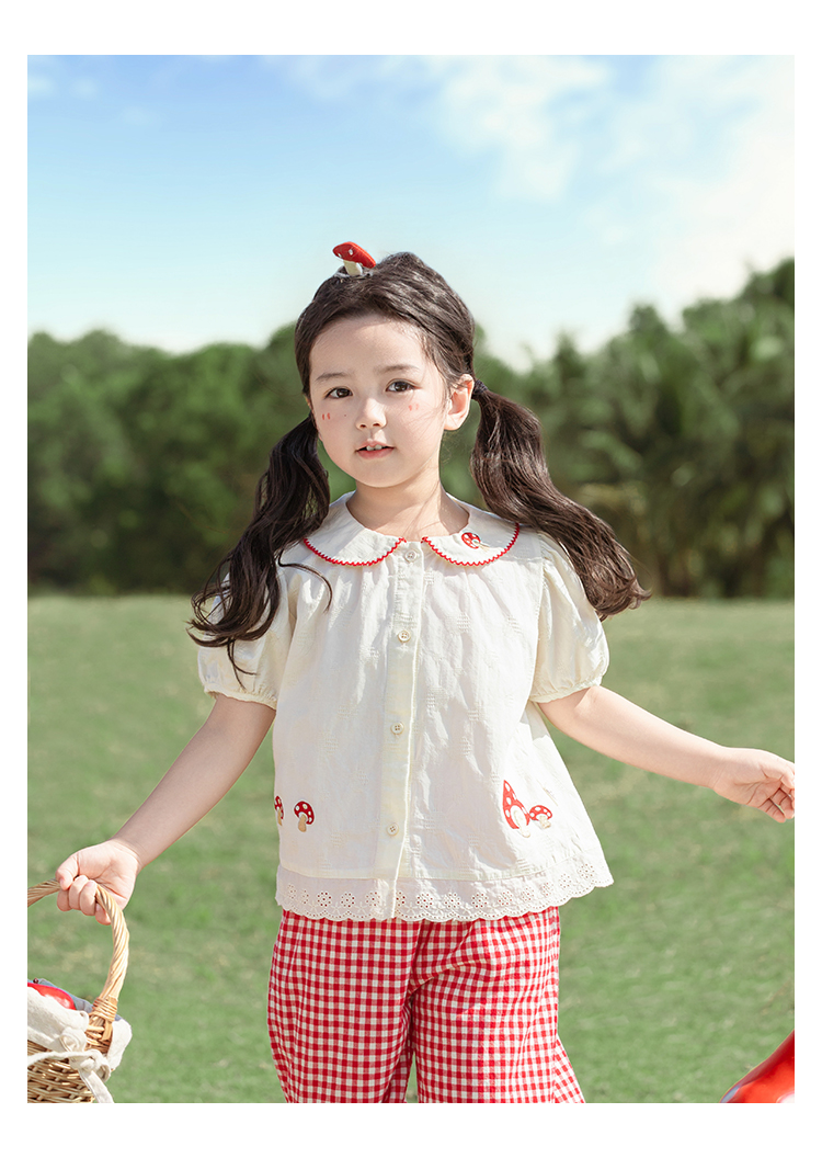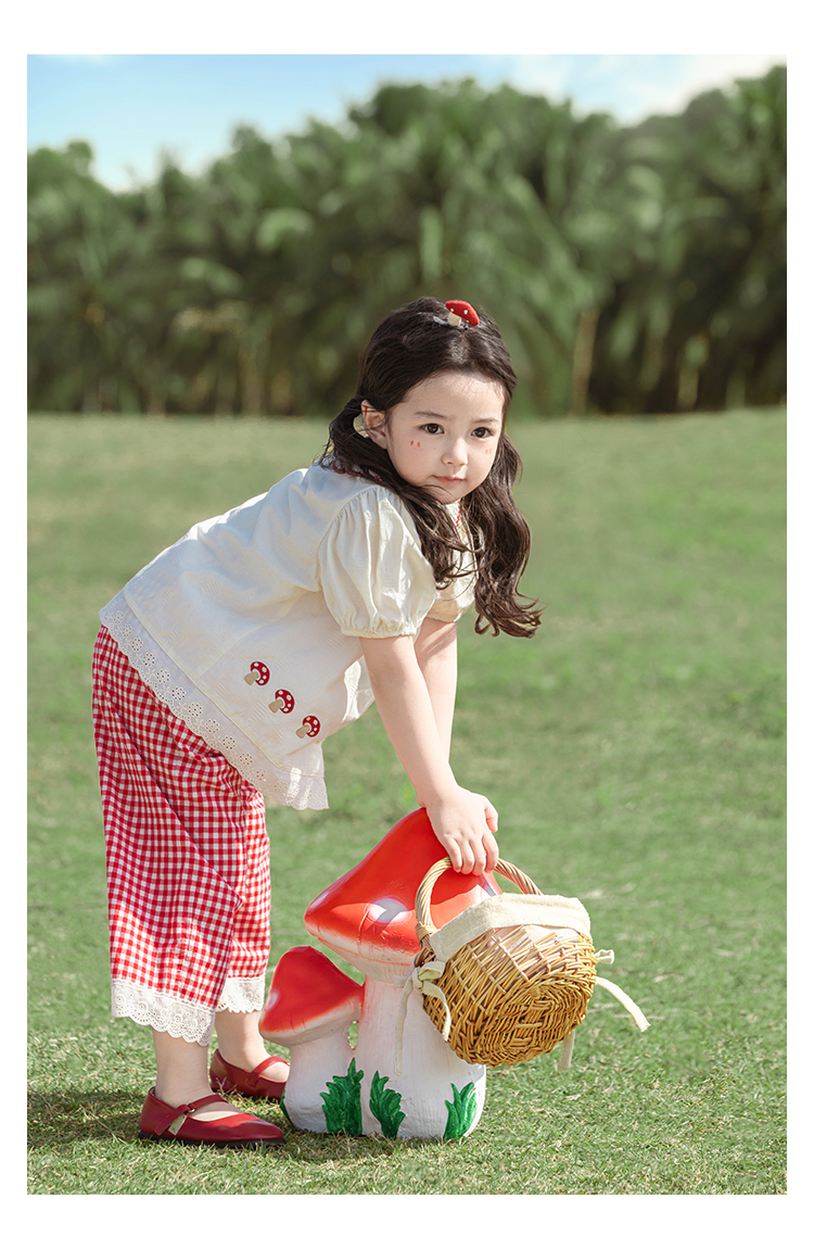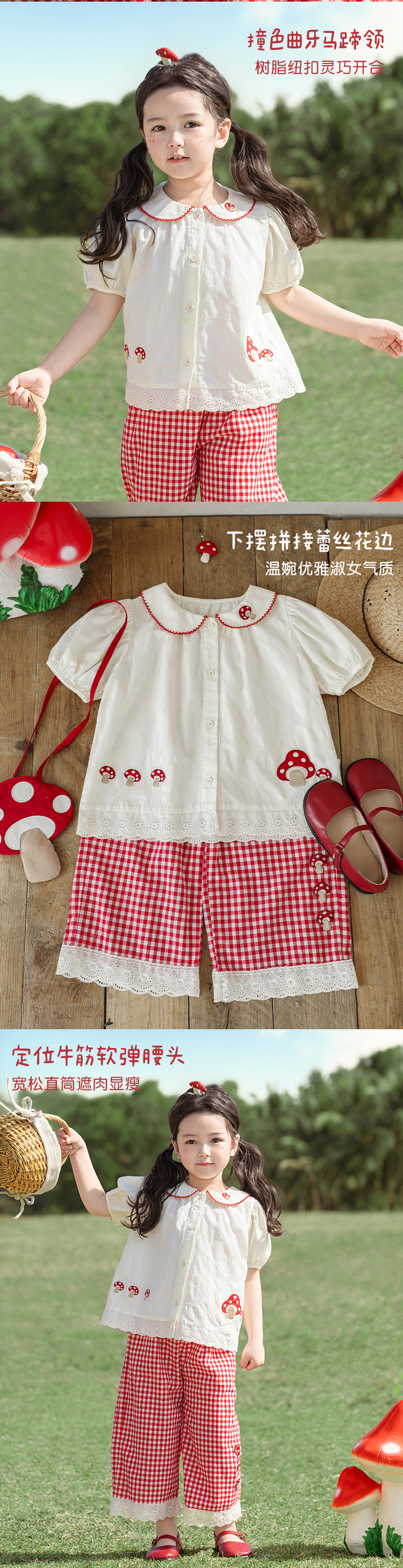 소녀의 여름 세트 장난스러운 원피스 대조 컬러 말굽 칼라 셔츠 느슨한 스트레이트 바지스토어 가기