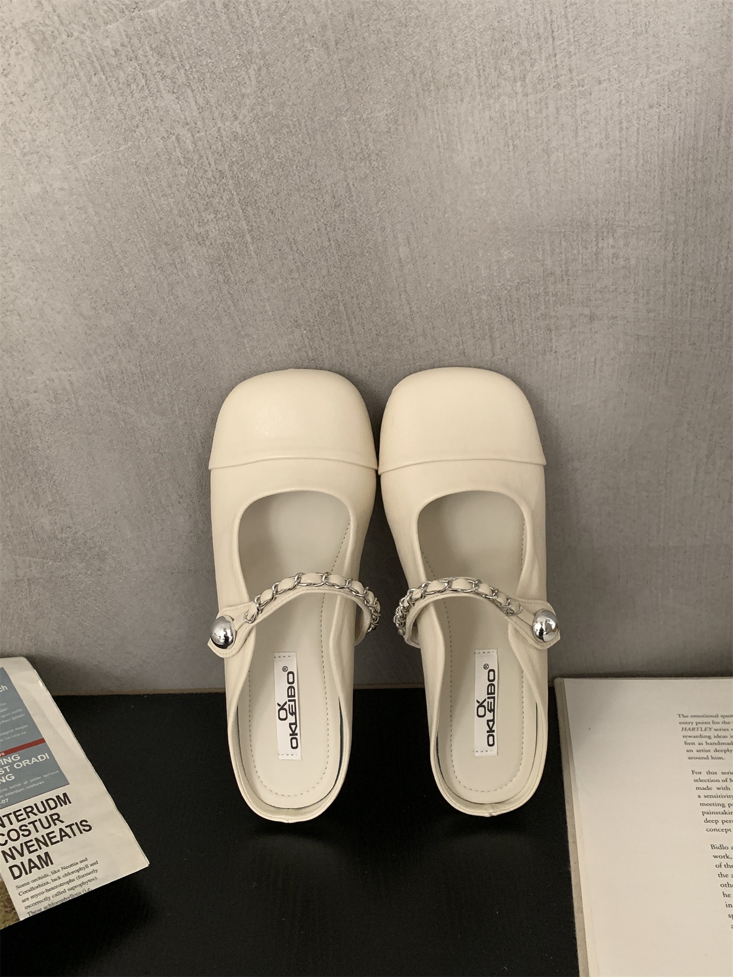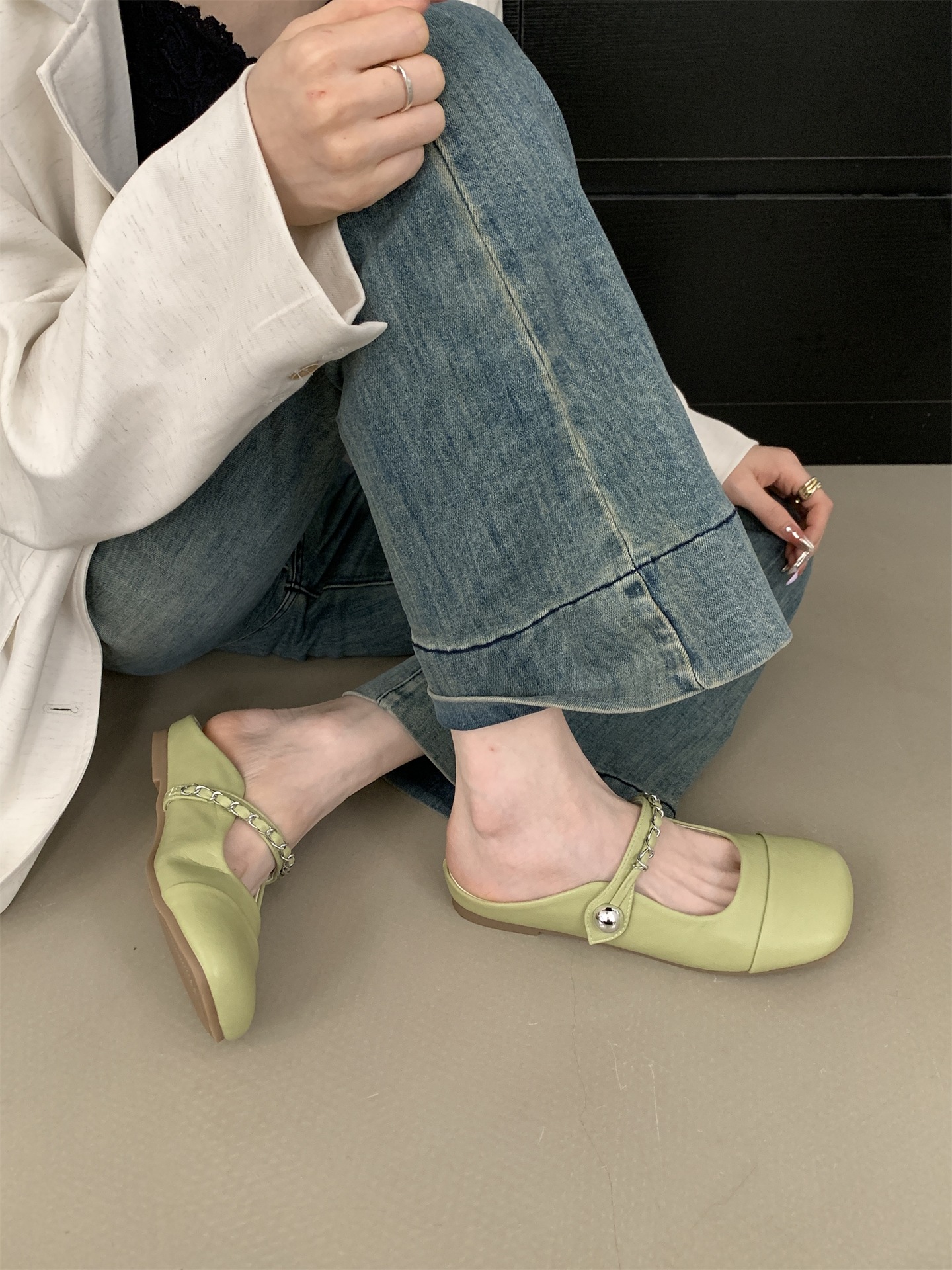 프렌치 스타일 젠틀 토캡 하프 슬리퍼 플랫 봄 여름 체인 스타일 메리제인 스커트 이브닝 슈즈