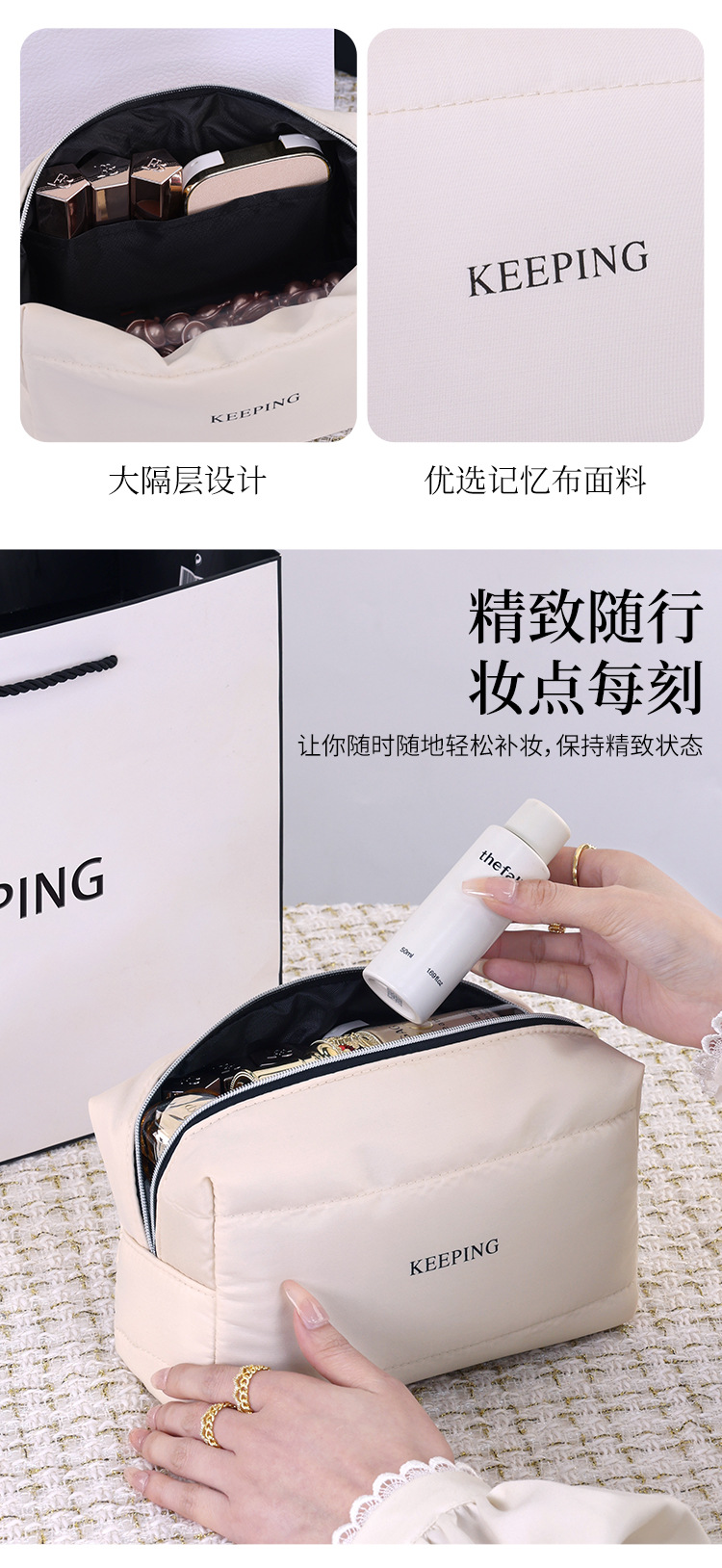 새로운 순수한 Yi 다운 핸드 메이크업 가방 여행 여성의 휴대용 대용량 고급 화장품 보관 가방스토어 가기