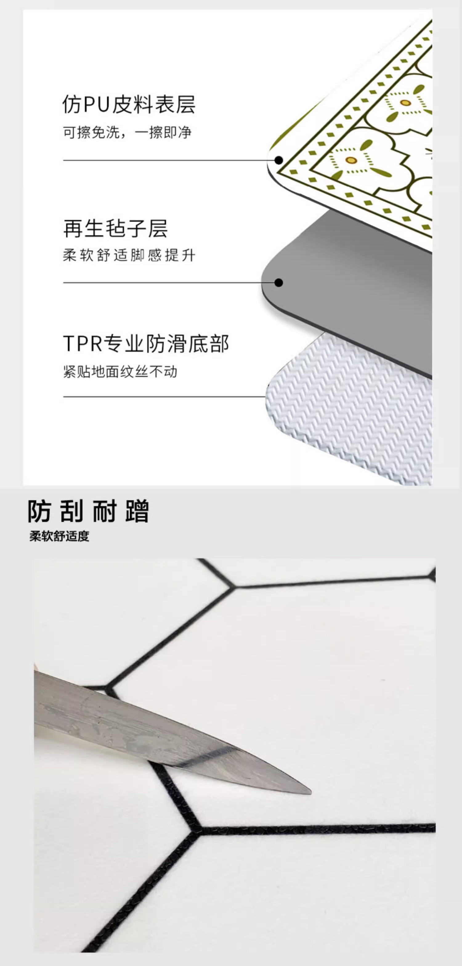 PVC 닦아낼 수 있는 무세척 주방 바닥 매트 미끄럼 방지 방유 방수 가정용 발 매트 현관 입구 방오 카펫 대량 판매