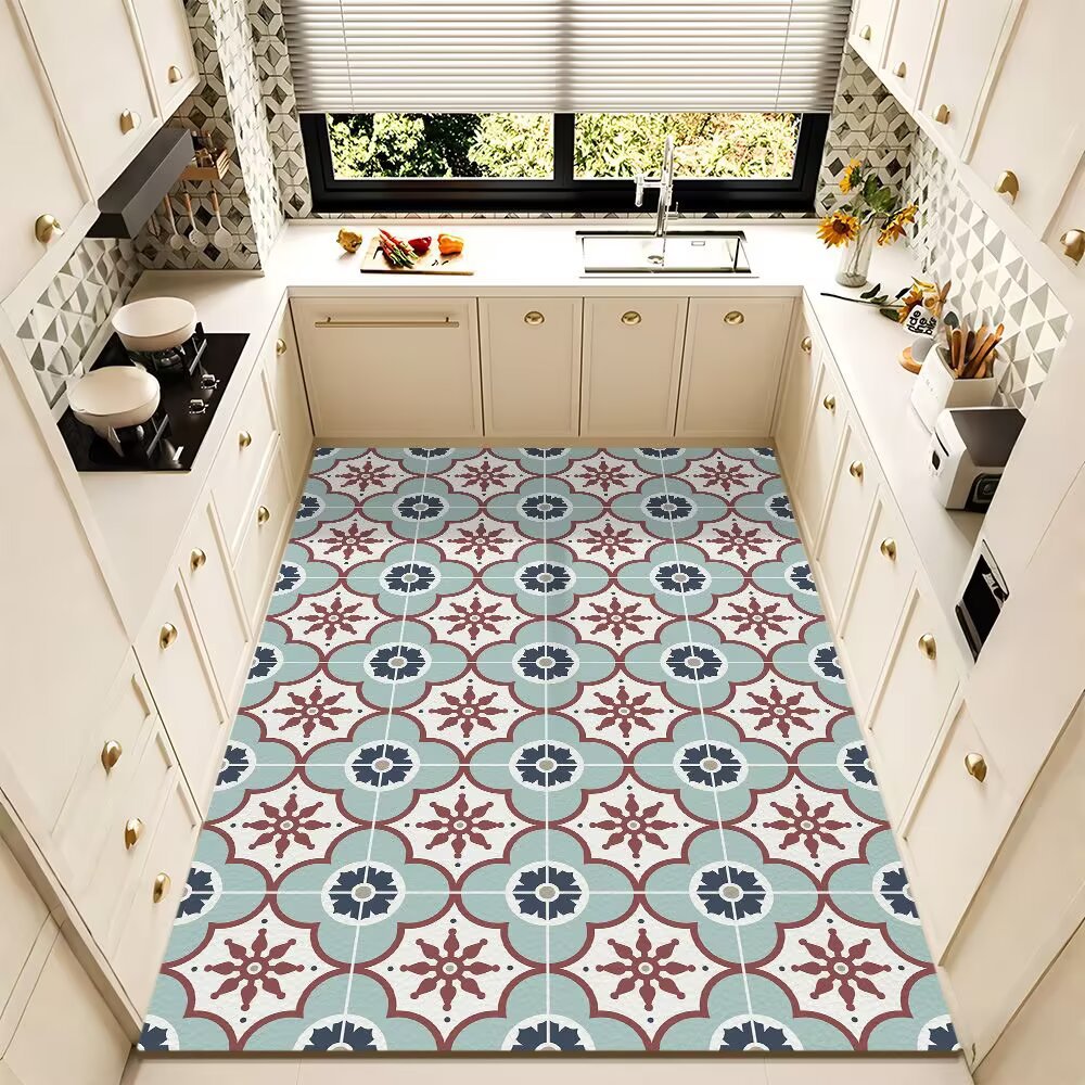 PVC 닦아낼 수 있는 무세척 주방 바닥 매트 미끄럼 방지 방유 방수 가정용 발 매트 현관 입구 방오 카펫 대량 판매스토어 가기