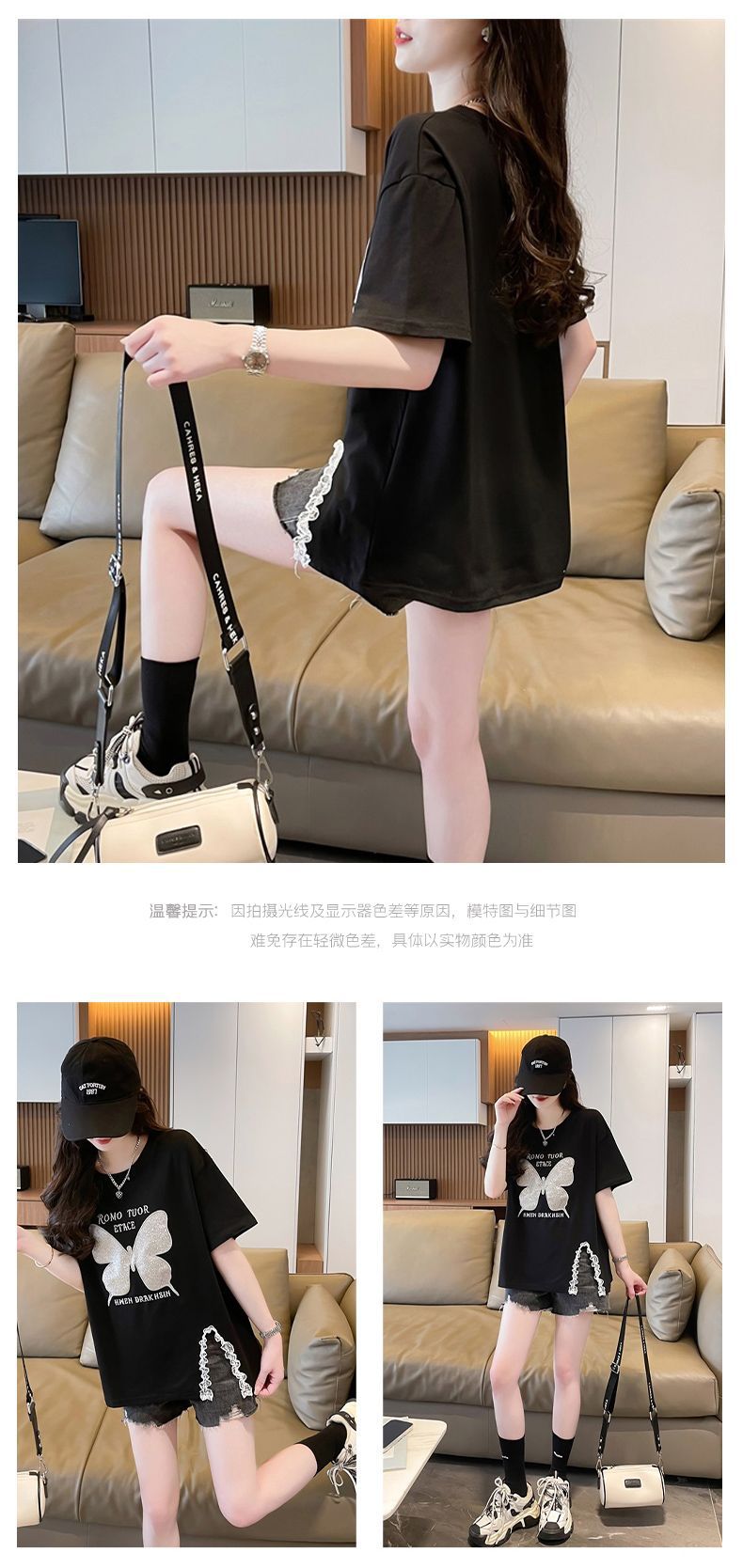 느슨한 여름 여성 반팔 티셔츠 나비 하이 엔드 유럽식 세련된 편지 반소매 스플릿 탑스토어 가기