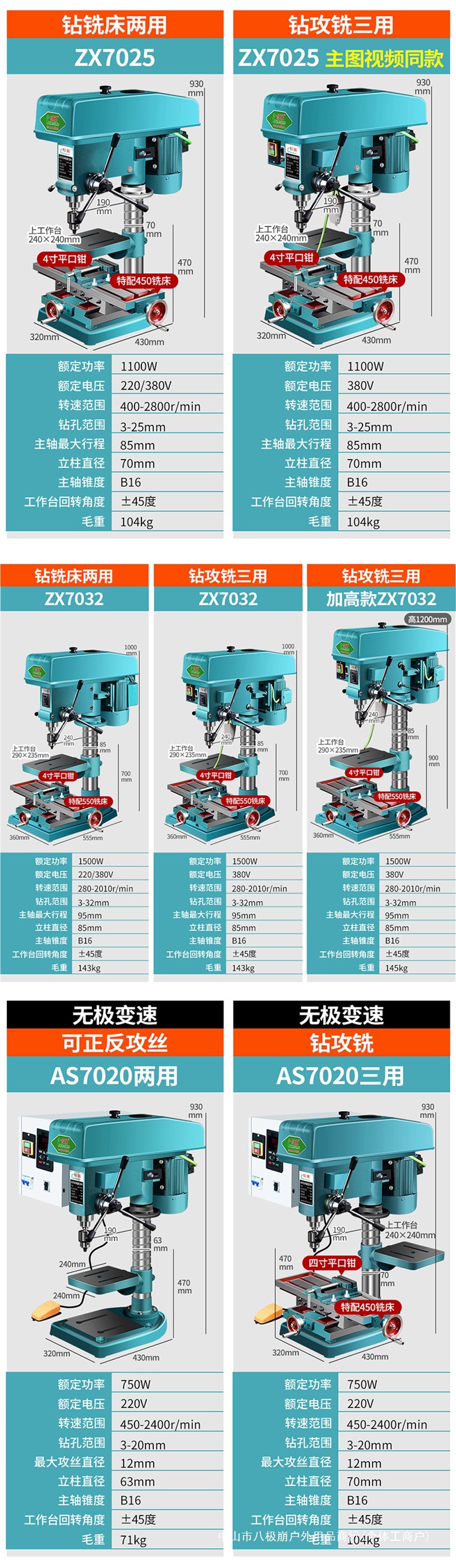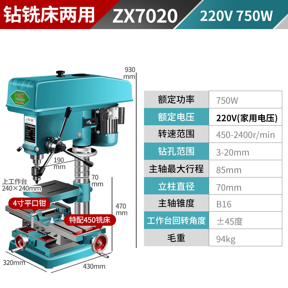 • 드릴링 및 밀링 머신 이중 목적 zx7020 (220v750w)