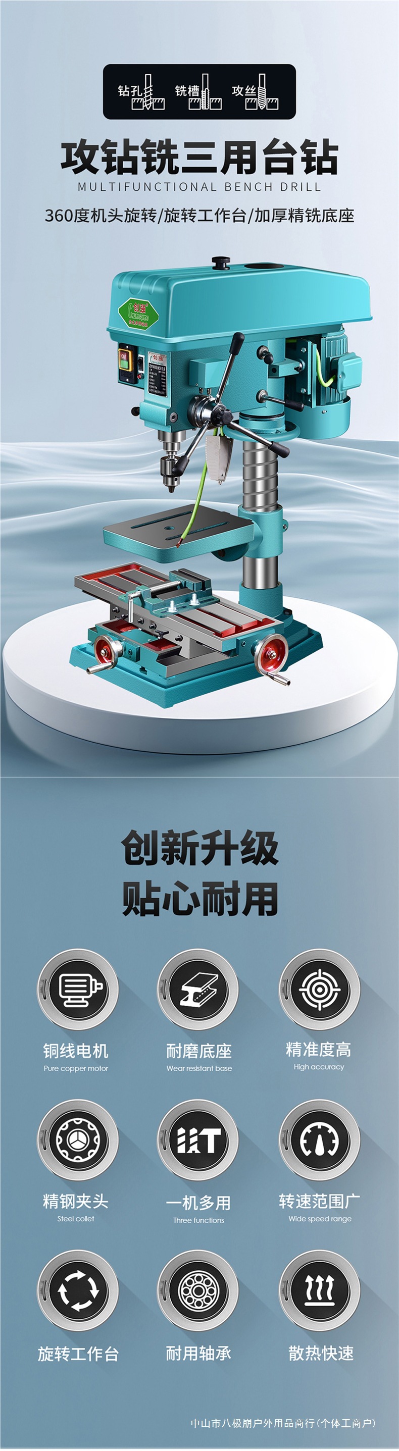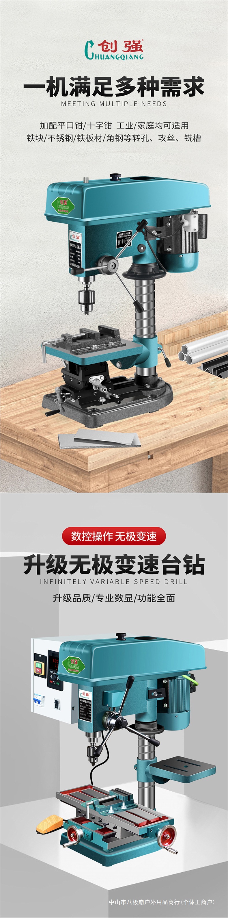 Chuangqiang 벤치 드릴 220V 드릴링 머신 드릴링, 3 용도 고출력 다기능 소형 가정용 산업용 등급 드릴링 8 극스토어 가기