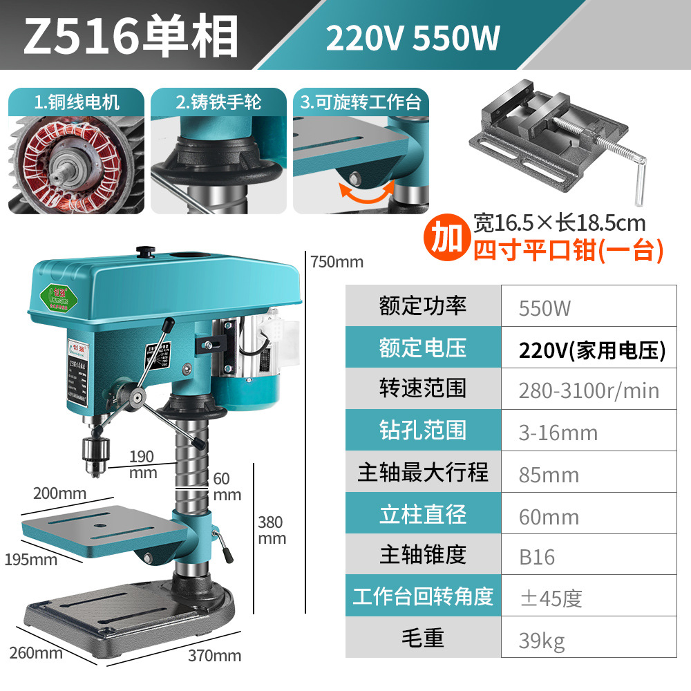 Chuangqiang 벤치 드릴 220V 드릴링 머신 드릴링, 3 용도 고출력 다기능 소형 가정용 산업용 등급 드릴링 8 극