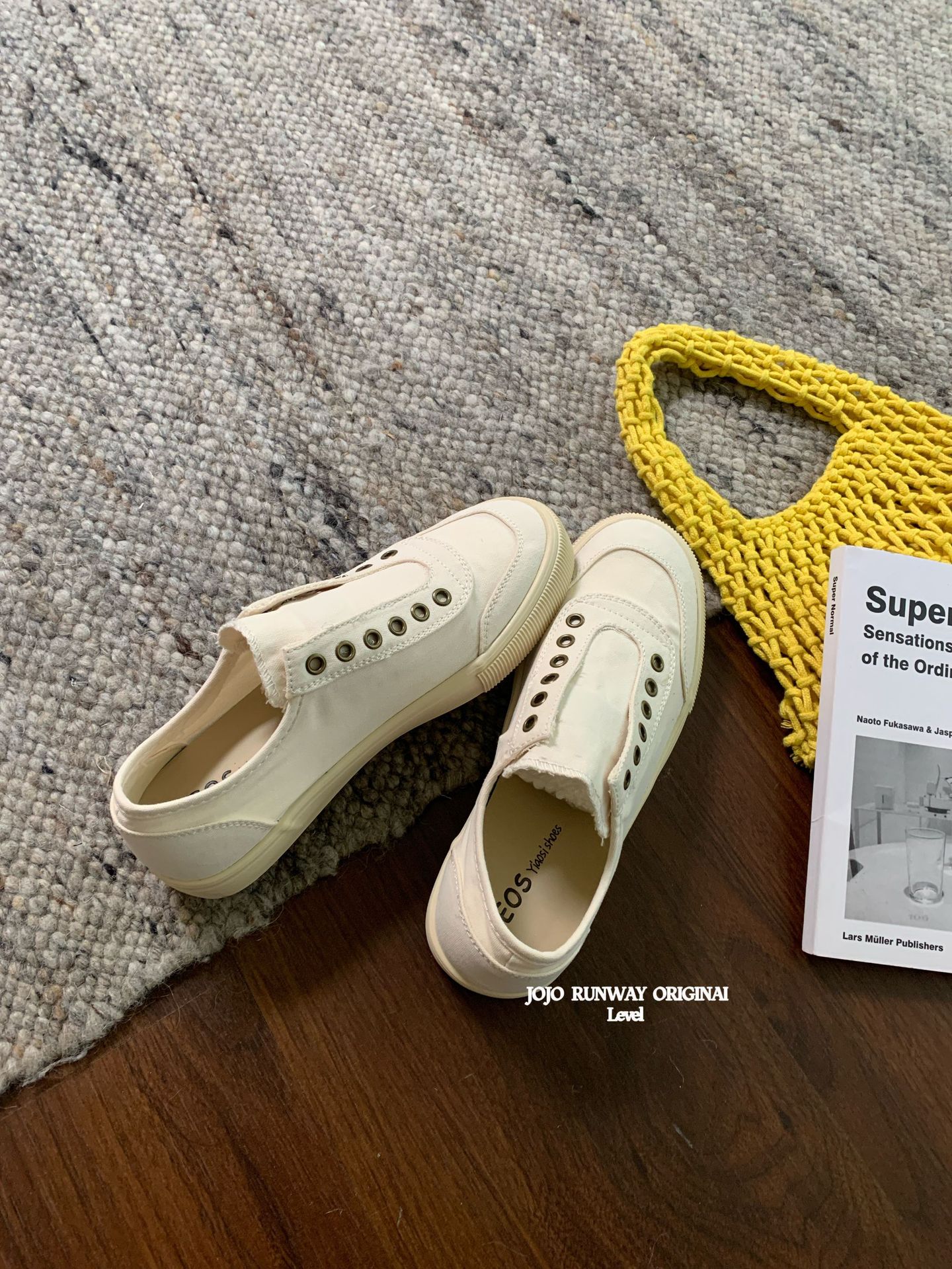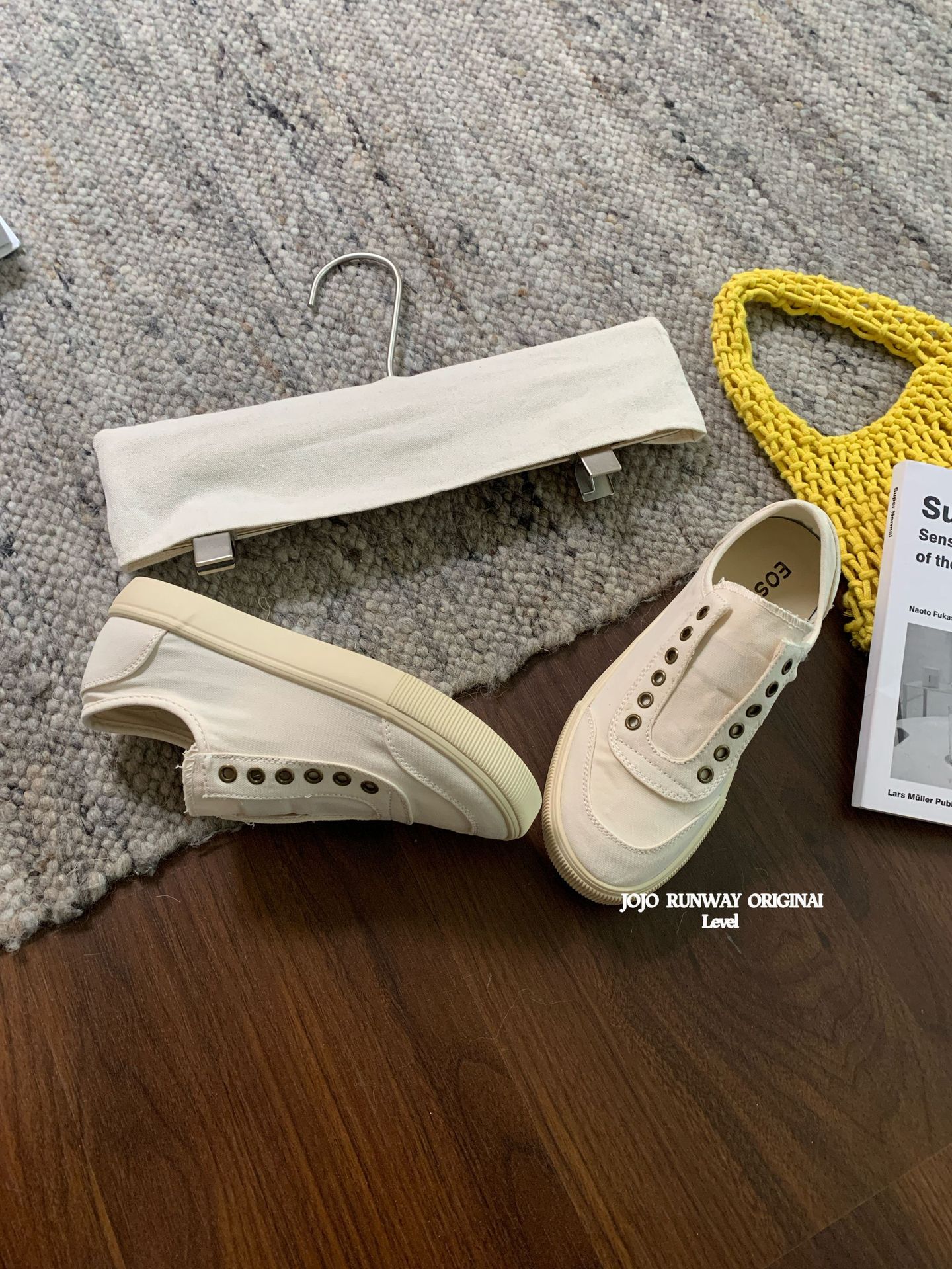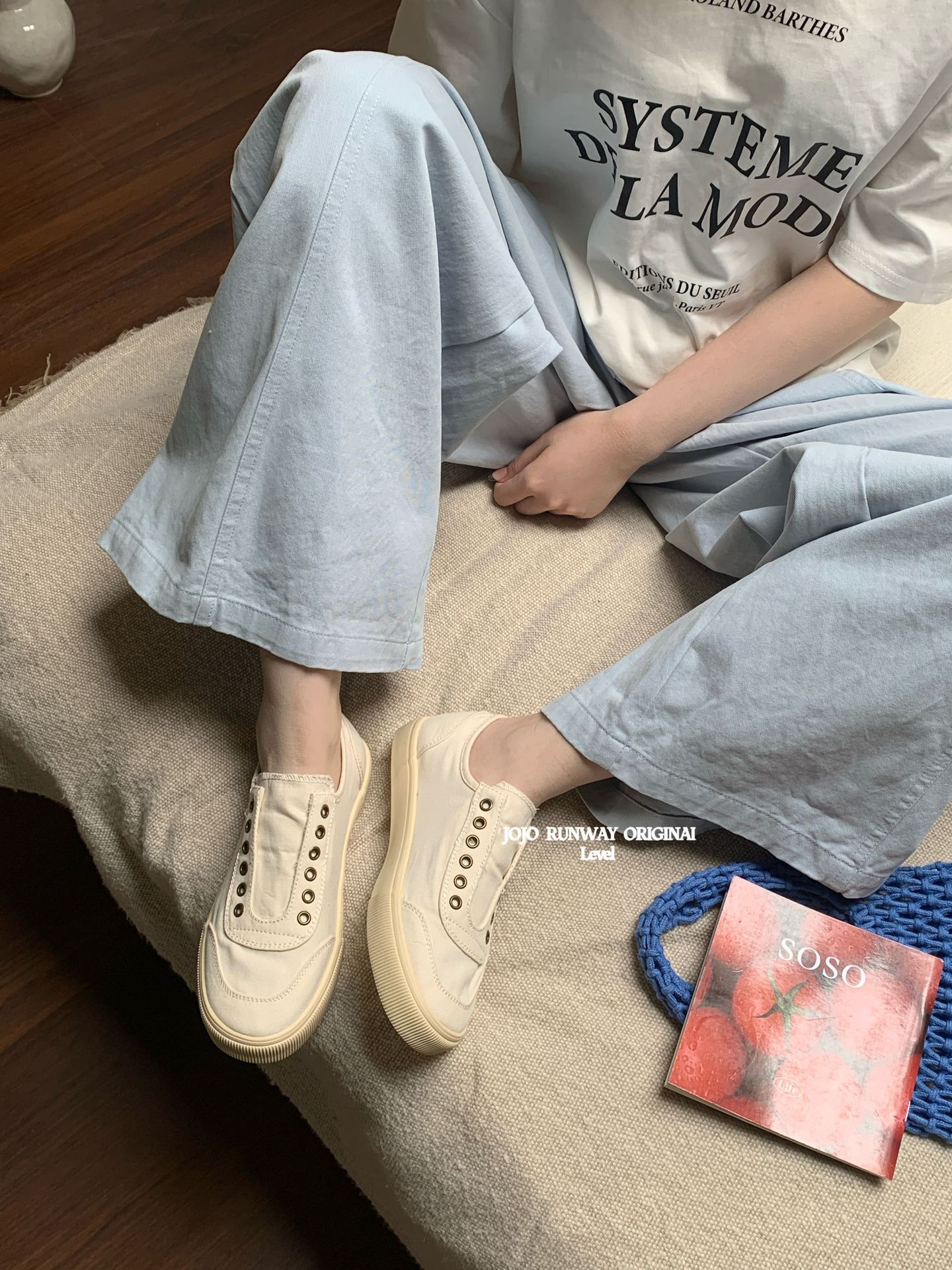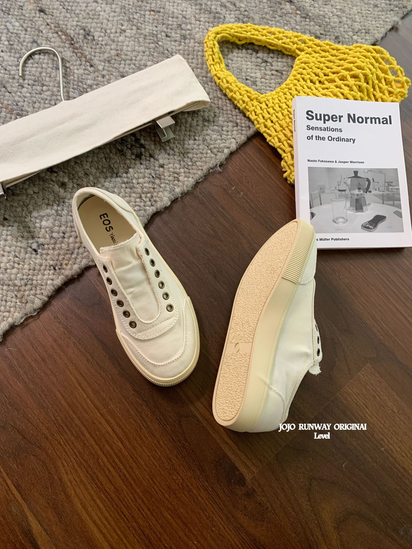 Wulacao Pigskin Insoles 캔버스 신발 여성용 2025 봄 새 라운드 발가락 두꺼운 밑창 흰색 신발 캐주얼 올 매치 여성 신발스토어 가기