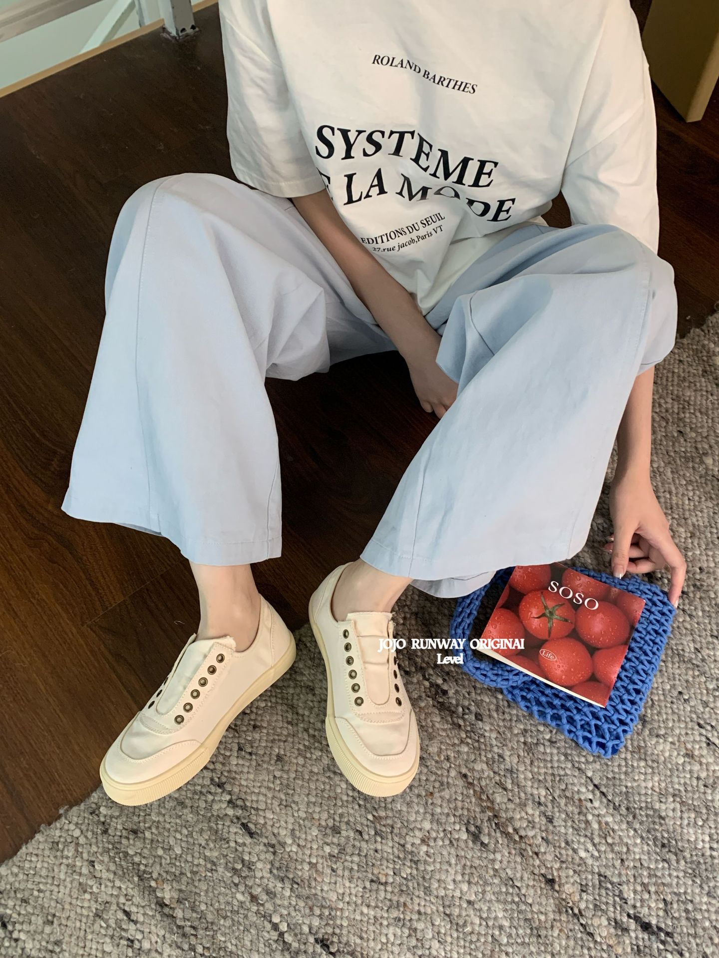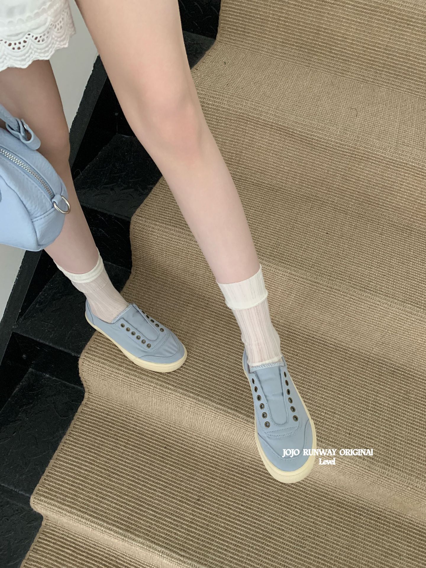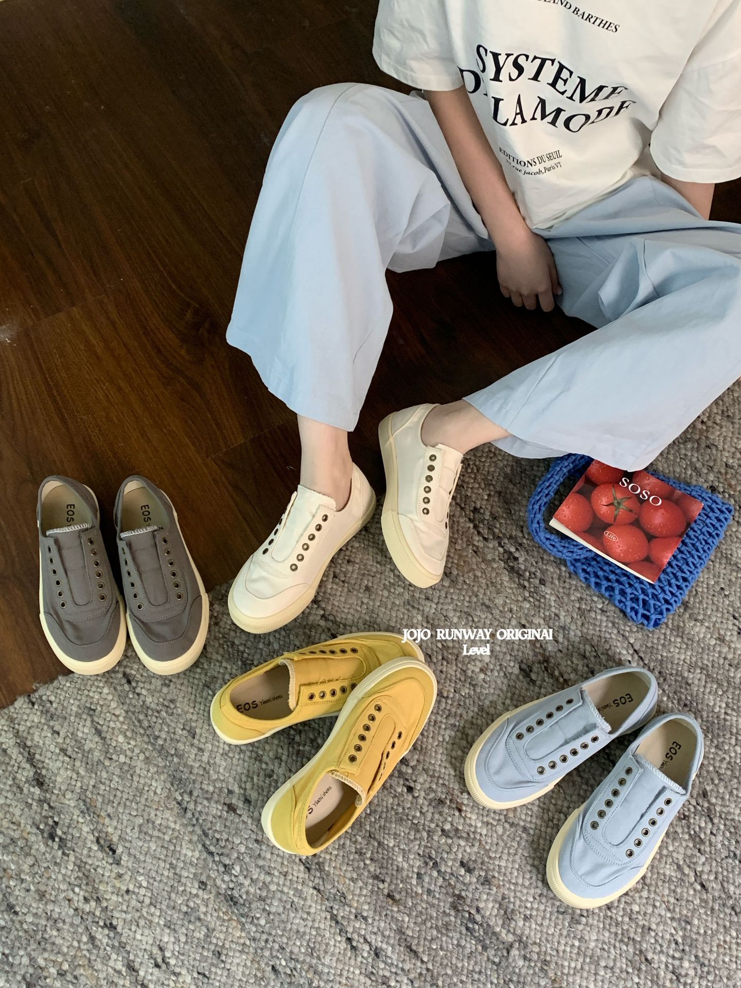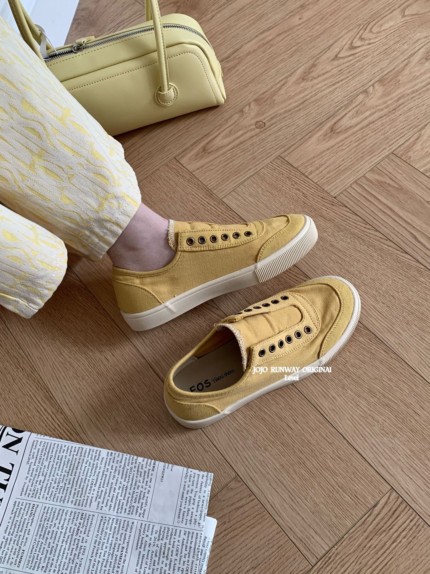 Wulacao Pigskin Insoles 캔버스 신발 여성용 2025 봄 새 라운드 발가락 두꺼운 밑창 흰색 신발 캐주얼 올 매치 여성 신발스토어 가기
