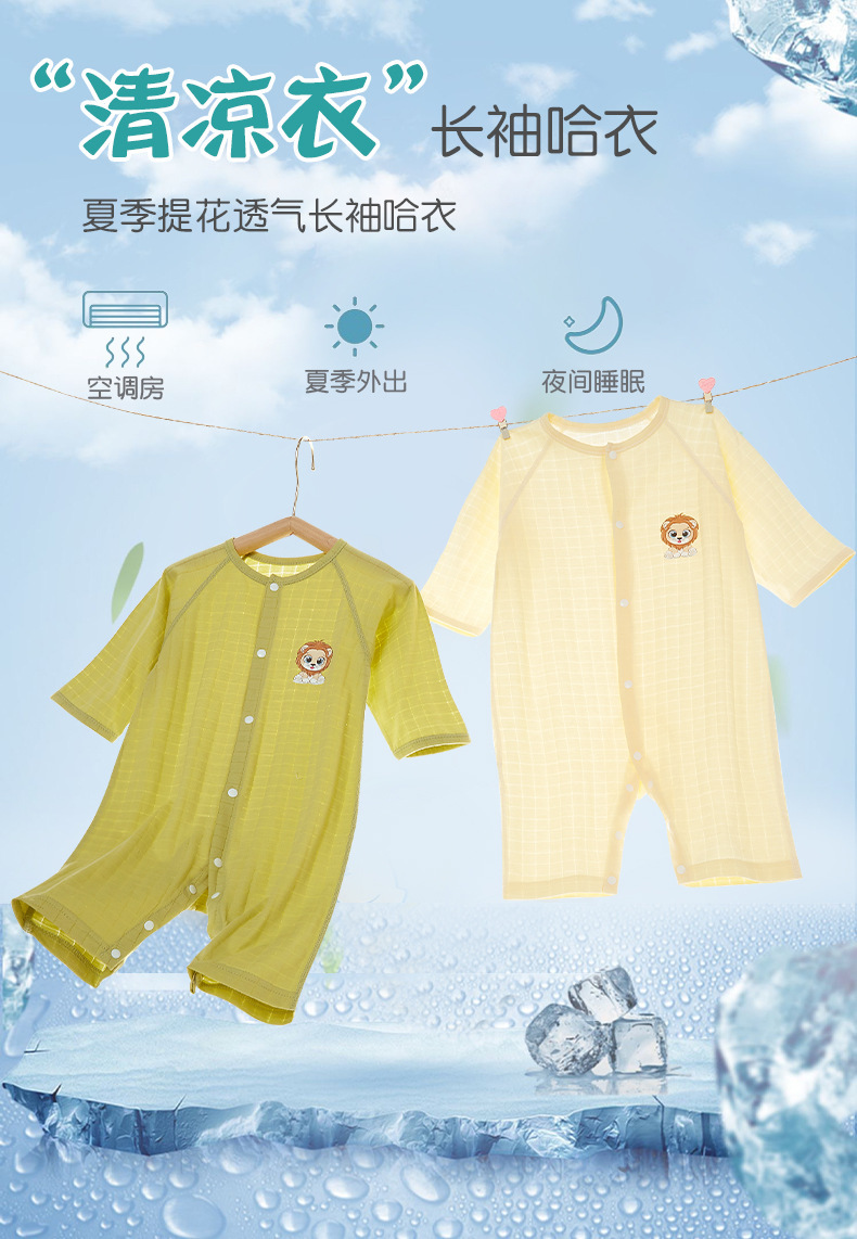아기 점프 슈트 여름 얇은 순면 에어컨 옷 긴팔 아기 옷 신생아 옷 잠옷 아기 가정 옷스토어 가기