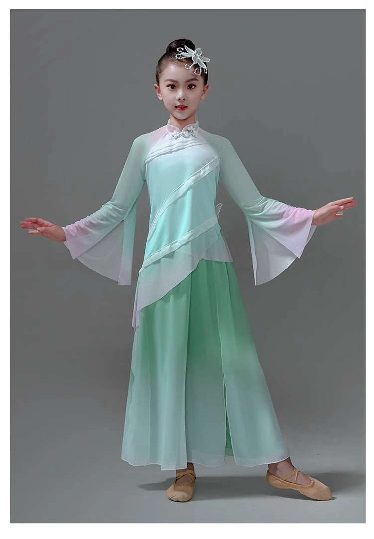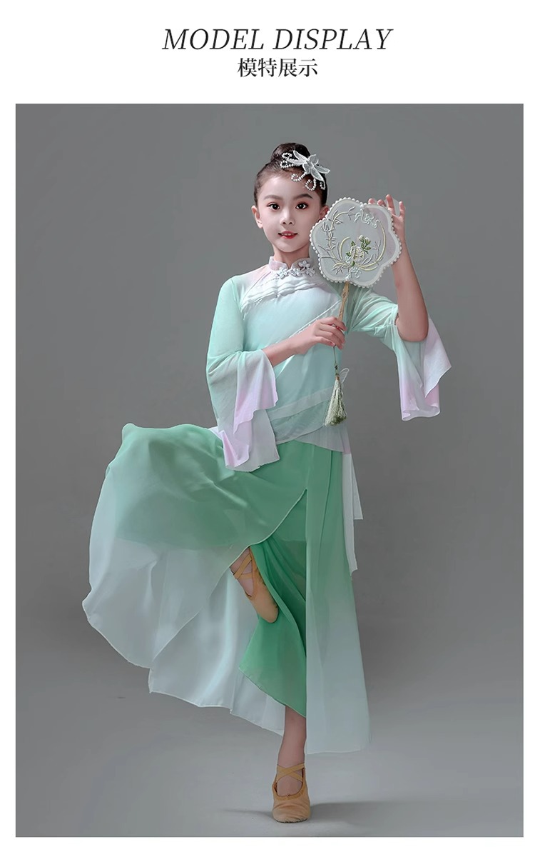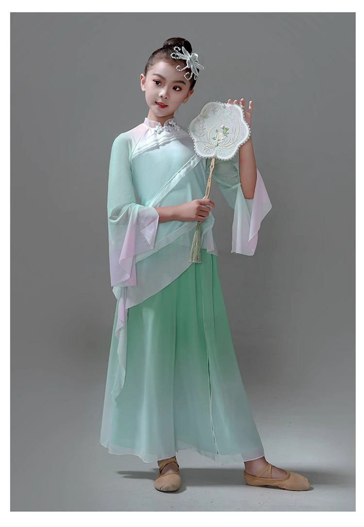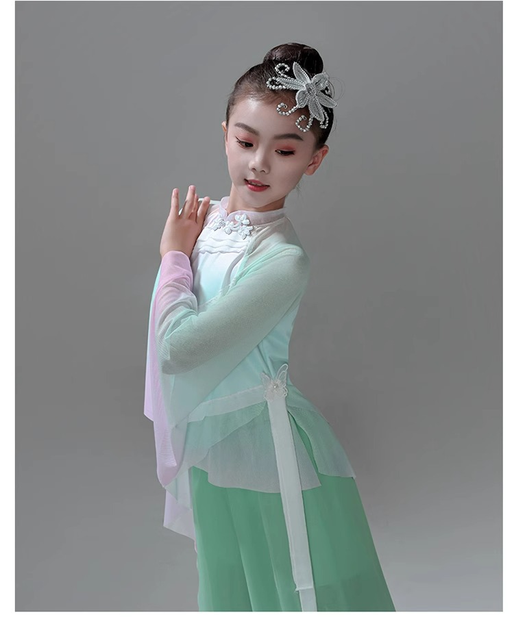 아동고전무용공연의상, 우아한 여아연습복, 중국무용민속무용공연, 부채춤복