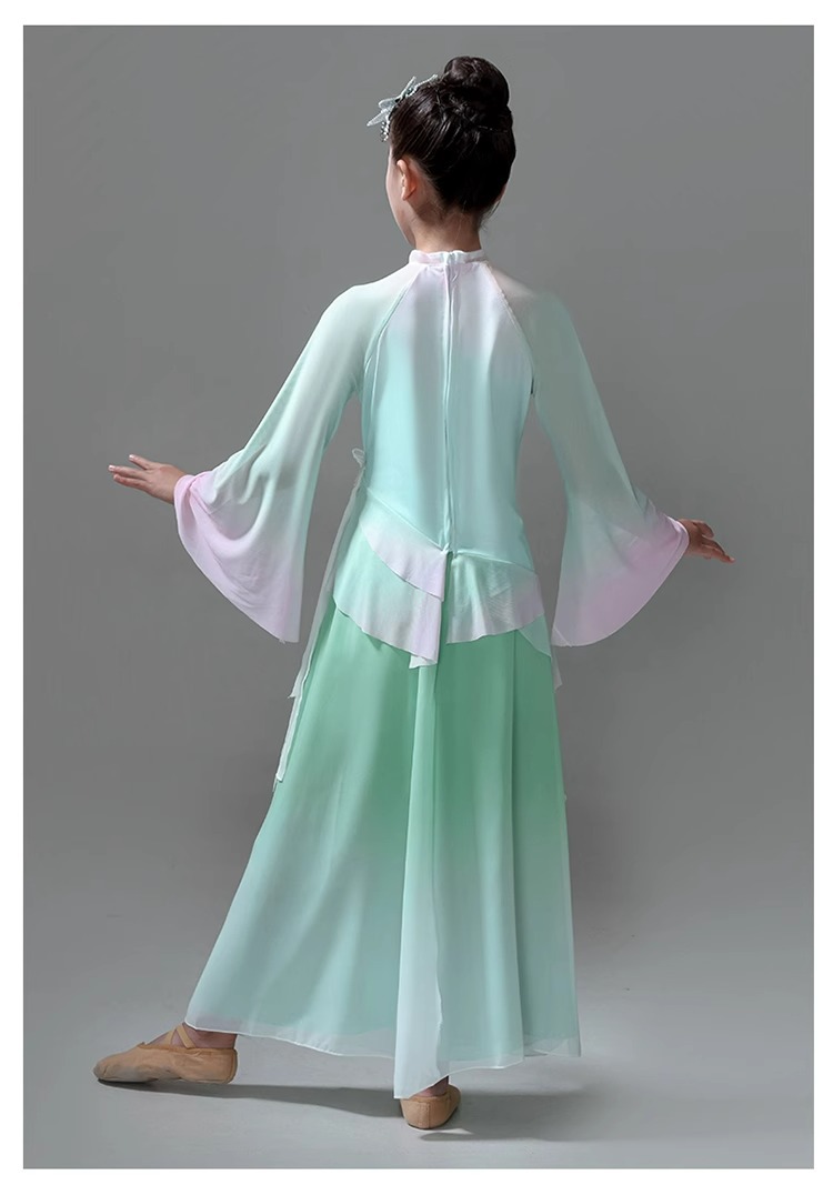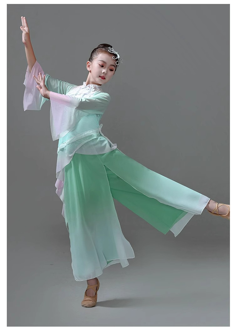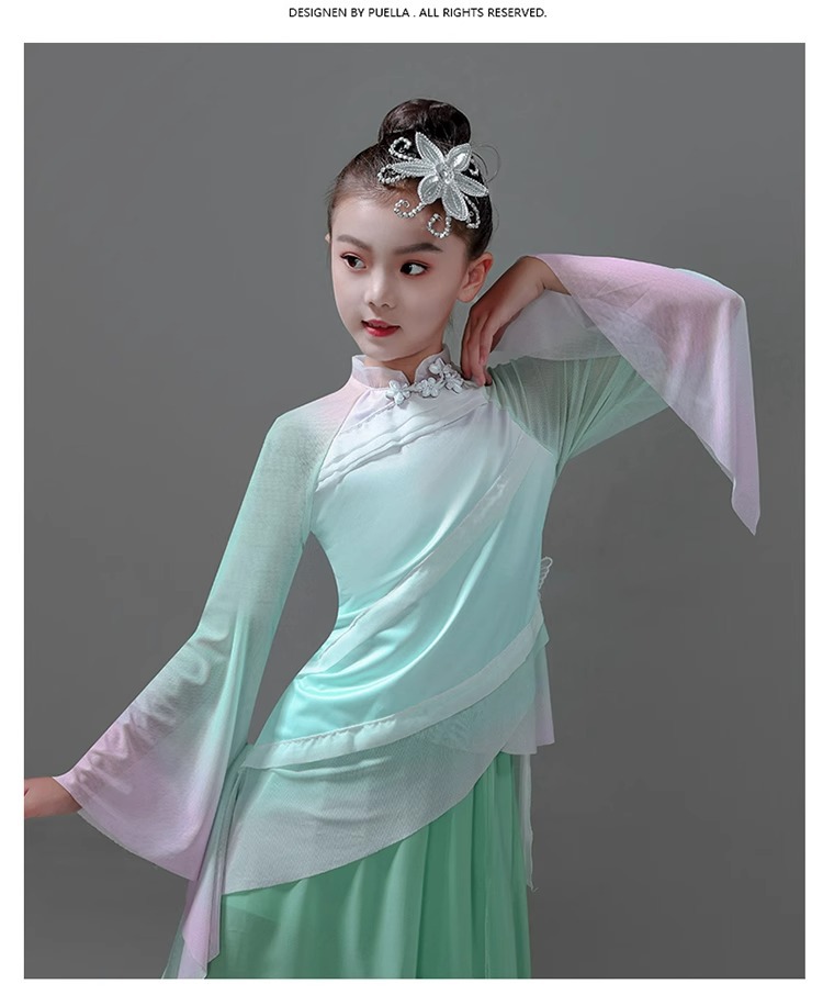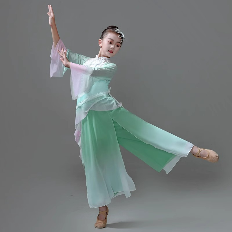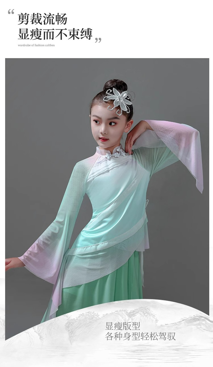 아동고전무용공연의상, 우아한 여아연습복, 중국무용민속무용공연, 부채춤복