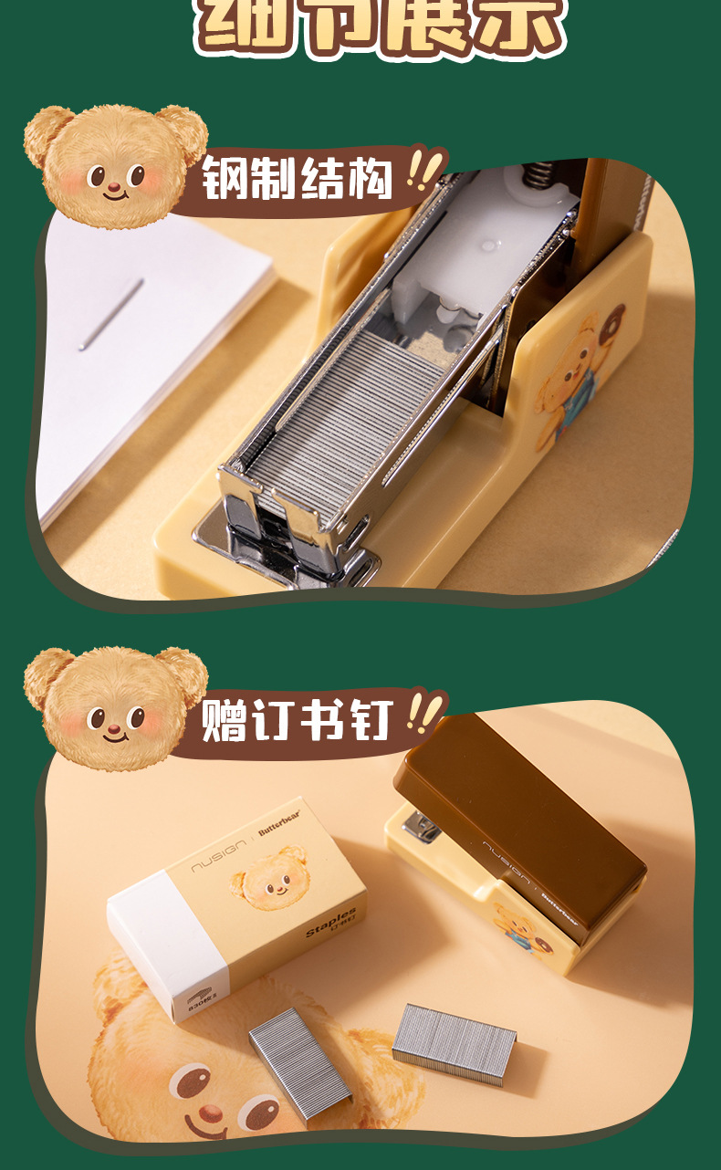 델리뉴세 미니 스테이플러 버터베어 스테이플러 초등학생 스테이플러 휴대용 오피스 바인더