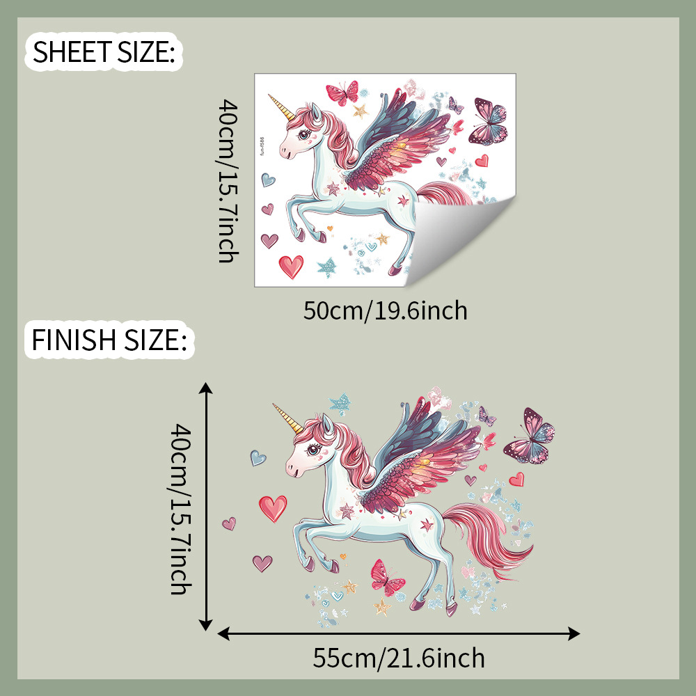 Fun-f586 만화 유니콘 사랑 나비 침실 거실 홈 벽 배경 미화 장식 벽 스티커스토어 가기
