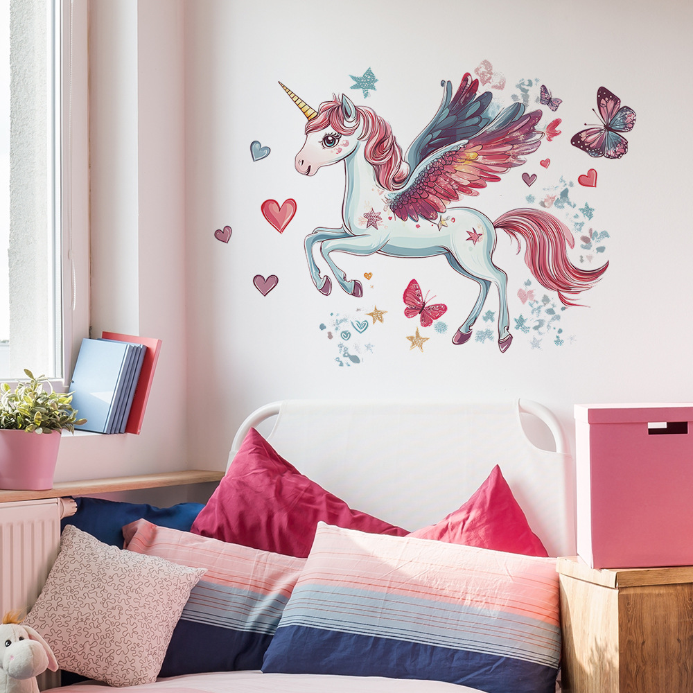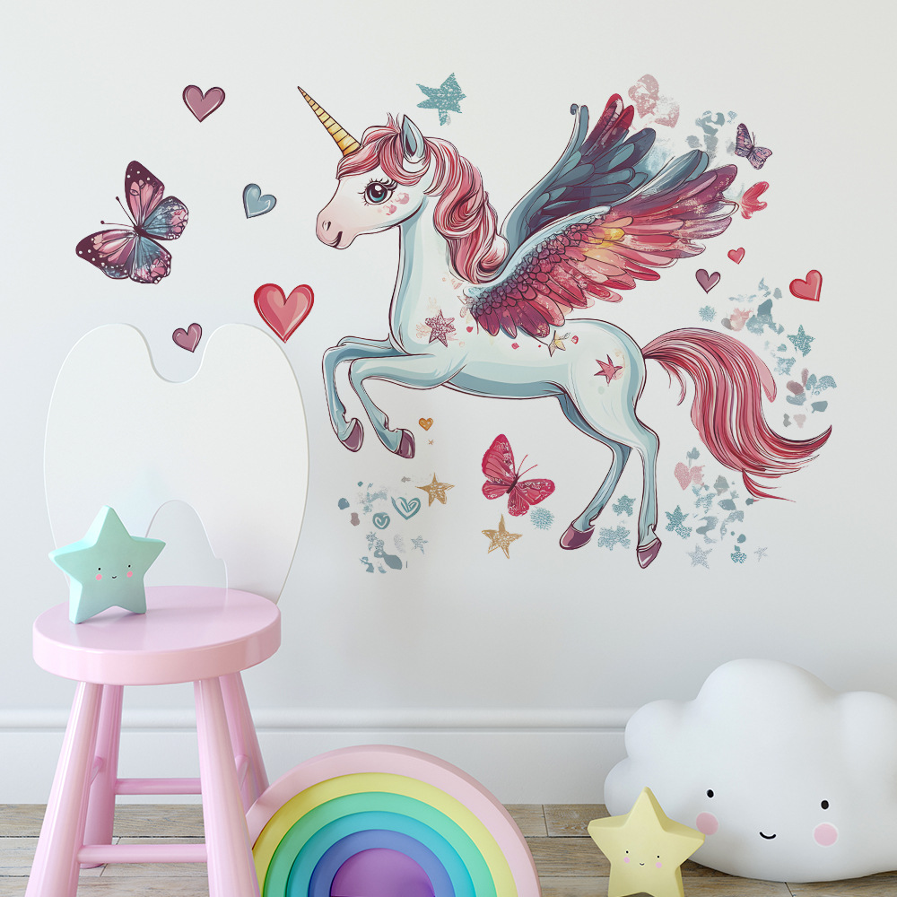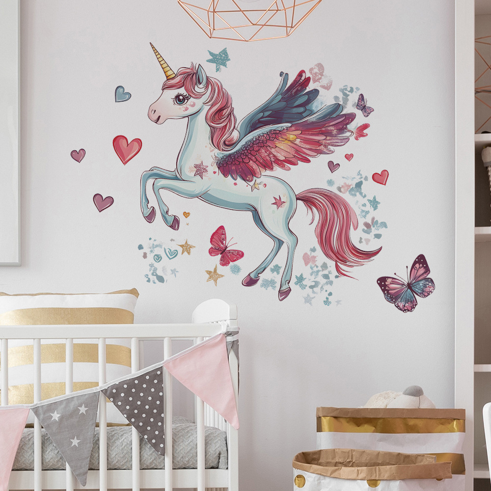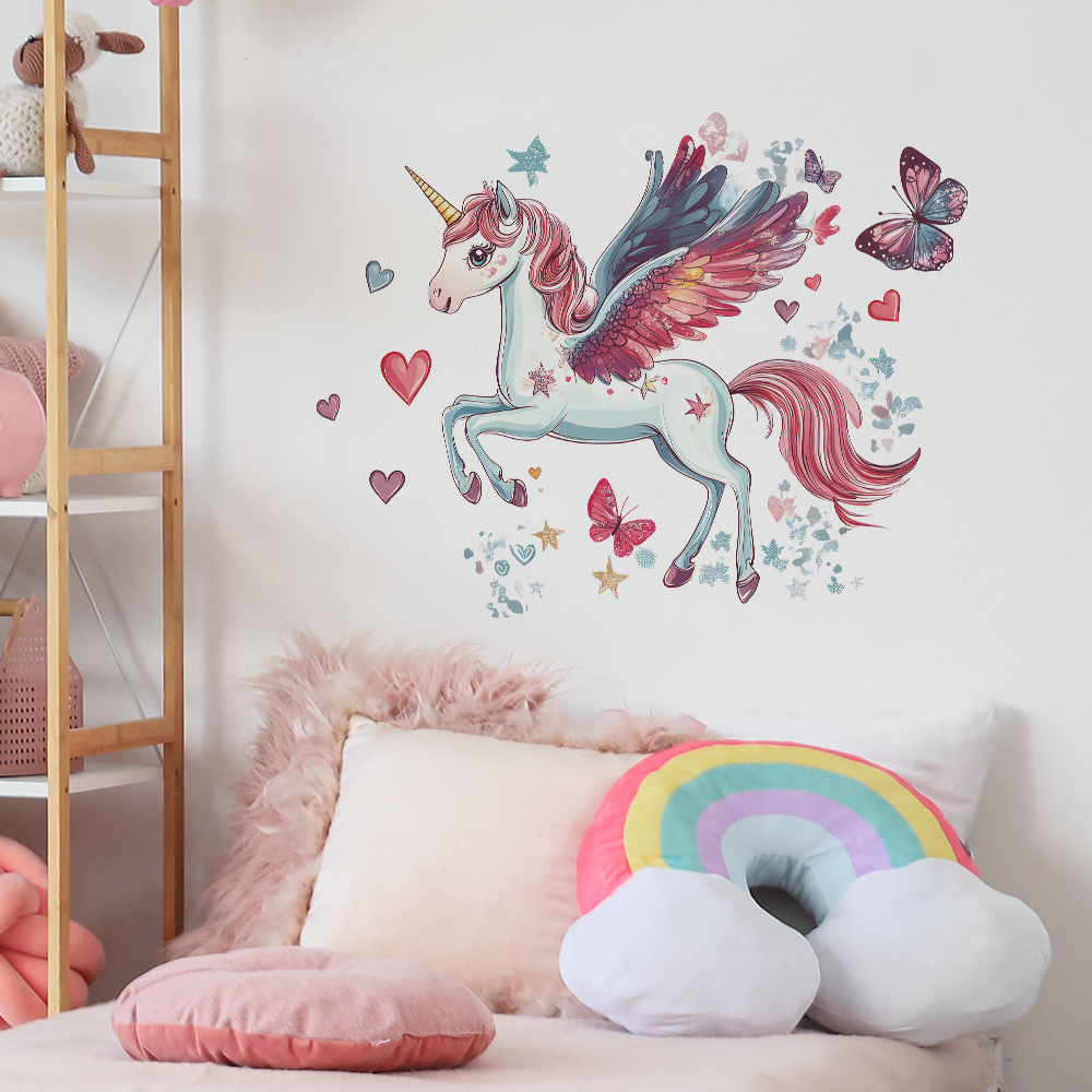 Fun-f586 만화 유니콘 사랑 나비 침실 거실 홈 벽 배경 미화 장식 벽 스티커