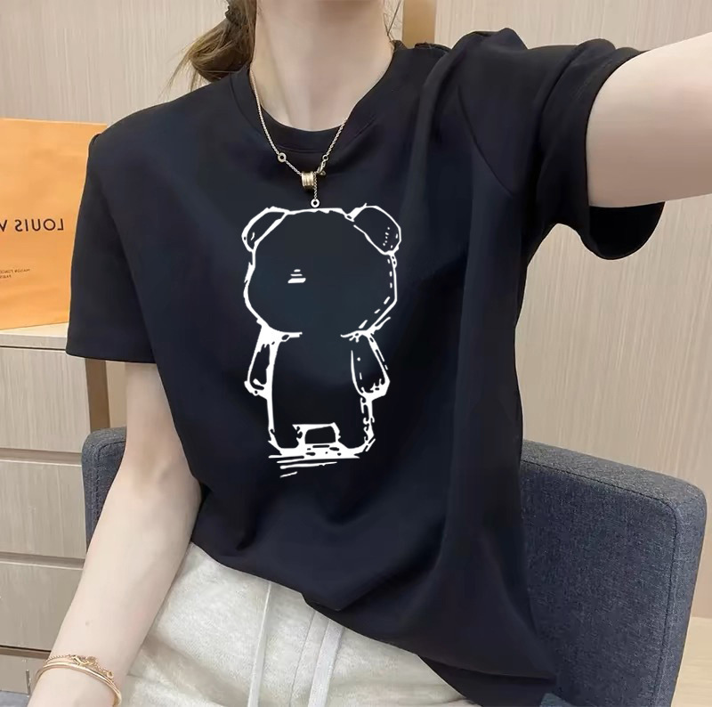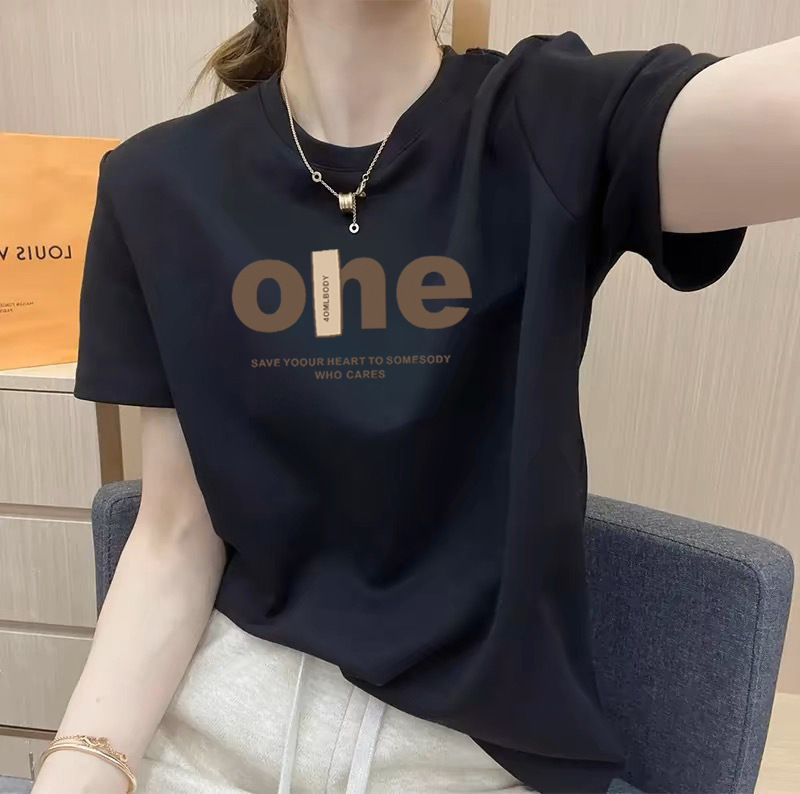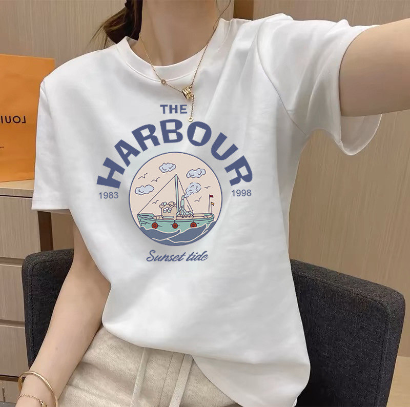 100 면 반소매 여성용 티셔츠 여름 새로운 도착 화이트 프린트 슬림 반팔 유행 유행 편안한 올 매치 탑스토어 가기
