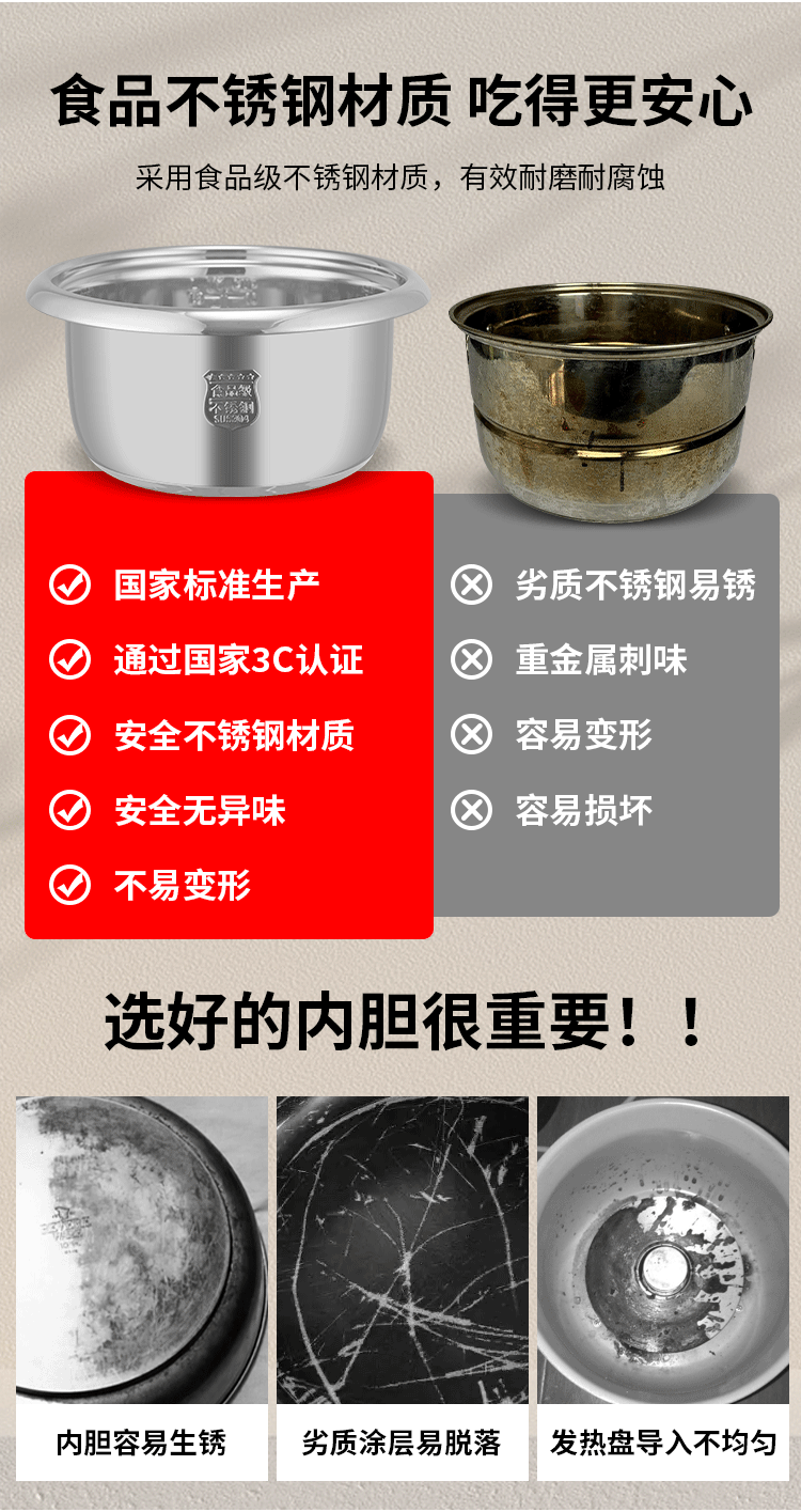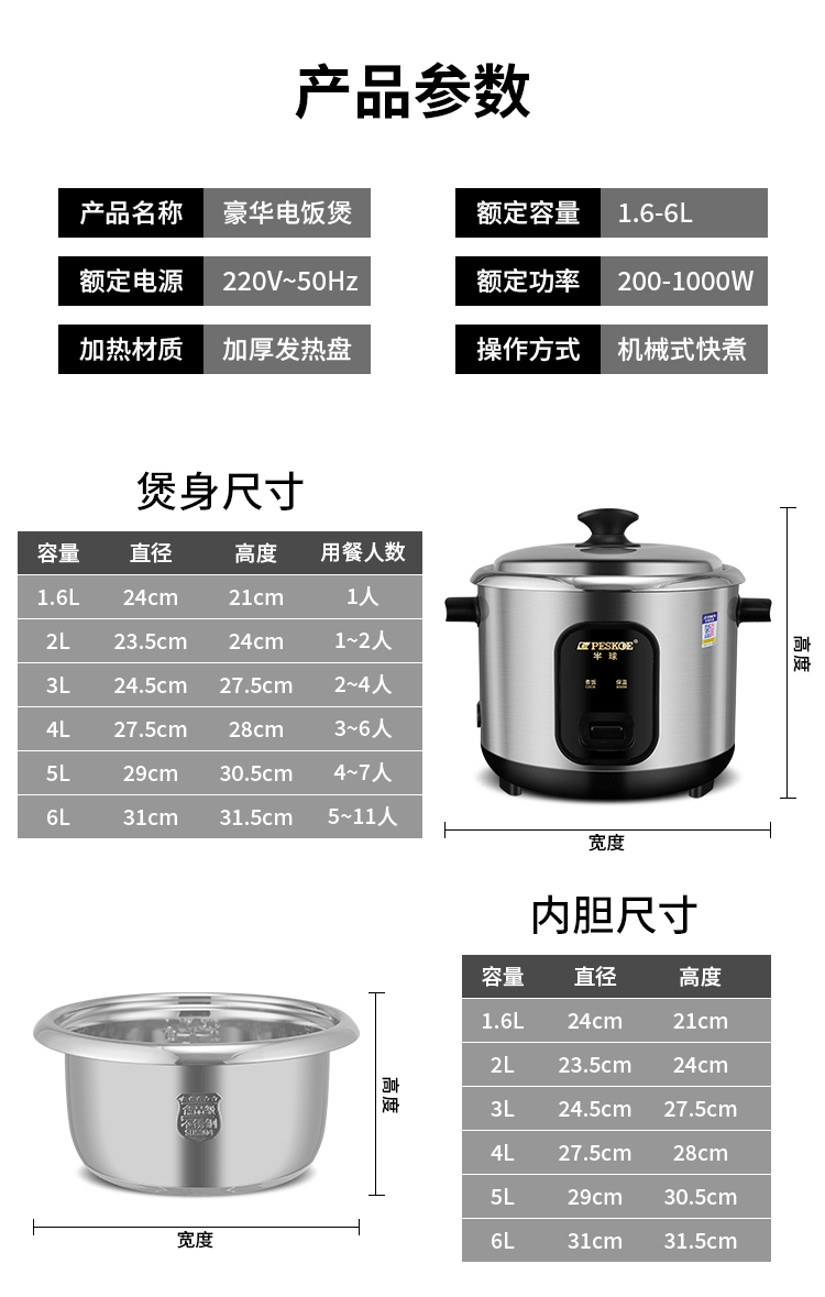 304 스테인레스 스틸 0 코팅 내부 컨테이너 전기 밥솥 증기선 구식 원피스 세대가있는 다기능 전기 밥솥스토어 가기