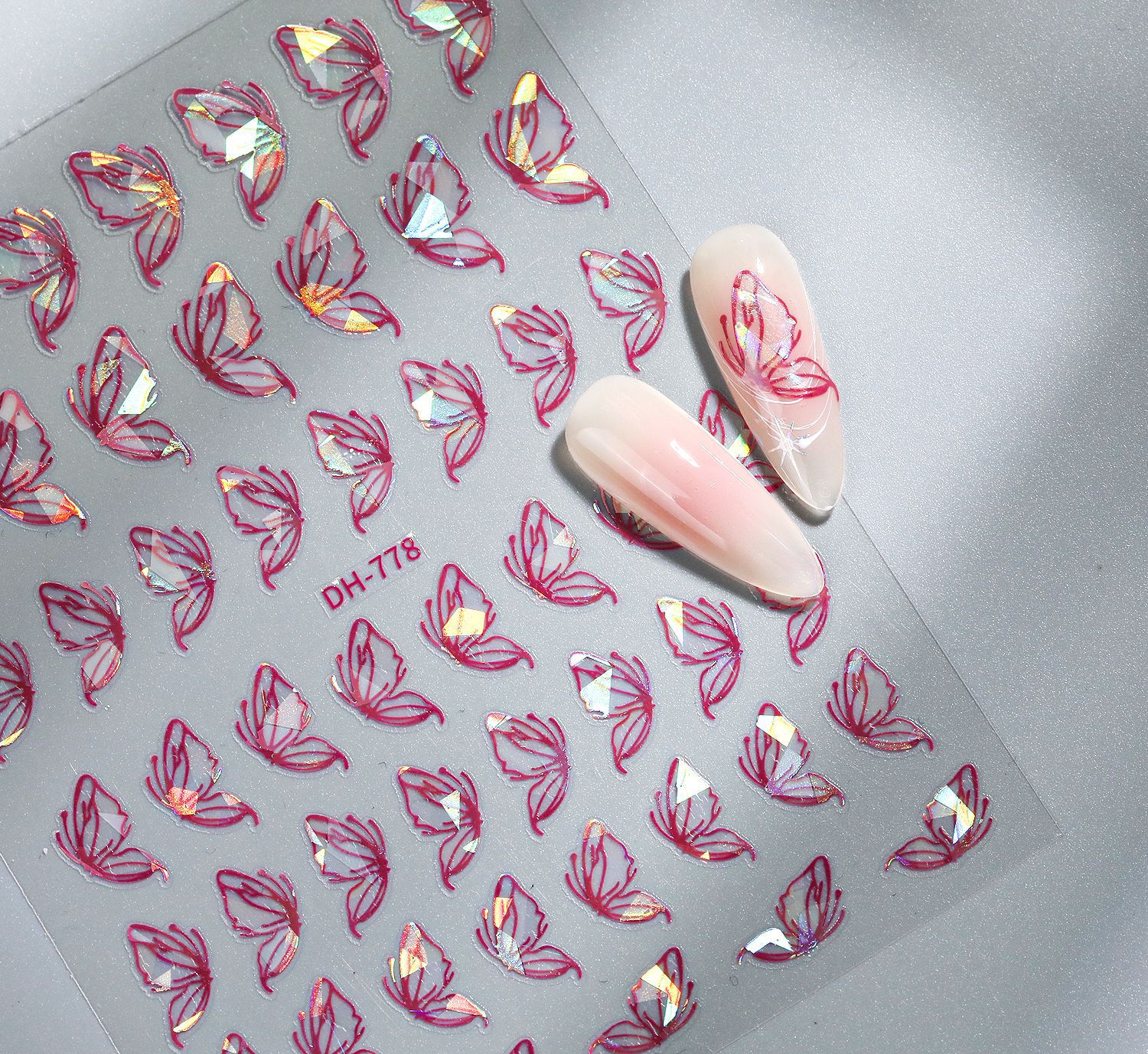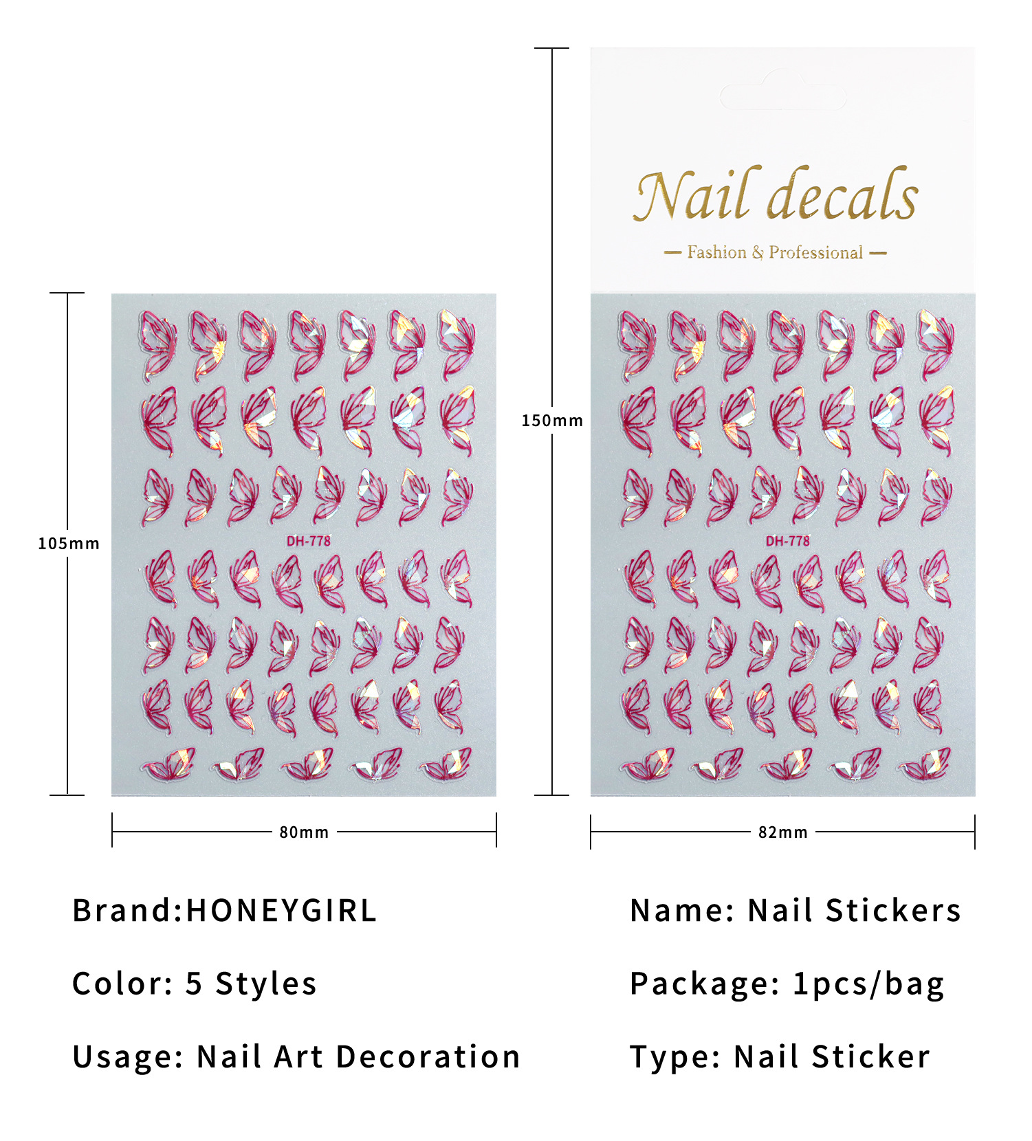 인터넷 연예인 액체 나비 네일 아트 스티커 평면 다목적 절묘한 중공 나비 네일 스티커 쥬얼리 DH778