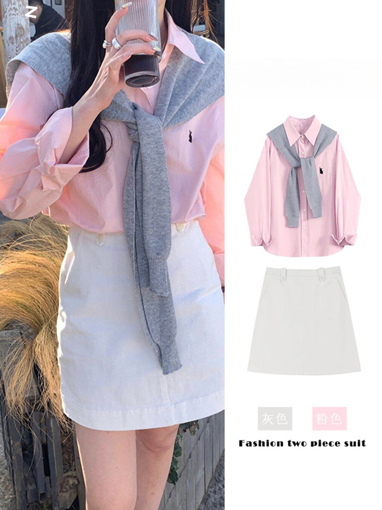 • 셔츠+숄 투피스 슈트 [한국 배형 몸매 의상 세트로 여름옷/올해 여성에게 인기 있는 부드러운 거리 가슴 옷/