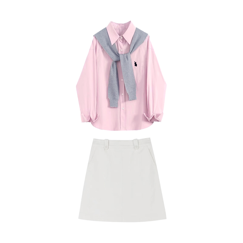 • 셔츠+숄+스커트 쓰리피스 슈트 [배를 가리고 날씬해지며 해변 휴가를 위해 허리를 조여주고 달콤하고 매콤한 스커트/작은 사람에게 적합한 연예인 스타일 컬러풀한 예술 학생 드레스