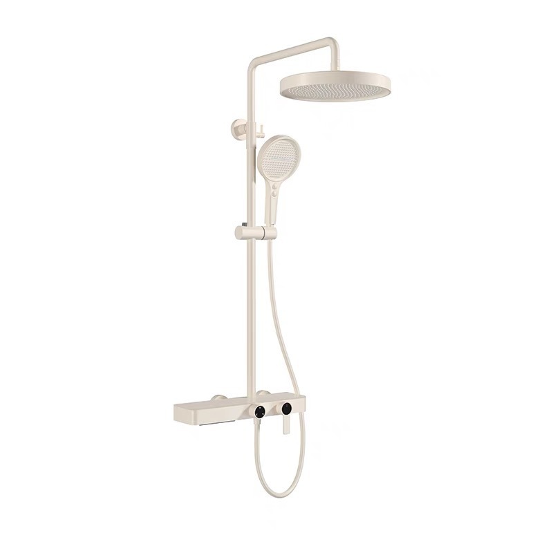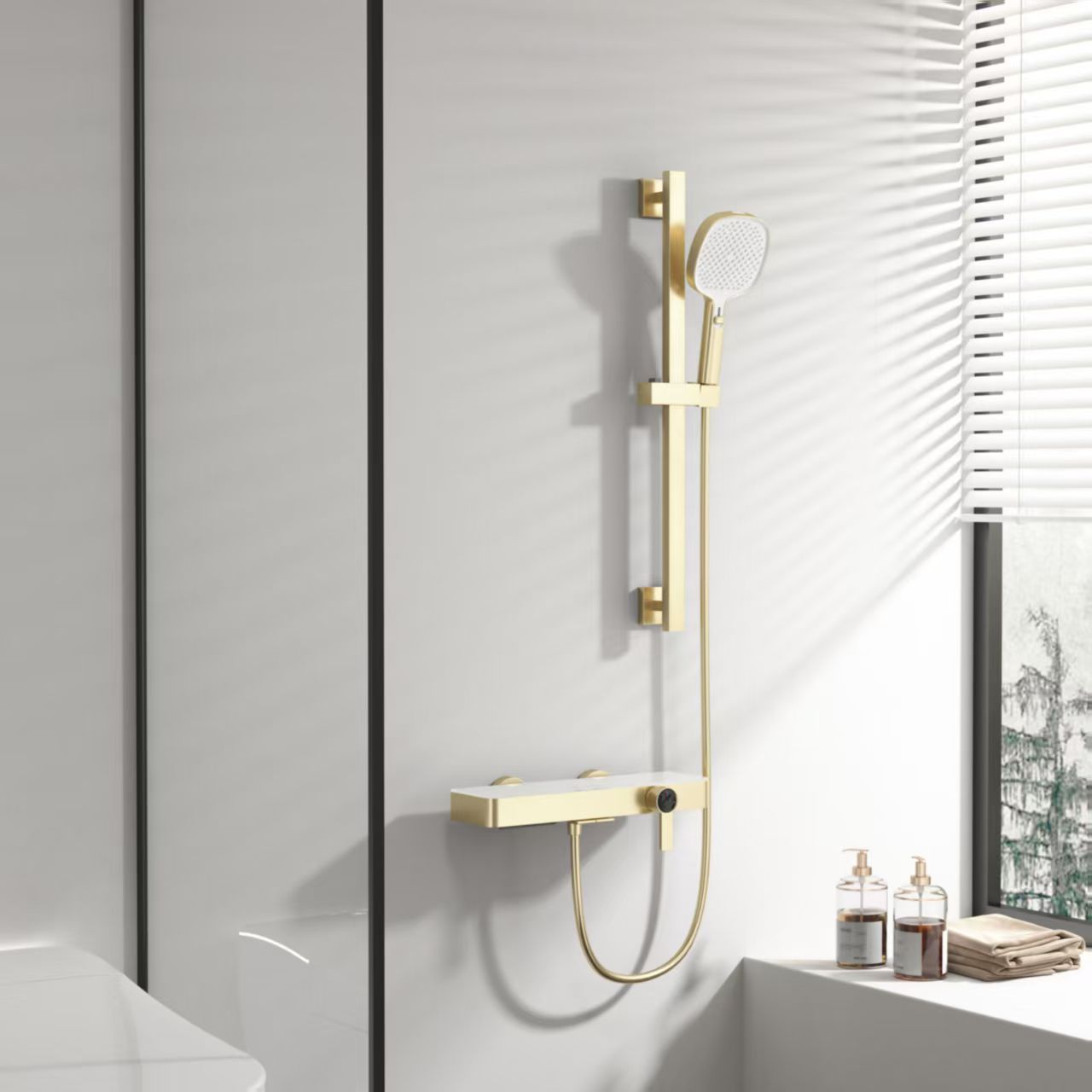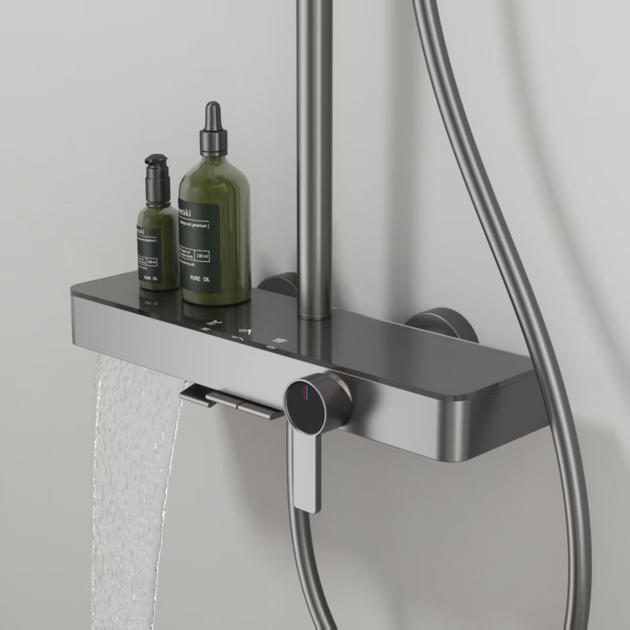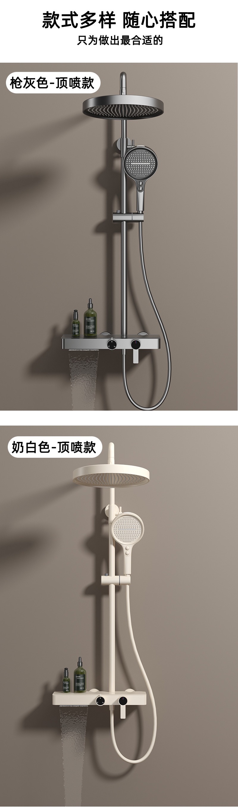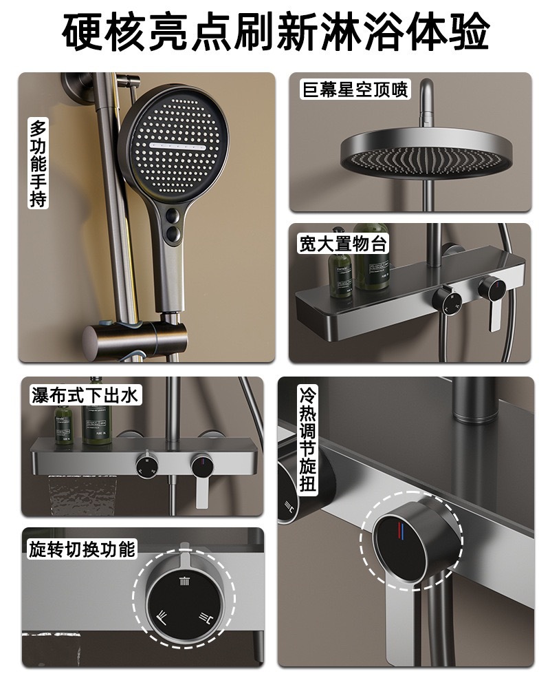 건 그레이 모던 올인원 스토리지 랙 샤워 세트 크림 따뜻한 것과 차가운 간단한 브러시드 골드 다기능