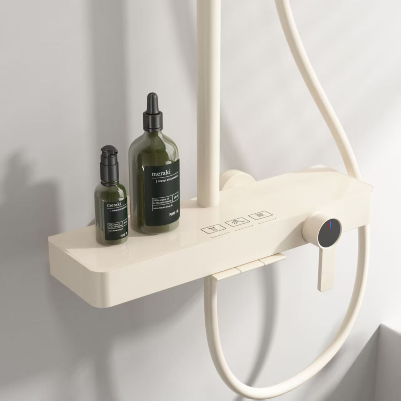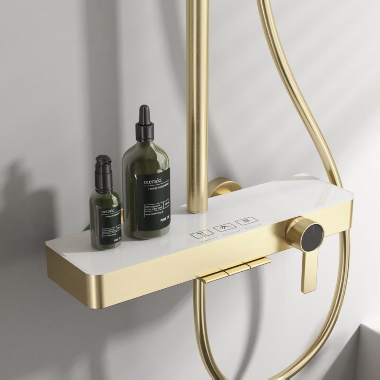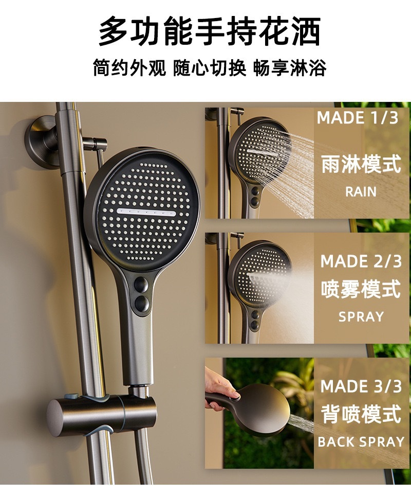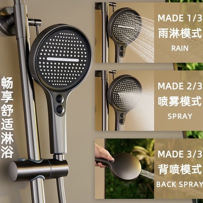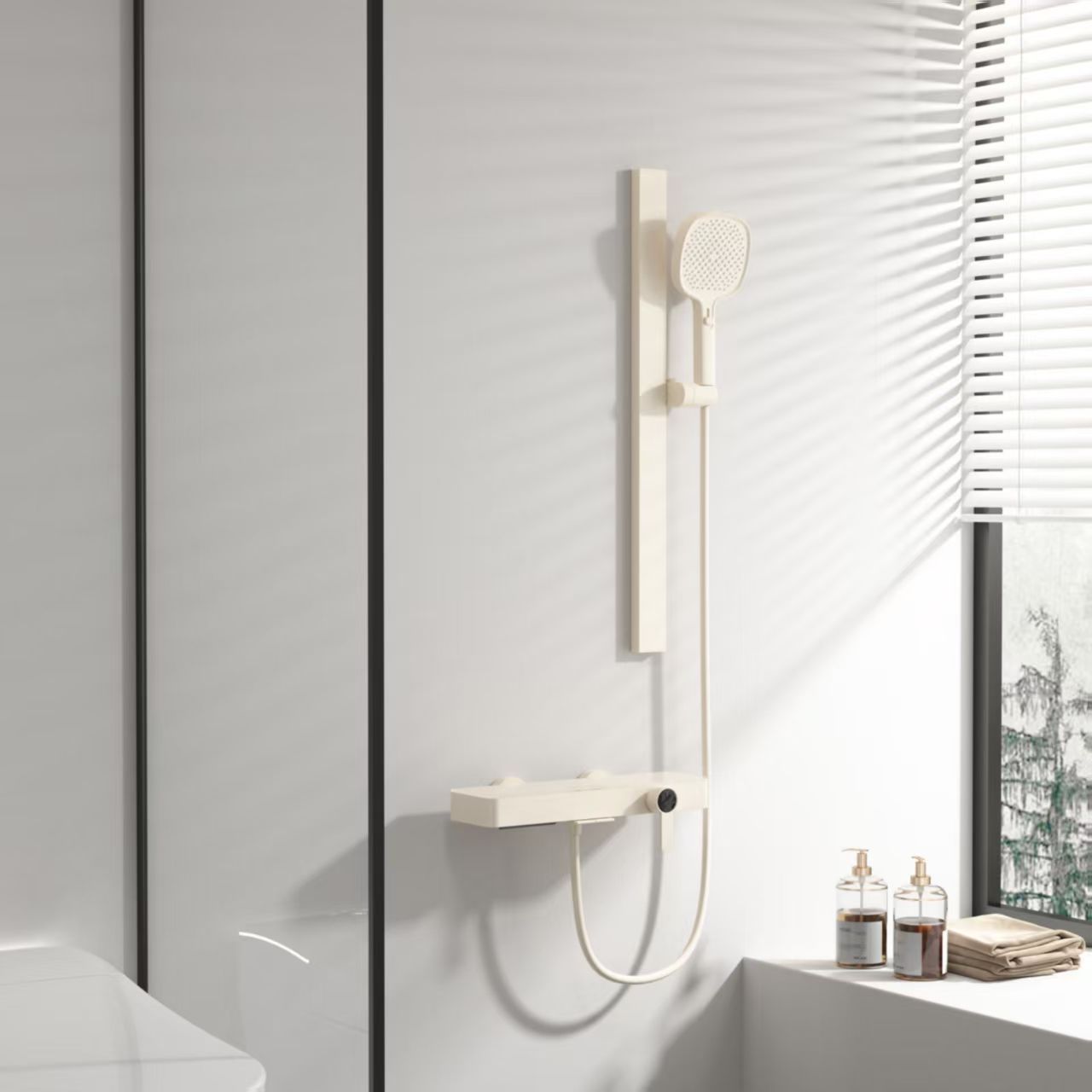 건 그레이 모던 올인원 스토리지 랙 샤워 세트 크림 따뜻한 것과 차가운 간단한 브러시드 골드 다기능