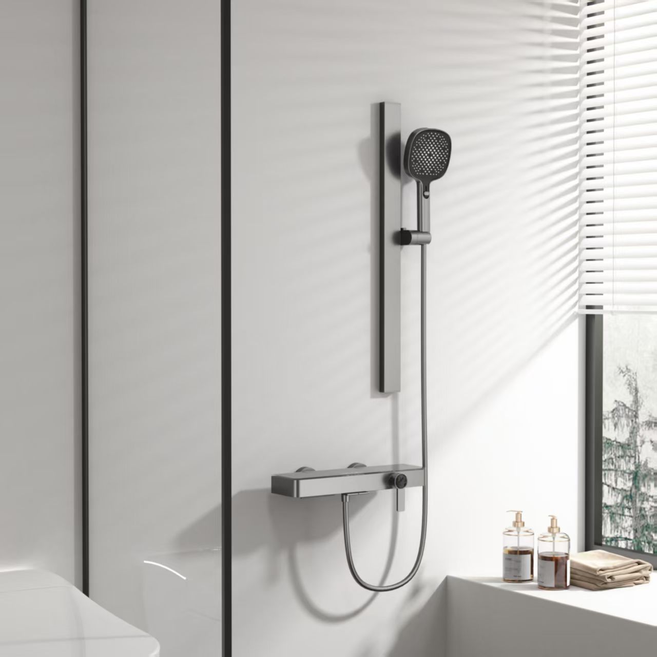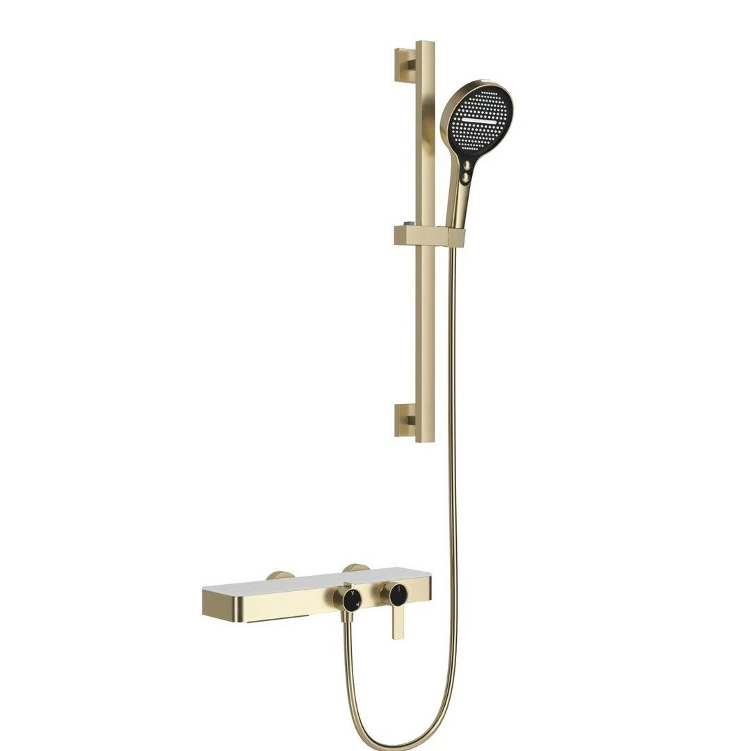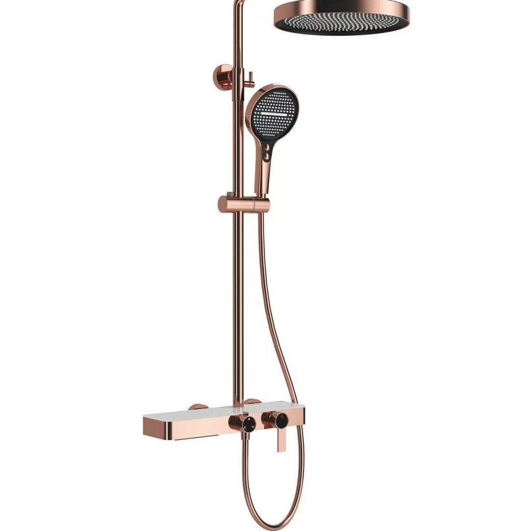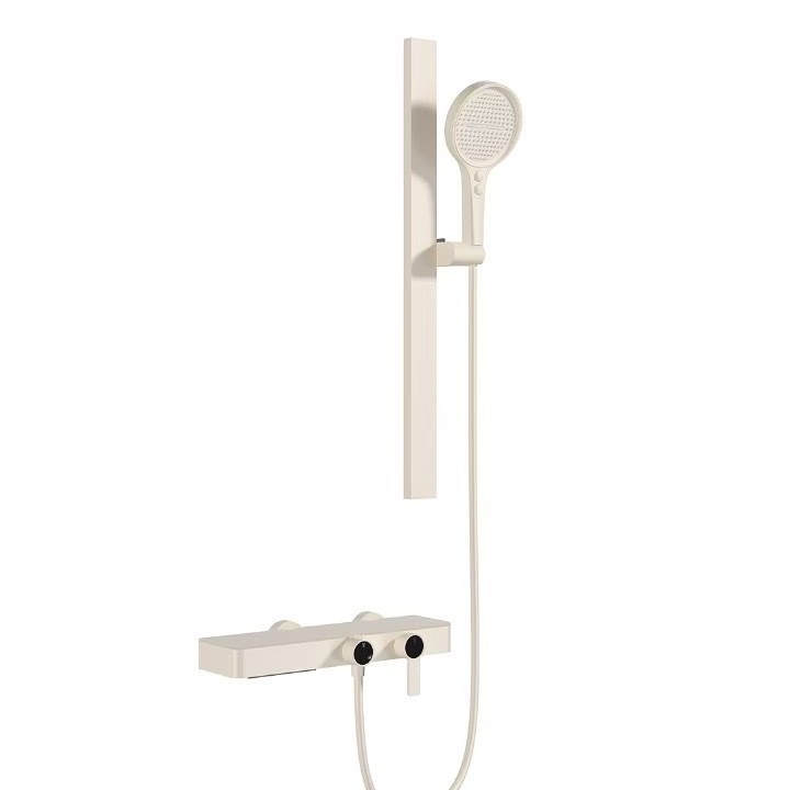 건 그레이 모던 올인원 스토리지 랙 샤워 세트 크림 따뜻한 것과 차가운 간단한 브러시드 골드 다기능