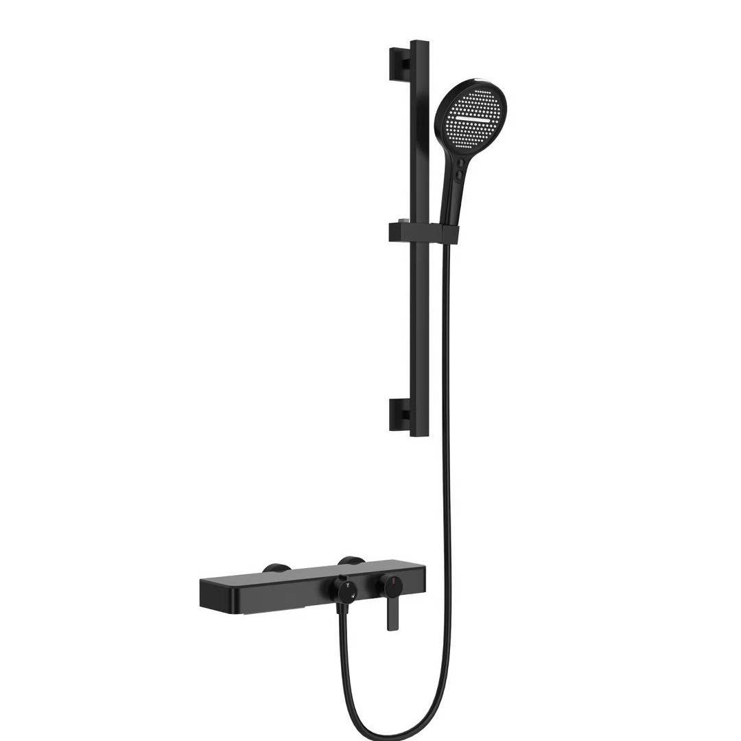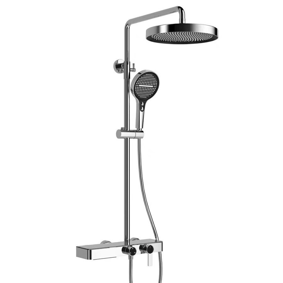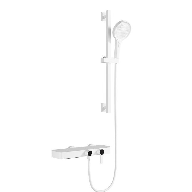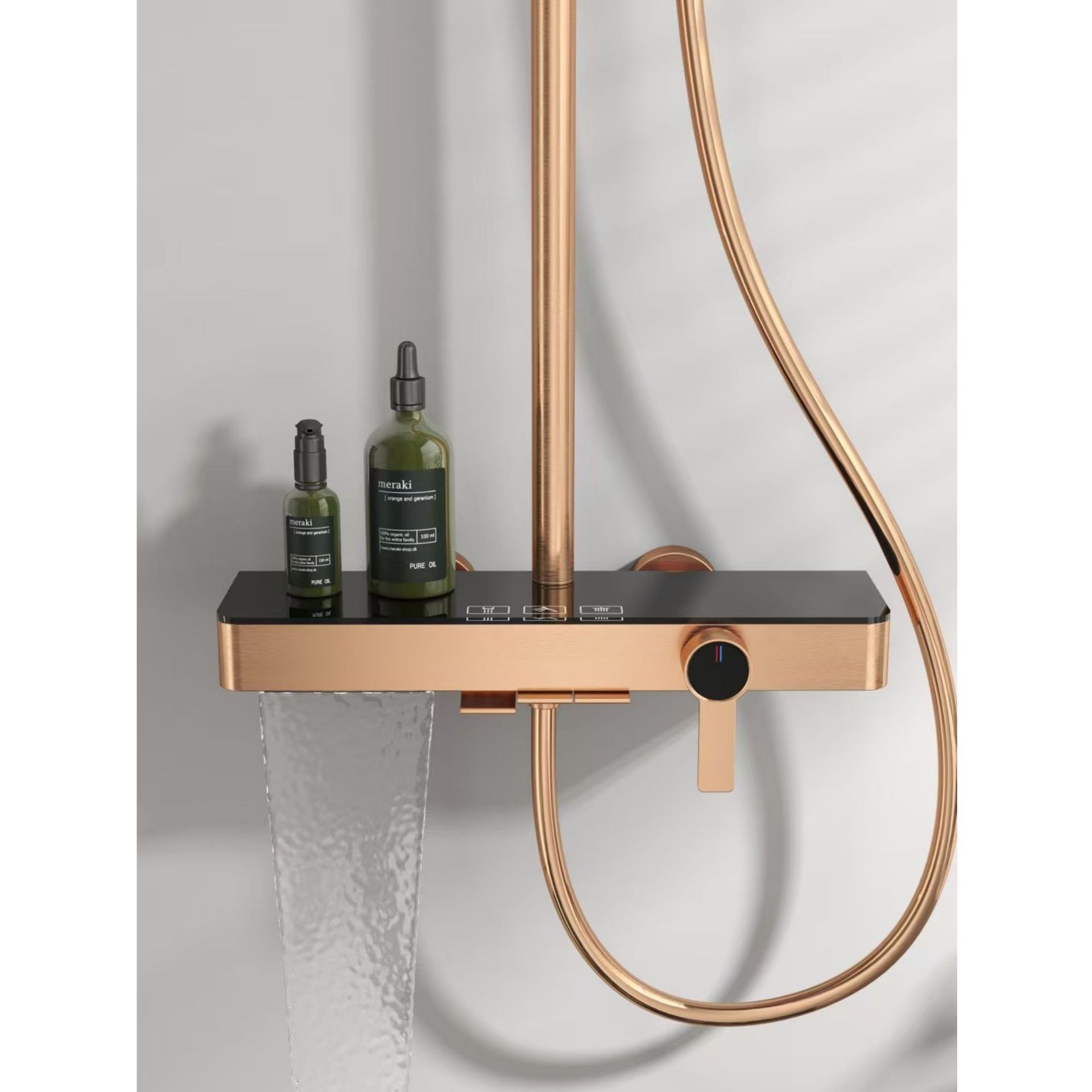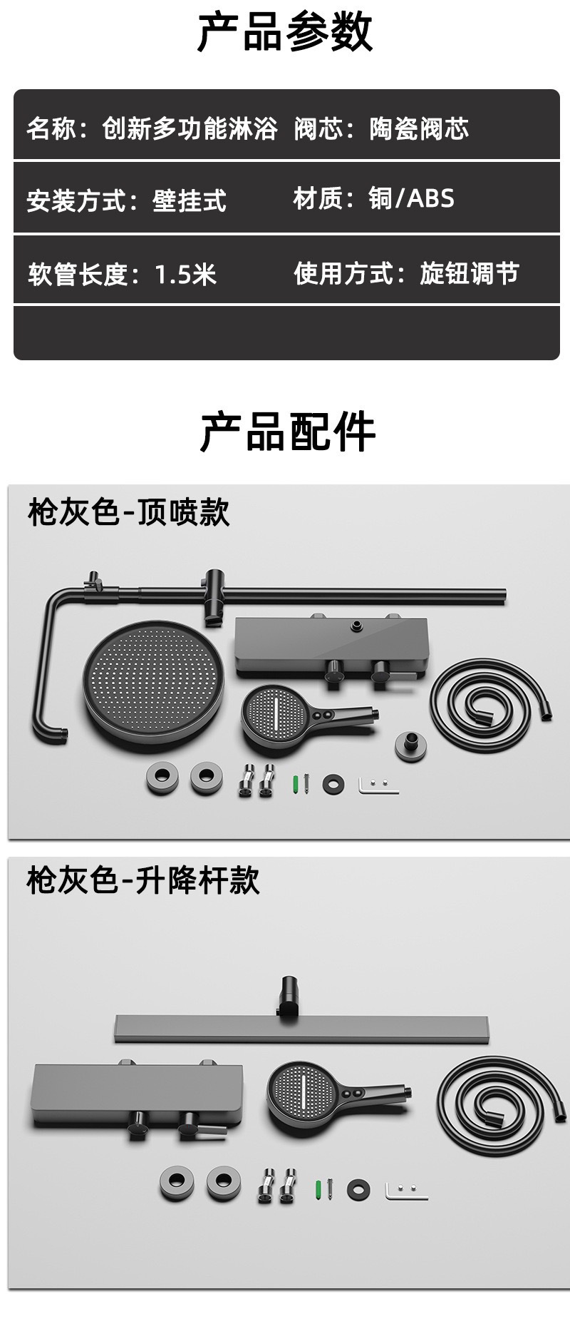 건 그레이 모던 올인원 스토리지 랙 샤워 세트 크림 따뜻한 것과 차가운 간단한 브러시드 골드 다기능