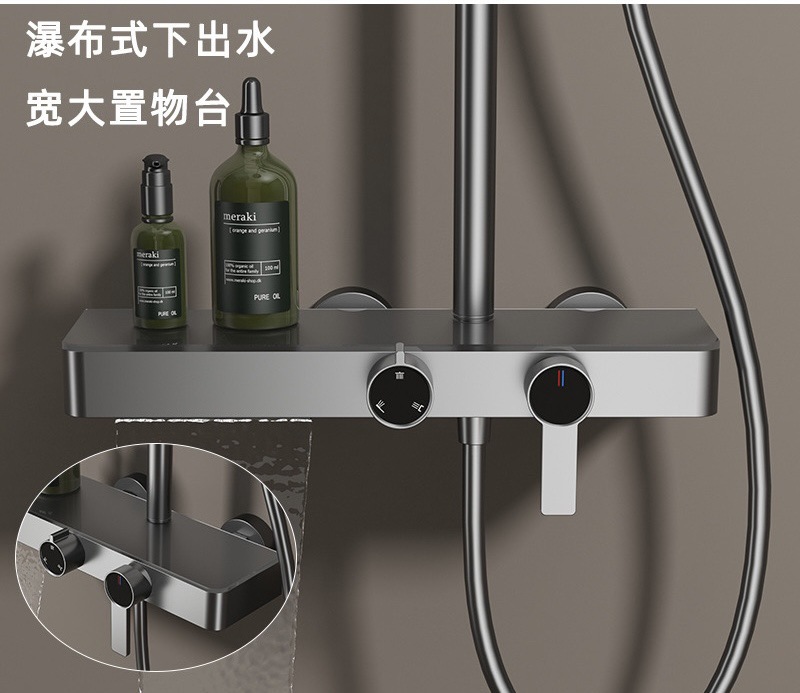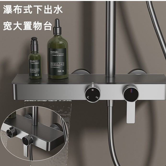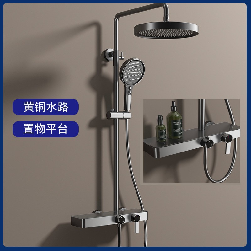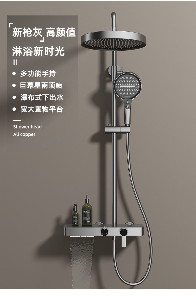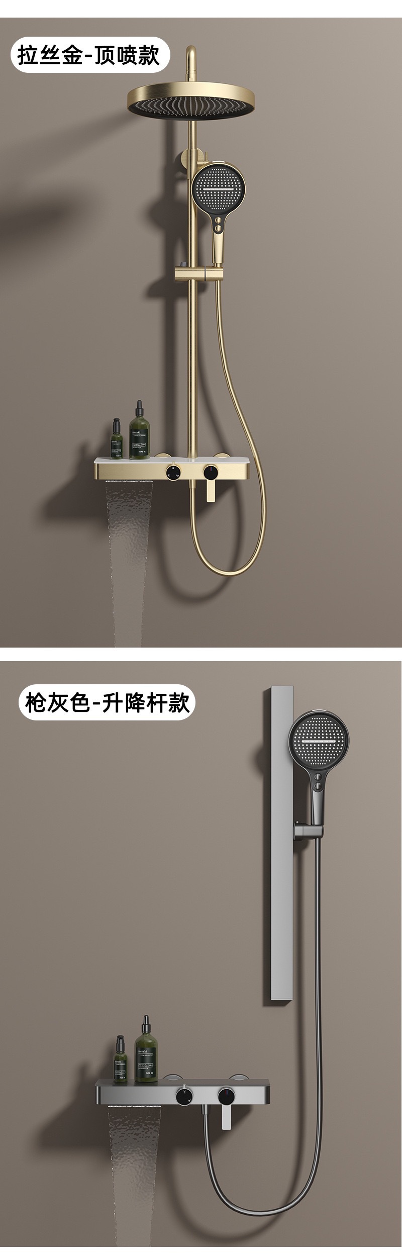 건 그레이 모던 올인원 스토리지 랙 샤워 세트 크림 따뜻한 것과 차가운 간단한 브러시드 골드 다기능스토어 가기