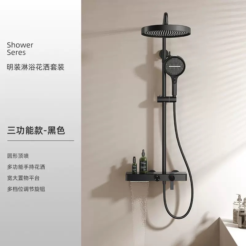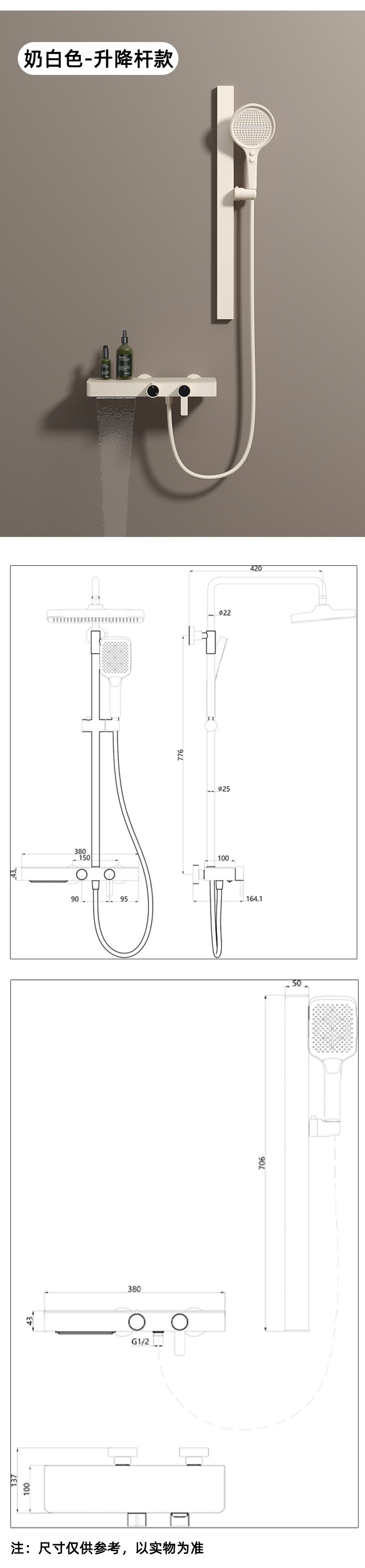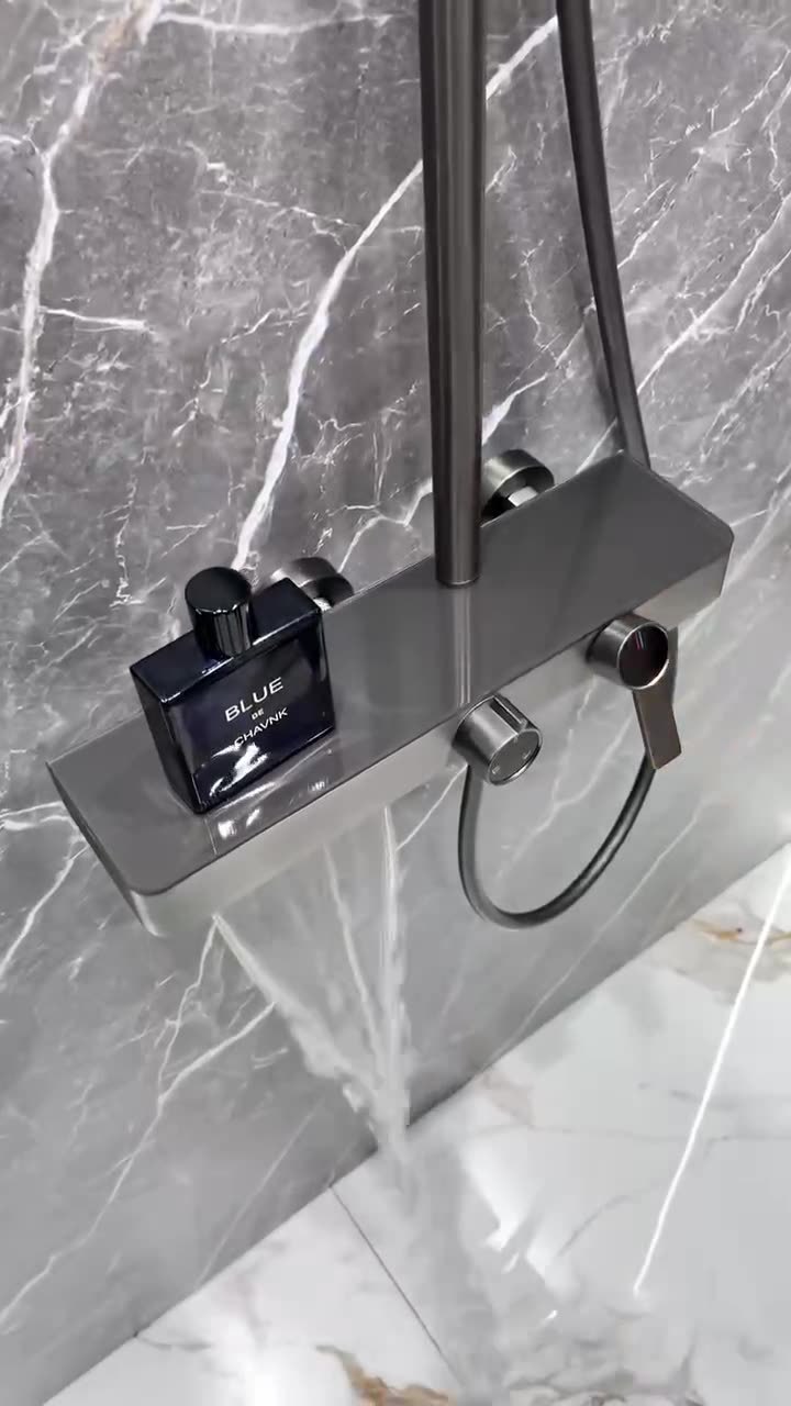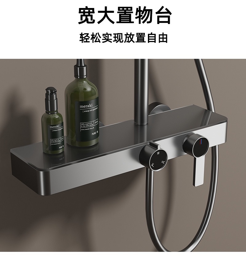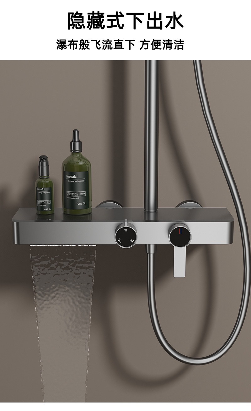 건 그레이 모던 올인원 스토리지 랙 샤워 세트 크림 따뜻한 것과 차가운 간단한 브러시드 골드 다기능스토어 가기